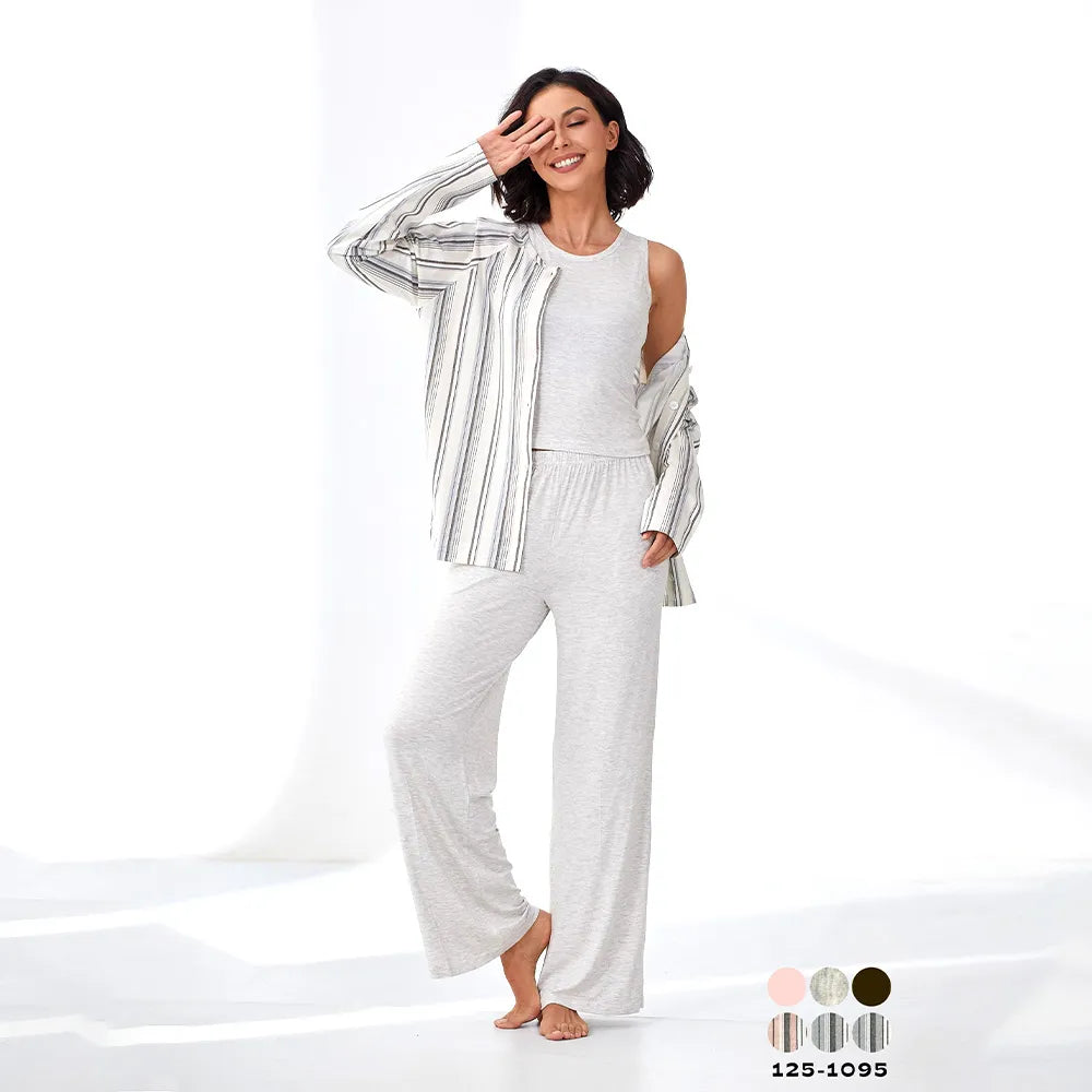 انغمسي في تجربة نوم هانئة وعميقة بالحصول على الطقم الرائع هذا. مصنوع بخامة عالية الجودة يوفّر مستويات قصوى من الراحة طوال الليل، ويتميز بتصميم أنيق يجمع بين الموضة والعملية، ويُعد إضافة ضرورية إلى خزانتك الأساسية تعكس اختياراتك الراقية والفريدة