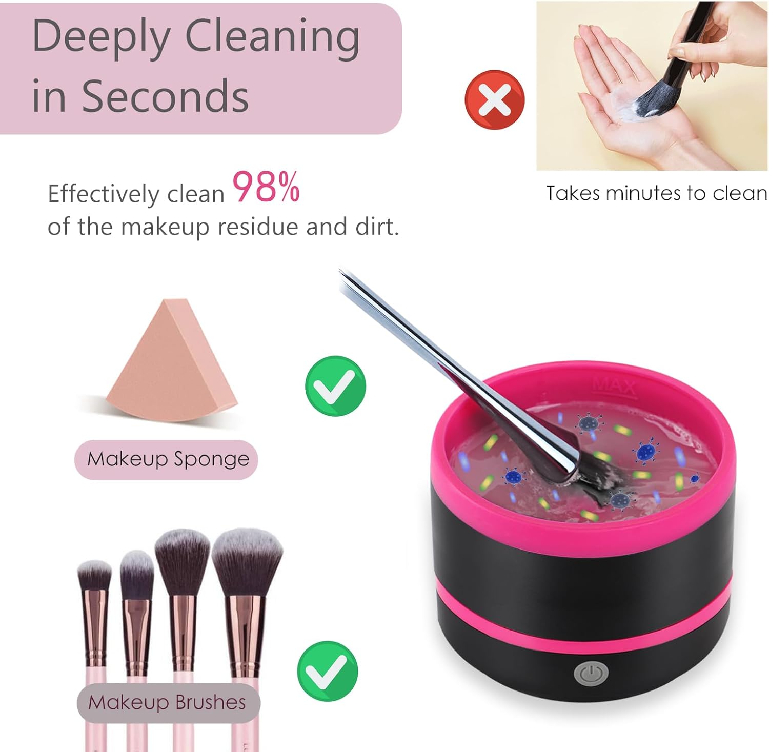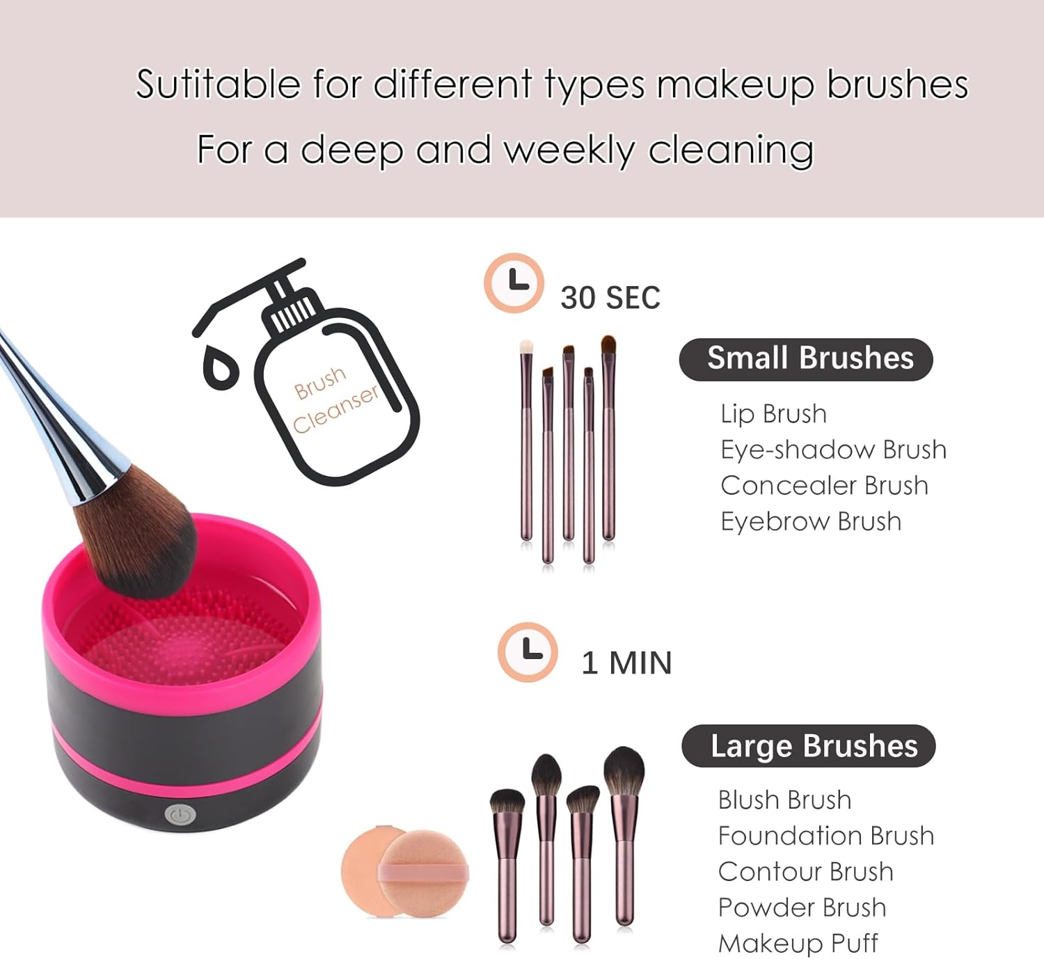 آلة تنظيف فرش المكياج الكهربائية DaizySight، أداة غسل فرش المكياج سريعة التنظيف، دوران سريع وتنظيف في ثوانٍ - أسود ووردي
