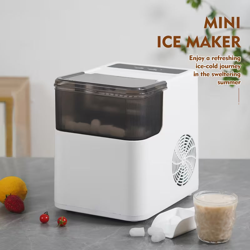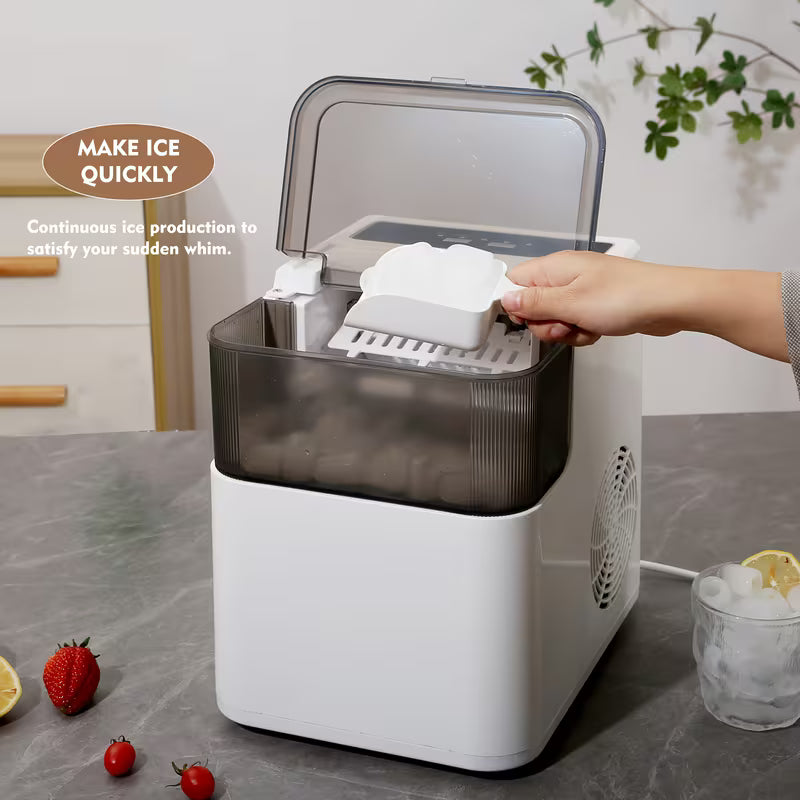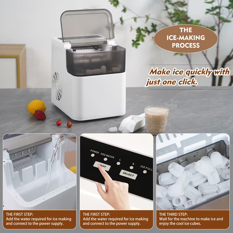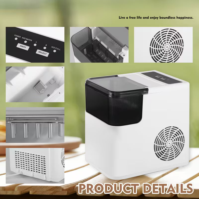 آلة صنع ثلج محمولة للاستخدام المنزلي والمكتبي والاستخدام الخارجي - آلة صنع ثلج توضع على سطح الطاولة مع خزان مياه سعة 1.4 لتر | تُحضّر 9 مكعبات ثلج صغيرة في 6 دقائق 11.34 كجم، | خياران لحجم الثلج | تنظيف ذاتي تلقائي | كومباكت
