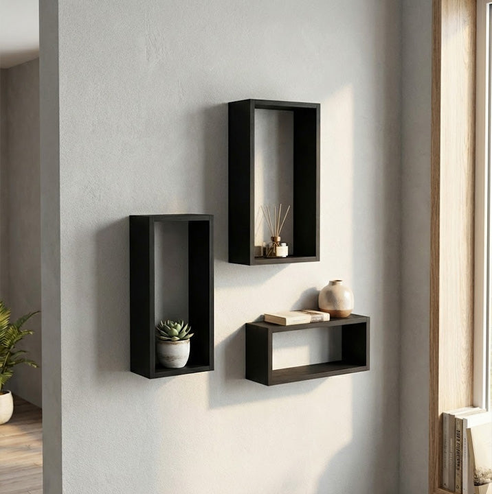 أضف لمسة عصرية إلى مساحتك مع مجموعة رفوف الصناديق العائمة الحديثة، المصممة لتجمع بين الأناقة والعملية. تتضمن المجموعة ثلاثة رفوف مستطيلة مفتوحة الإطار بأحجام مختلفة، مثالية لعرض ديكورات جدارية مميزة.