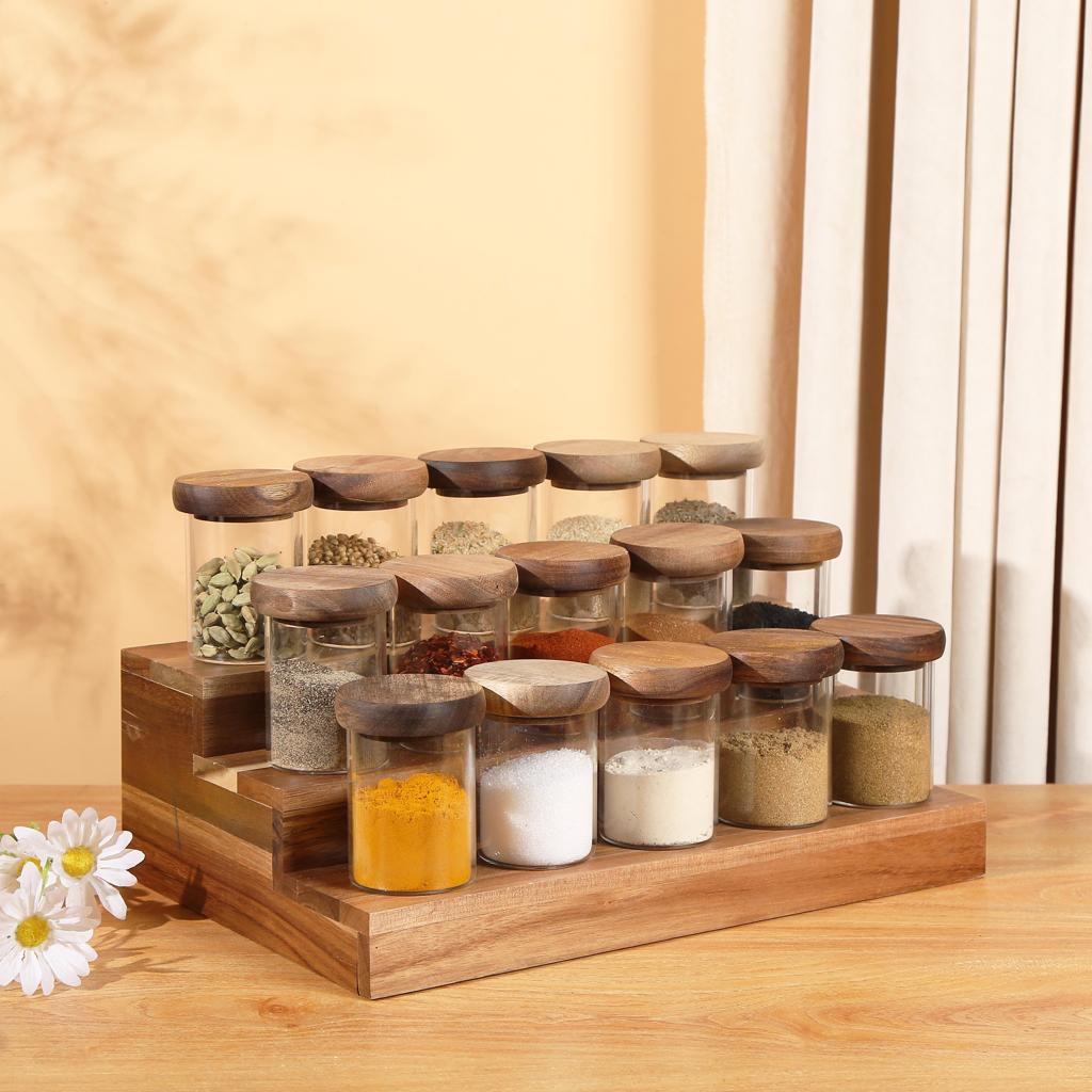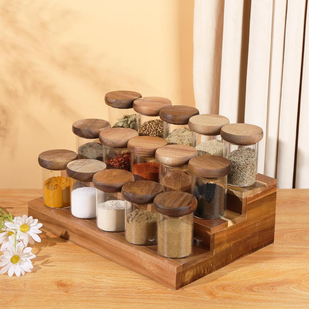 ستاند بهارات خشبي مدرج 3 ادوار لتنظيم البهارات والتوابل