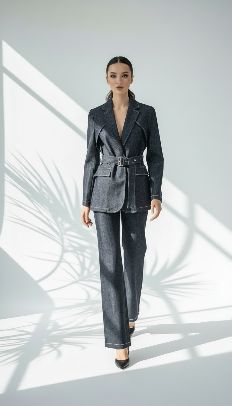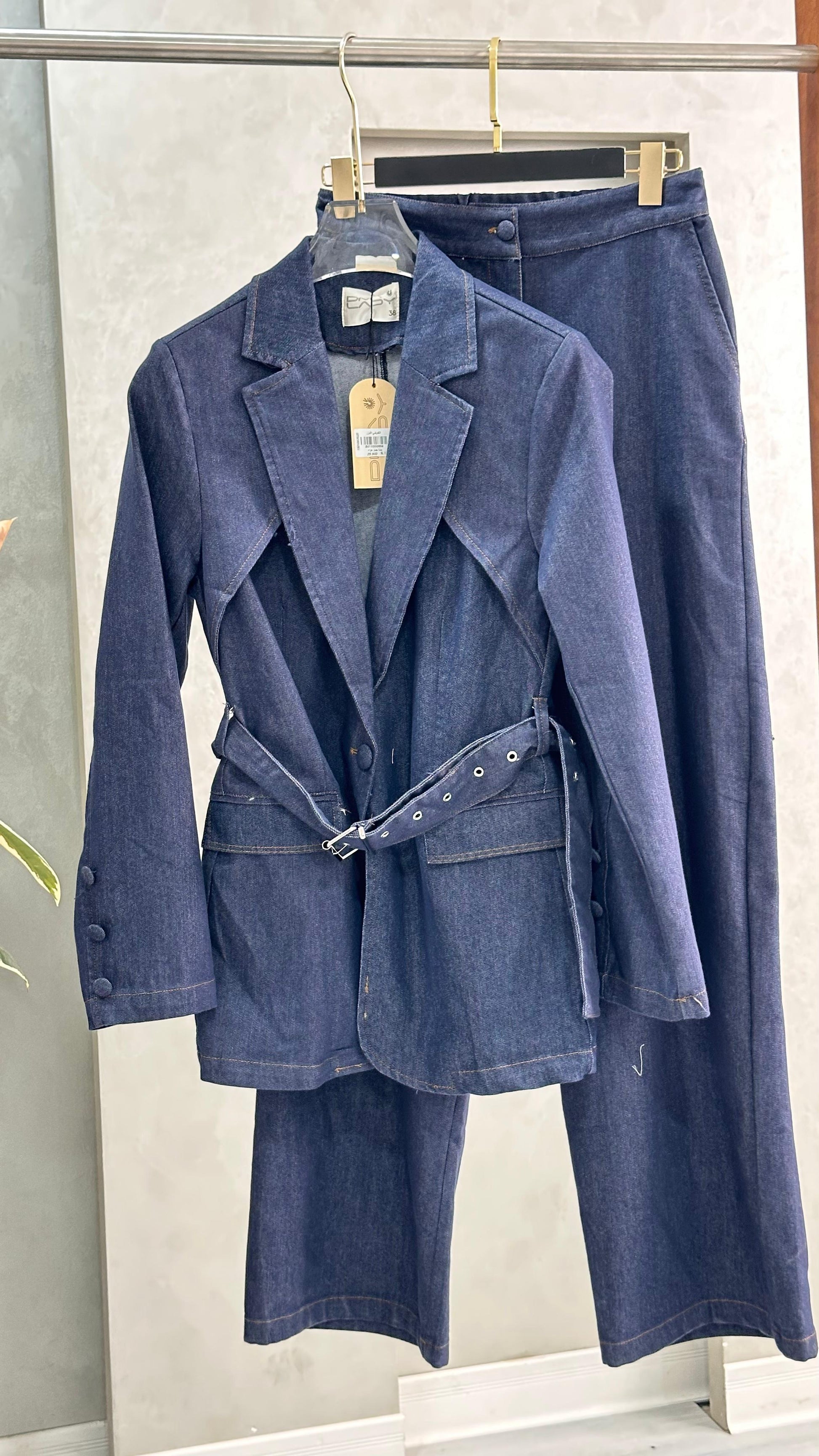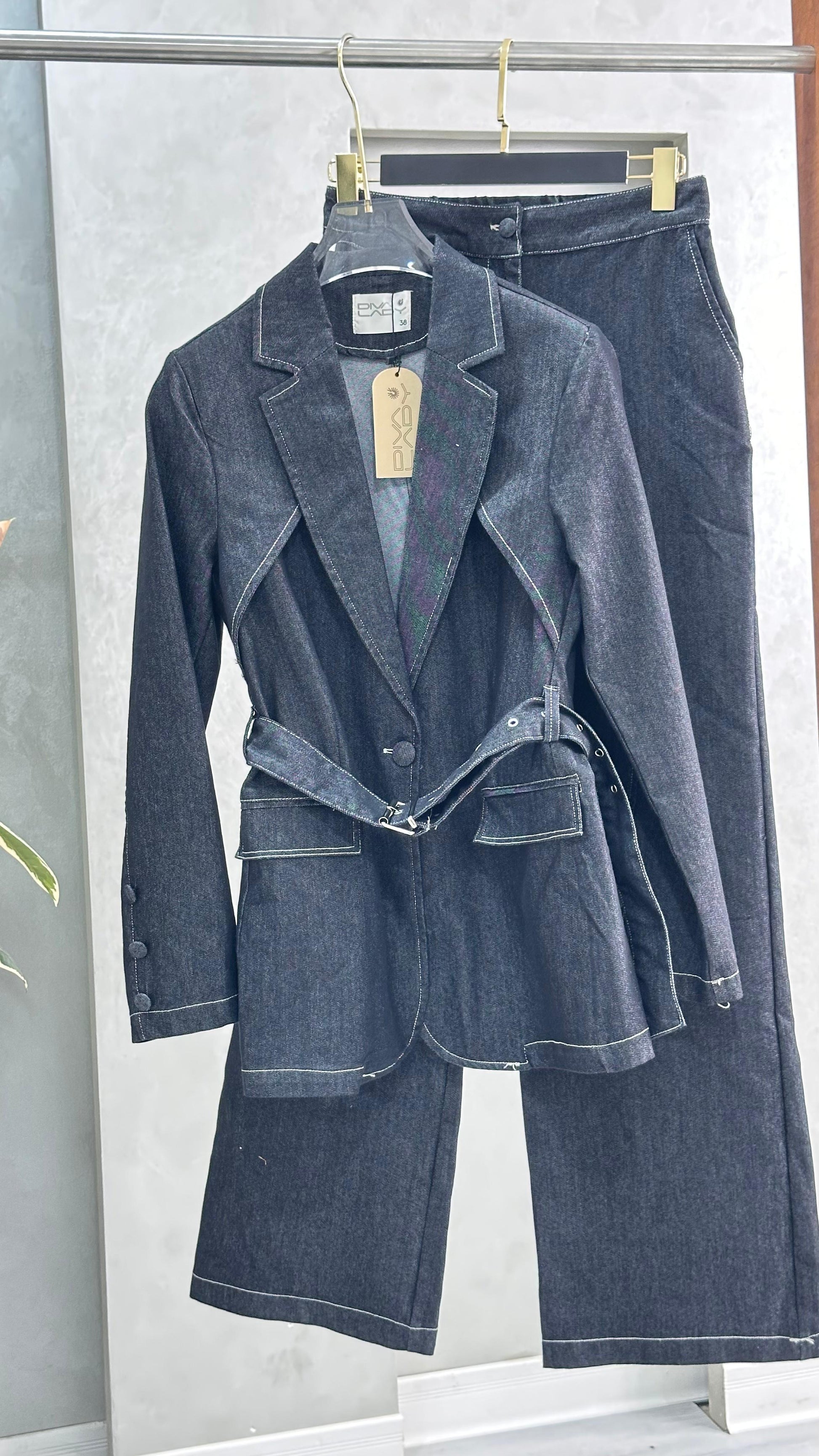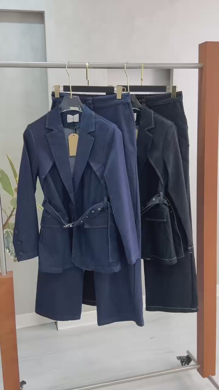 طقم أنيق من قطعتين، مصنوع من قماش عالي الجودة، يجمع بين الأناقة والحداثة. يتميز الجزء العلوي بقصّة متناسقة مع حزام خصر لملاءمة مثالية، بينما يوفر البنطال المتناسق راحةً طوال اليوم ولمسة نهائية أنيقة. مثالي للارتداء في العمل والنزهات الكاجوال الأنيقة، حيث يجمع بين الثقة والأناقة الخالدة.