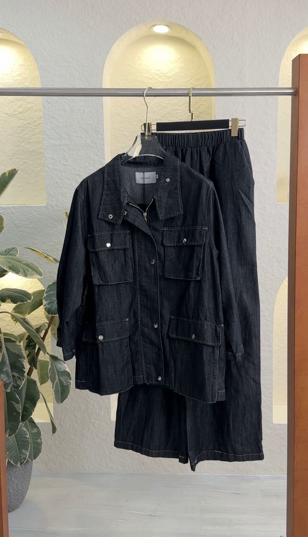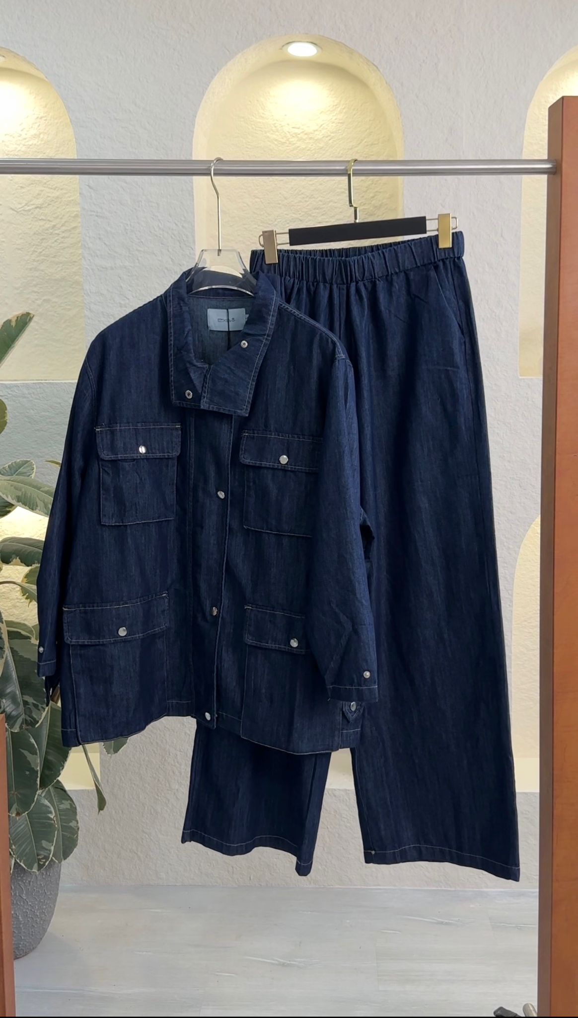 طقم أنيق من قطعتين يجمع بين الأناقة المريحة والعملية اليومية. يتميز الجزء العلوي بتصميم منظم مع جيوب أمامية بغطاء، وتفاصيل أزرار كبس، وتصميم عملي أنيق. يتميز البنطال المطابق بحزام خصر مطاطي مريح وقصة ساق مستقيمة انسيابية، مما يضمن الراحة والأناقة. مثالي لإطلالات أنيقة وبسيطة تنتقل بسلاسة من النهار إلى الليل.