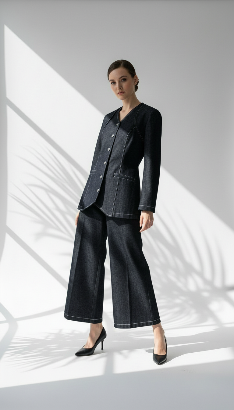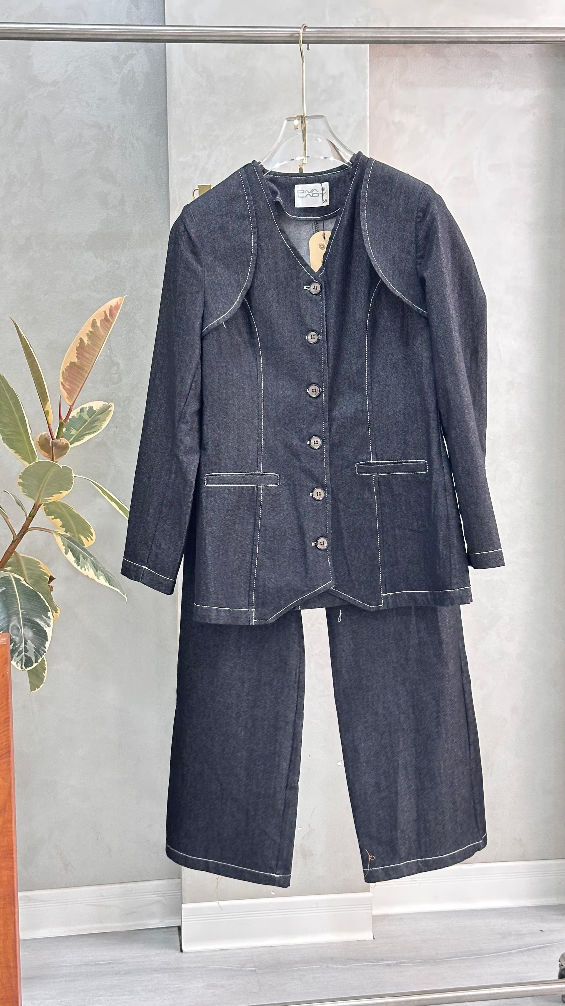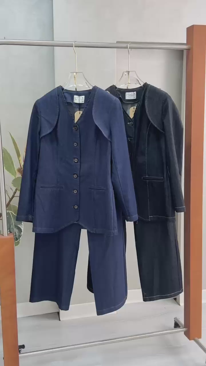 طقم أنيق من قطعتين مصنوع من قماش عالي الجودة لمقاس مريح ومناسب. يتميز الجزء العلوي بأزرار أمامية وتصميم أنيق يُبرز قوامكِ، بينما يُضفي البنطال الواسع المتناسق لمسةً من الراحة والأناقة. مثالي للمناسبات الرسمية وغير الرسمية، حيث يُقدم إطلالة راقية تجمع بين الأناقة العصرية والسحر الخالد.