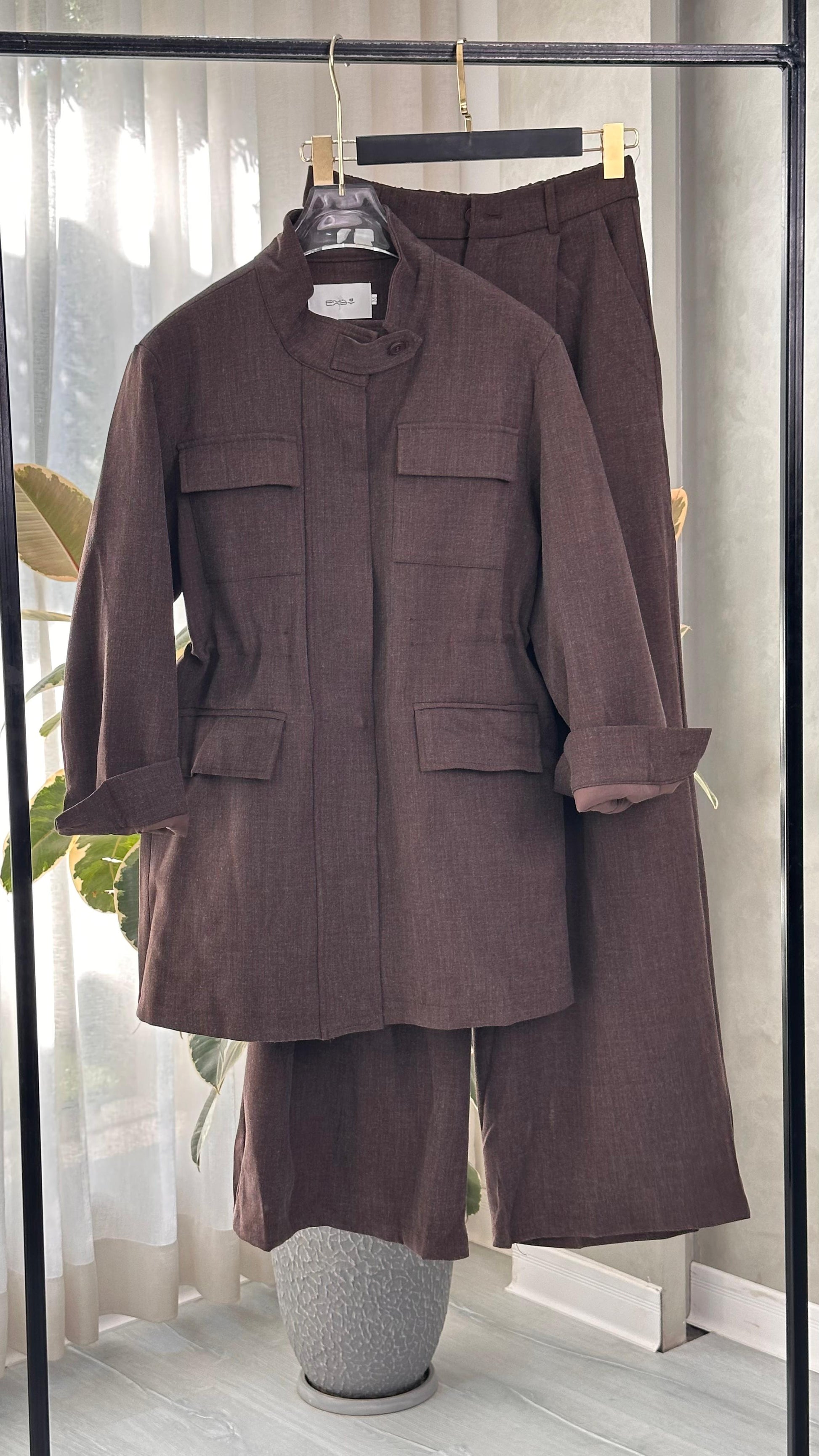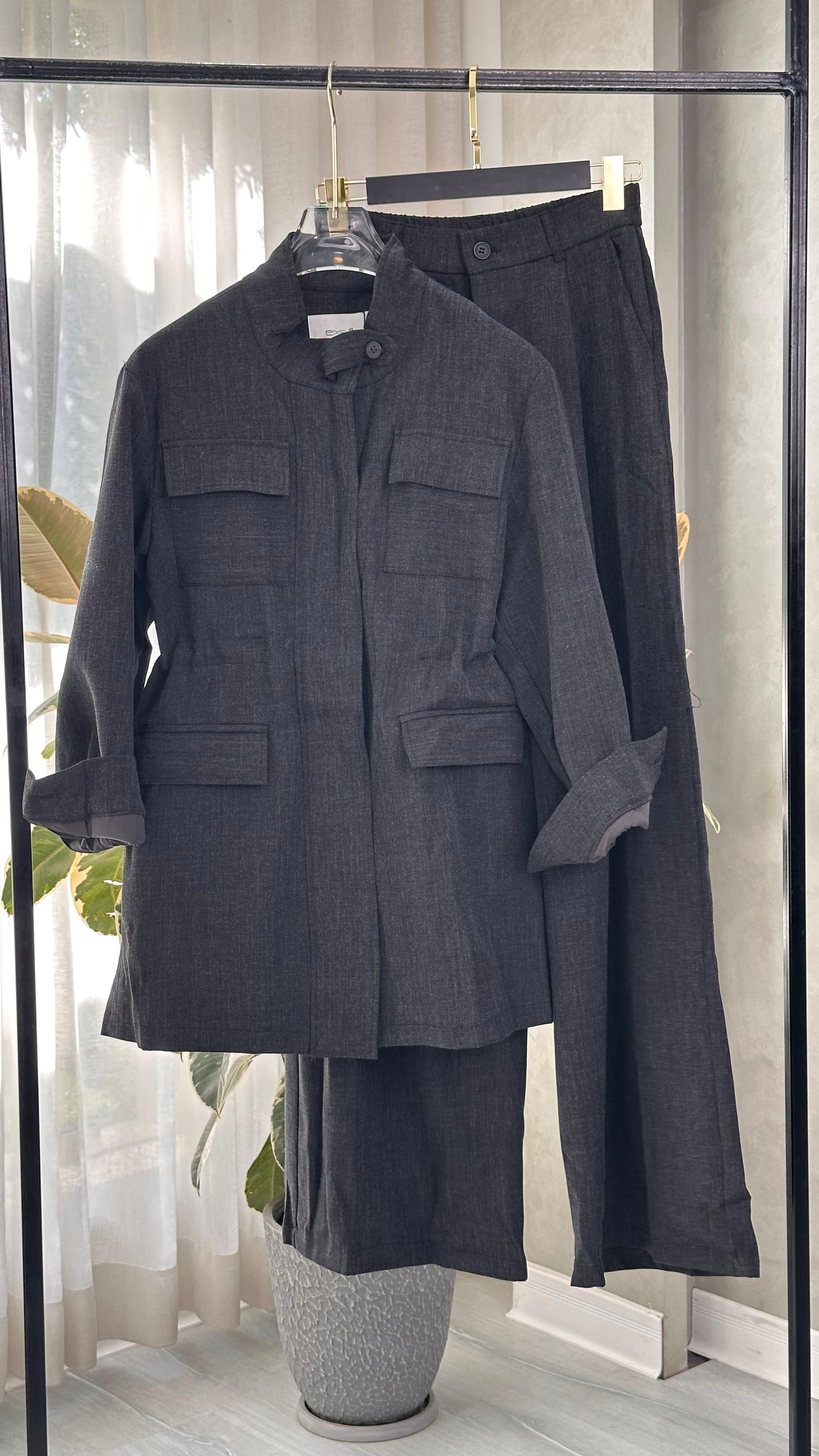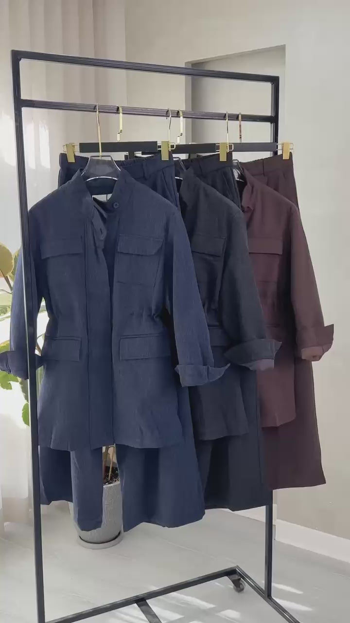 طقم متكامل وعصري يمنحك إطلالة متناسقة، راقية ومريحة. هذه القطعة هي الخيار الأمثل لمن تبحث عن الأناقة الخالدة مع المحافظة على الراحة والقصة الواسعة.