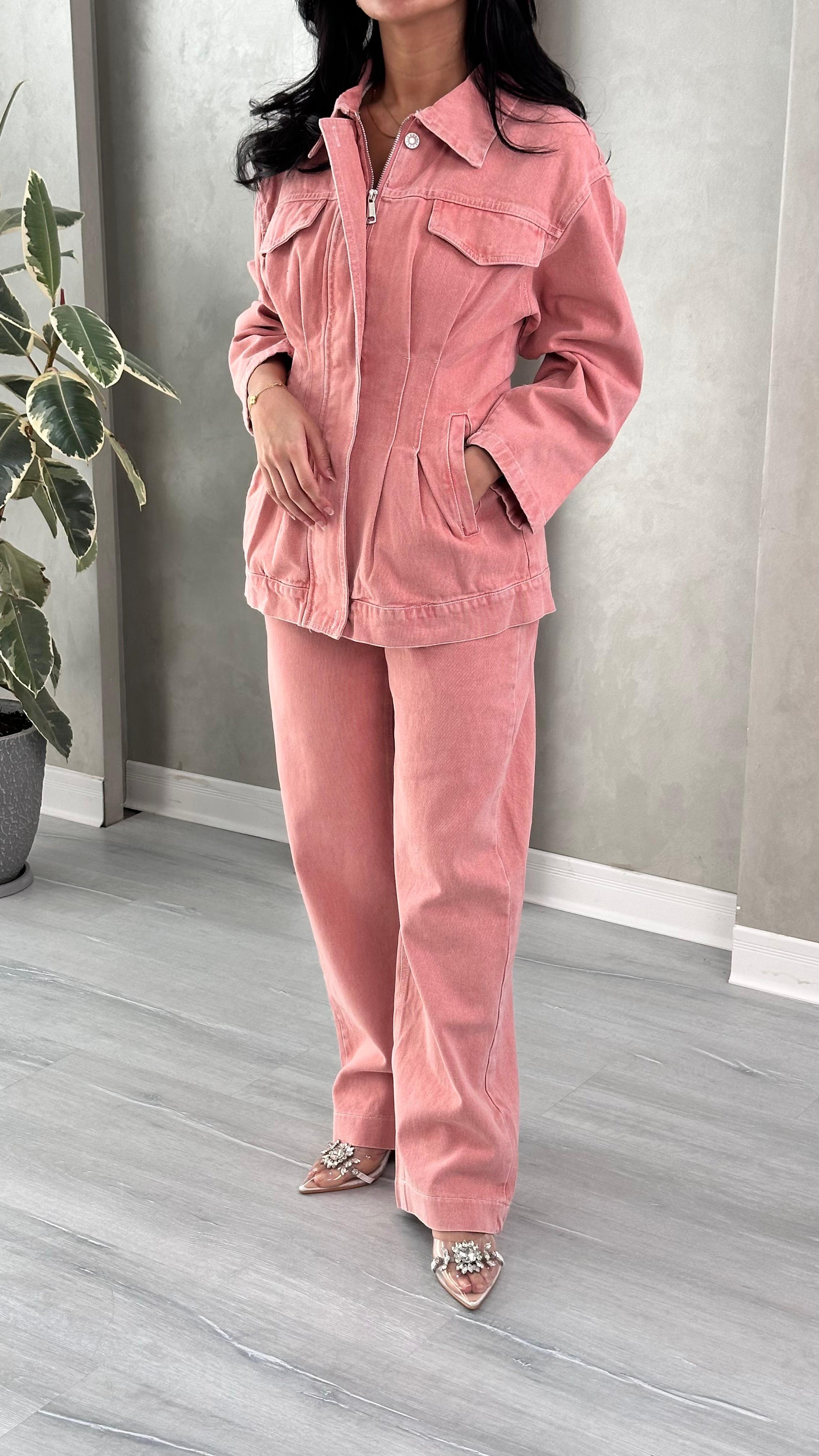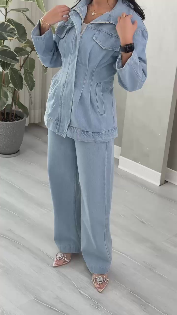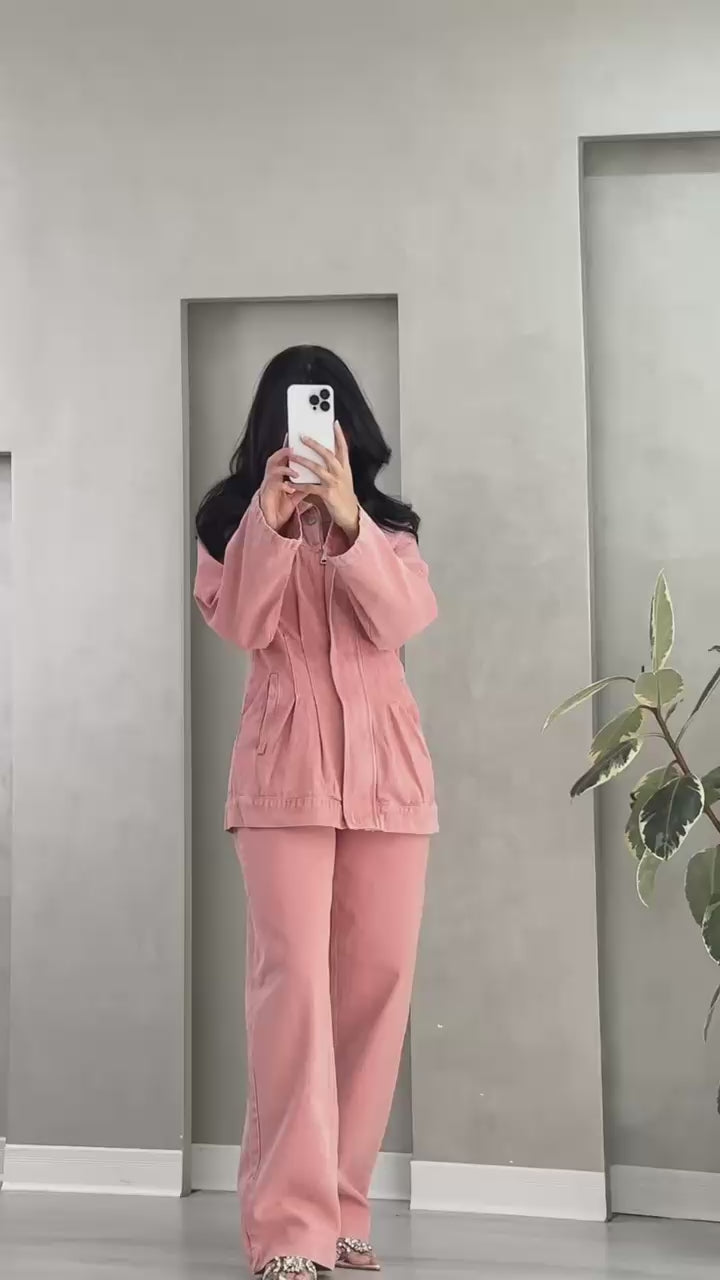 الطقم يتميز بتناسق القماش والتصميم، ويجمع بين الراحة والأناقة بأسلوب عصري.