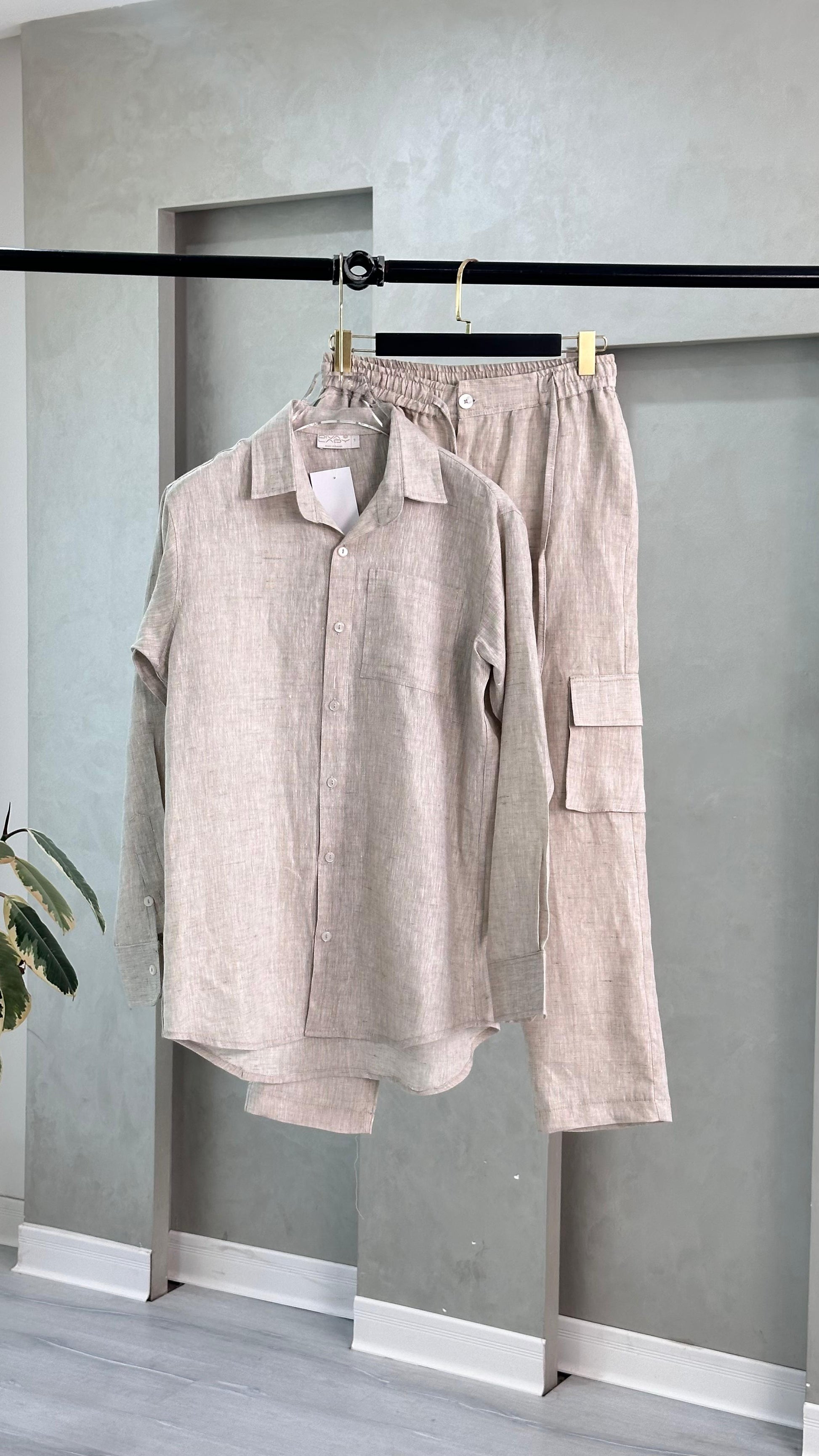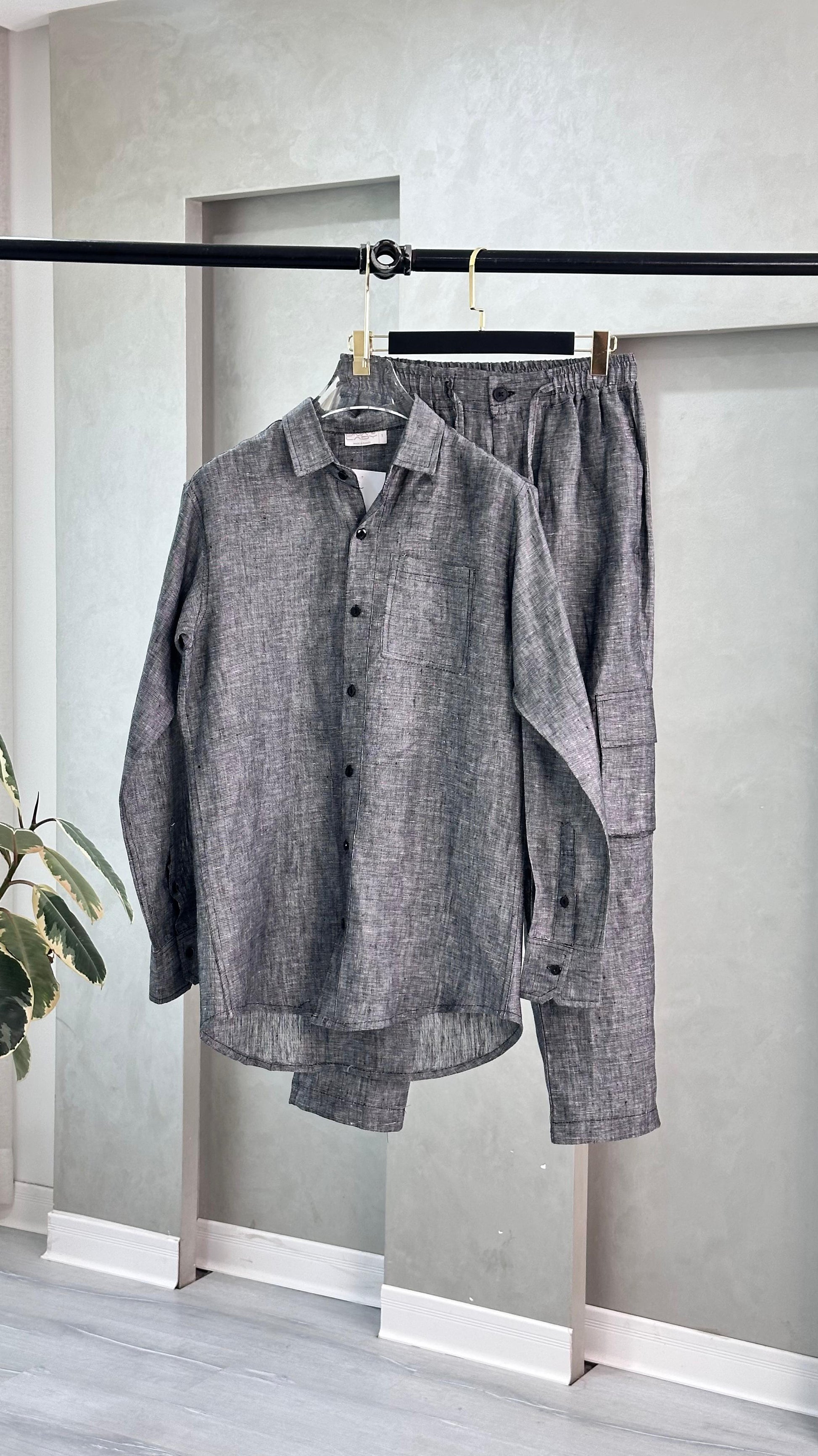 طقم قطعتين متناسق: يتكون من قميص بأكمام قصيرة وسروال بتصميم موحد، يضمن إطلالة متكاملة ومرتبة.