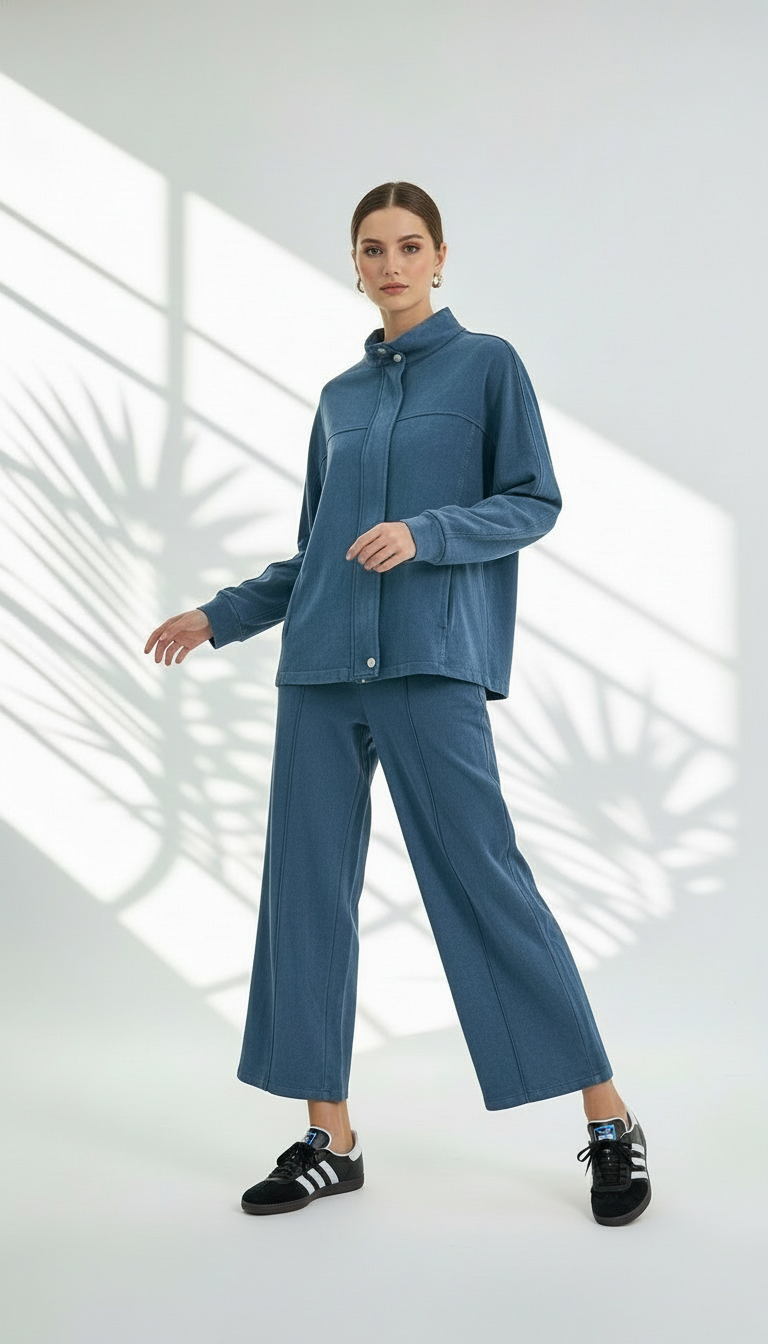 اجمعي بين الراحة الفائقة والأناقة البسيطة مع هذا الطقم المكون من قطعتين، المصمم لخلق إطلالة مريحة ومتماسكة في آن واحد، مثالي للإطلالات اليومية أو السفر.