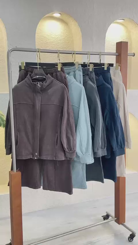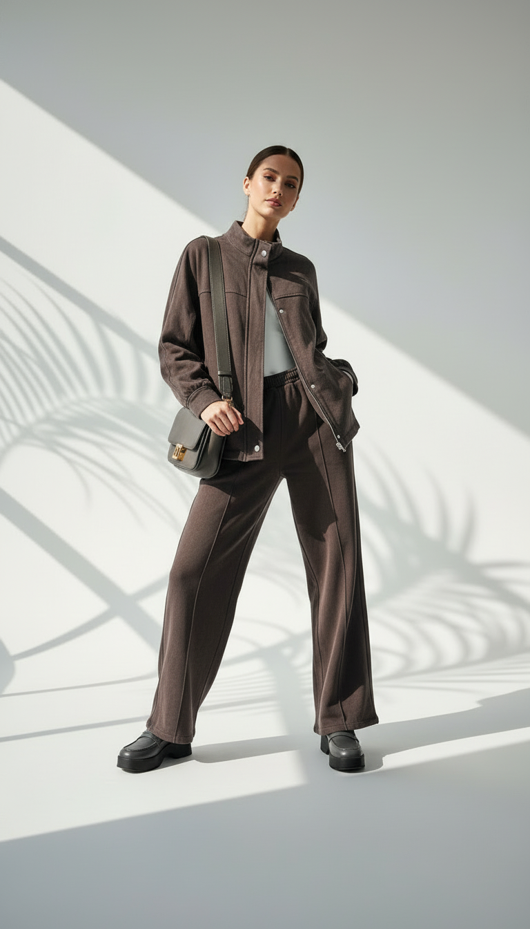 هذا الطقم يمثل خياراً مثالياً للاسترخاء والأناقة العصرية في آن واحد: