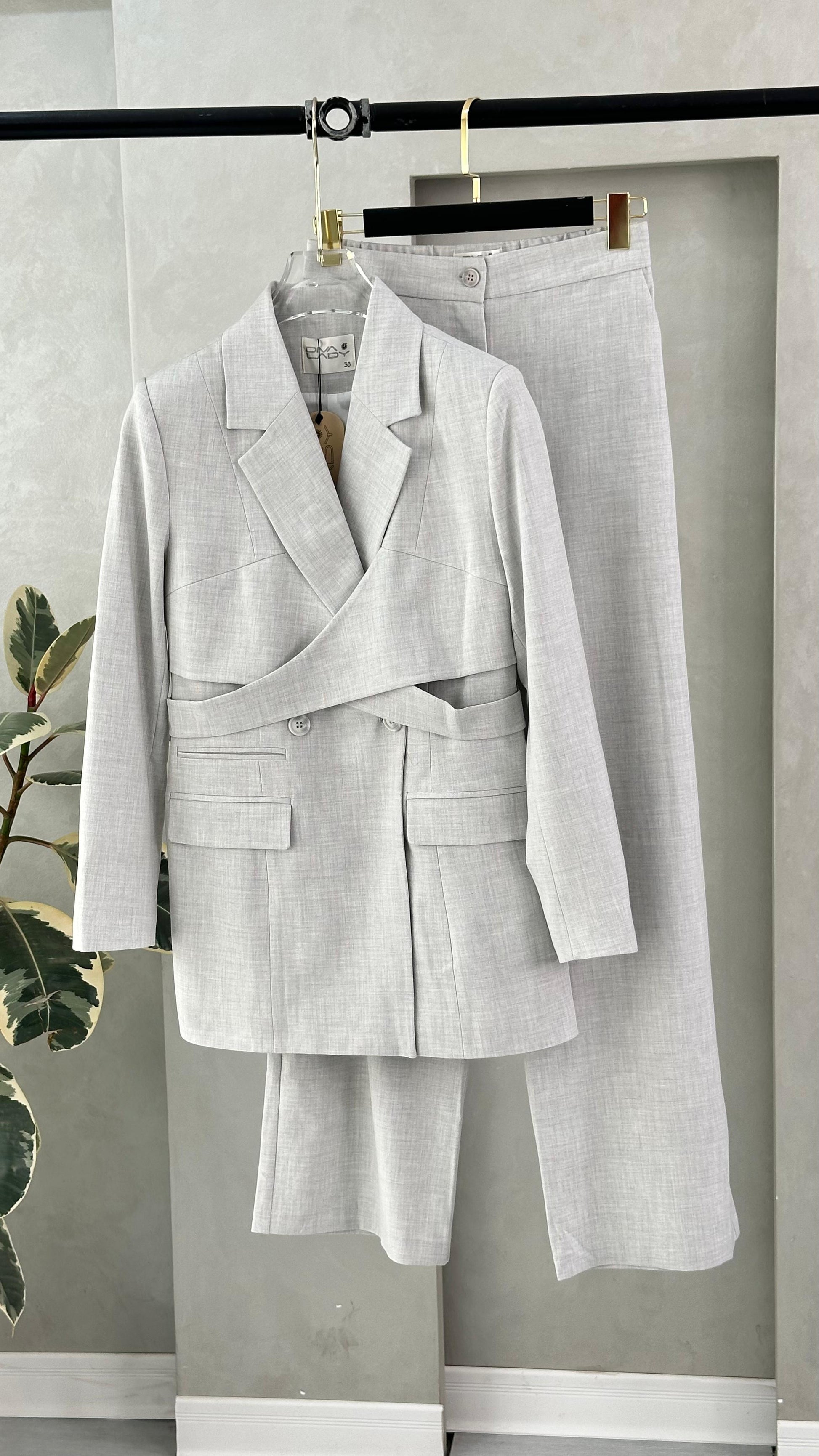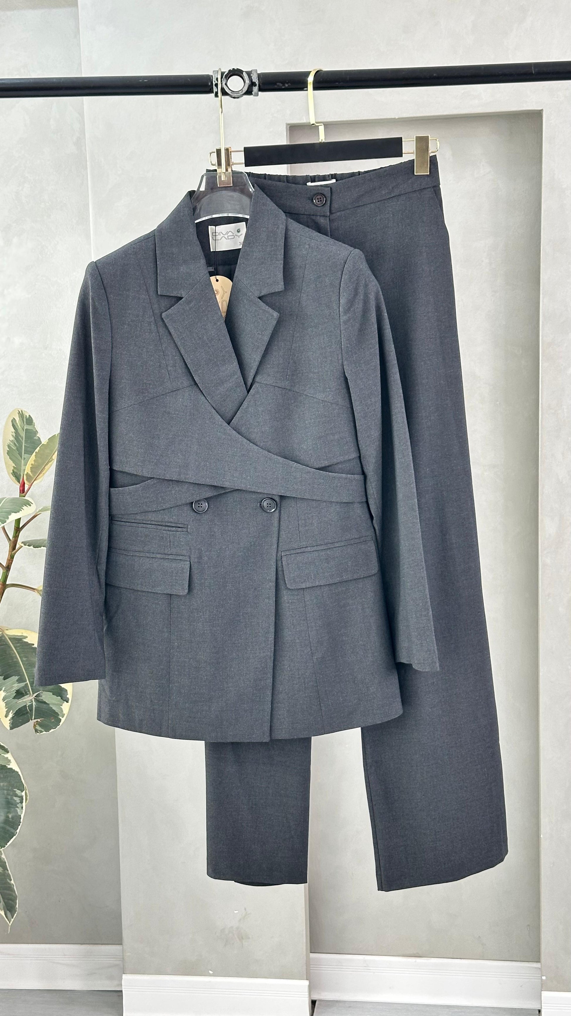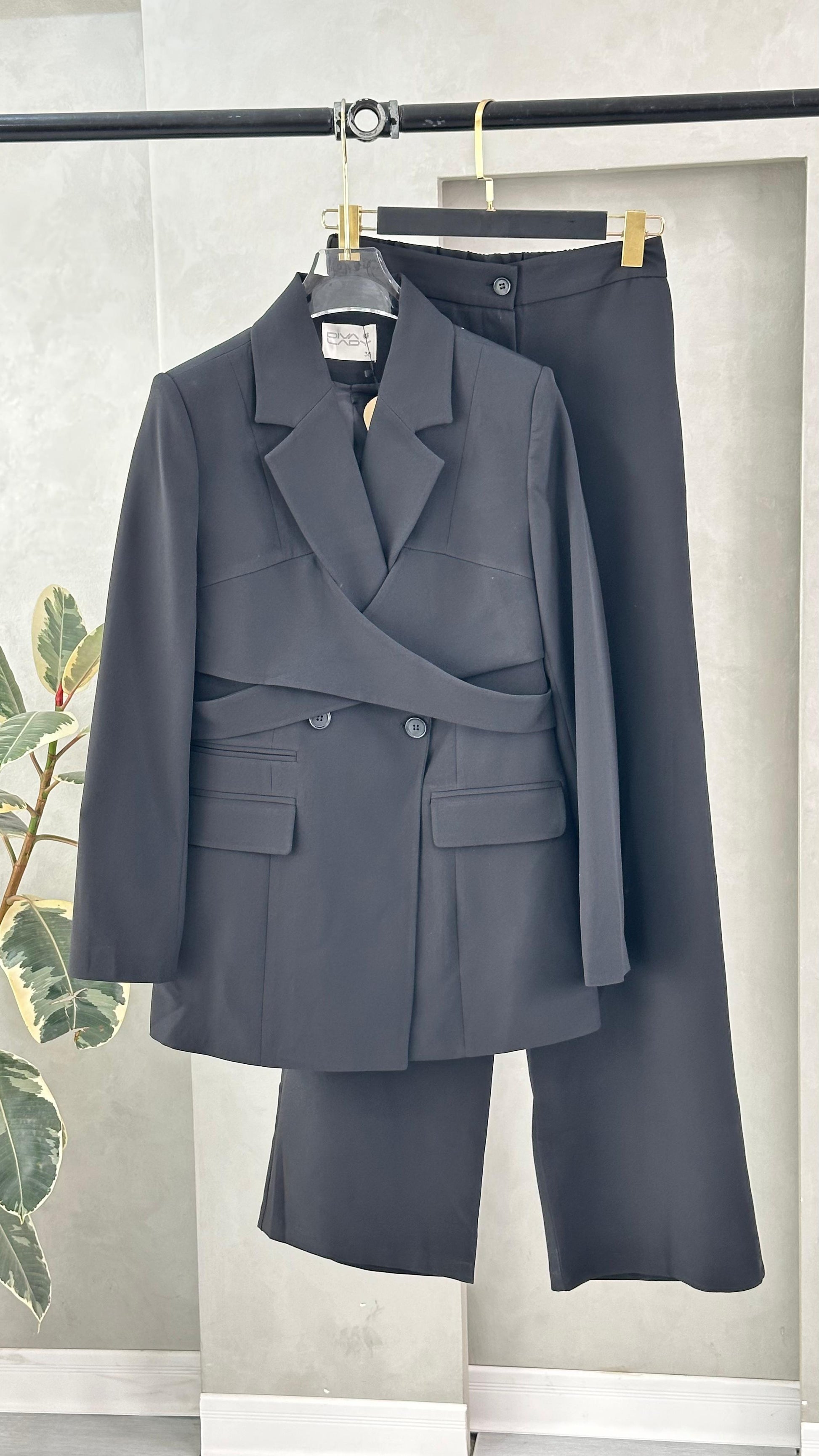قطعة أيقونية للمرأة العصرية التي تبحث عن الأناقة التي تعكس القوة والاحترافية. تصميم يمزج بين اللمسة الكلاسيكية والقصات الحديثة الجريئة. هذا الطقم يضمن لكِ إطلالة متكاملة وواثقة، مثالي لجميع اجتماعاتك ومناسباتك الهامة.