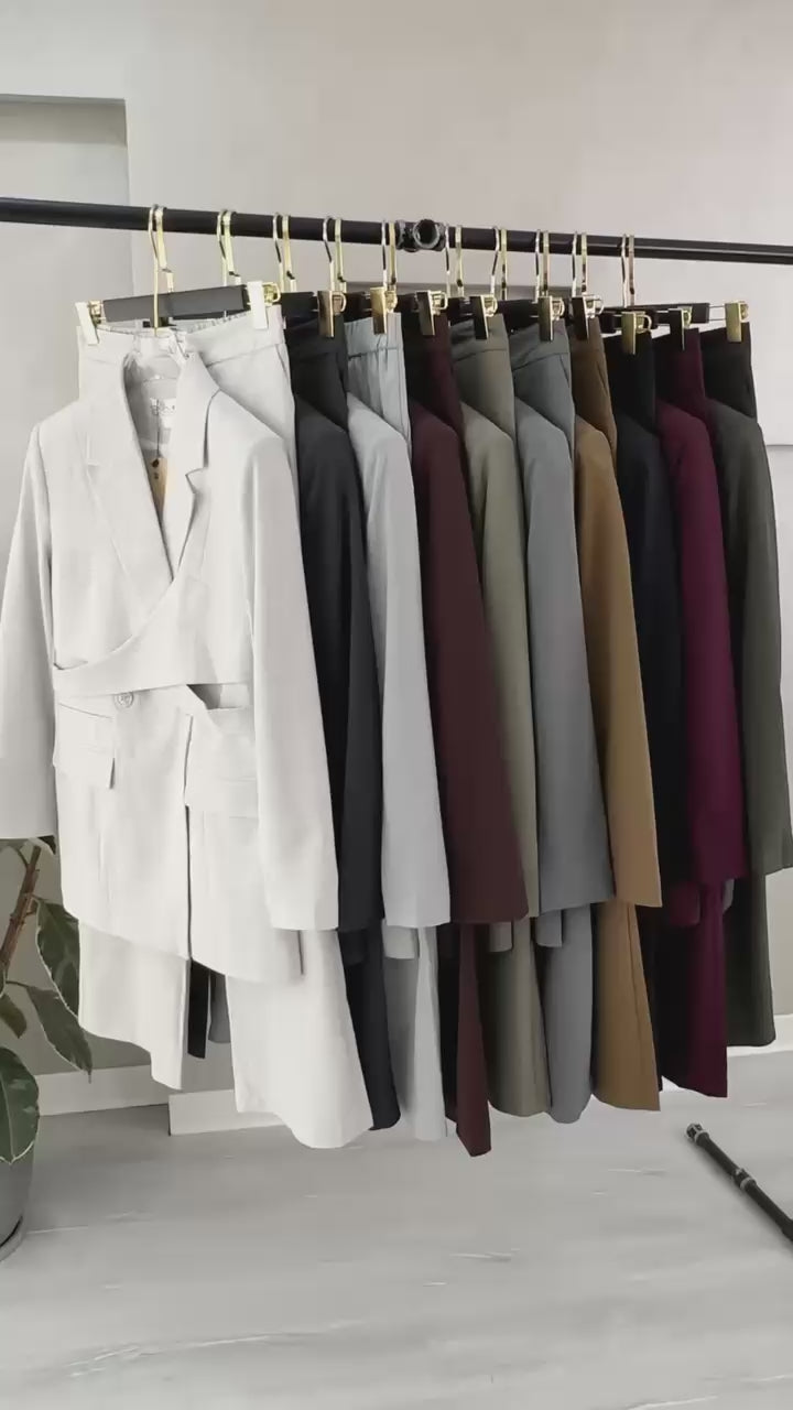 تنسيق مرن: يمكن ارتداء الطقم كبدلة رسمية متكاملة أو تنسيق كل قطعة بمفردها لتشكيل إطلالات مختلفة ومتنوعة.