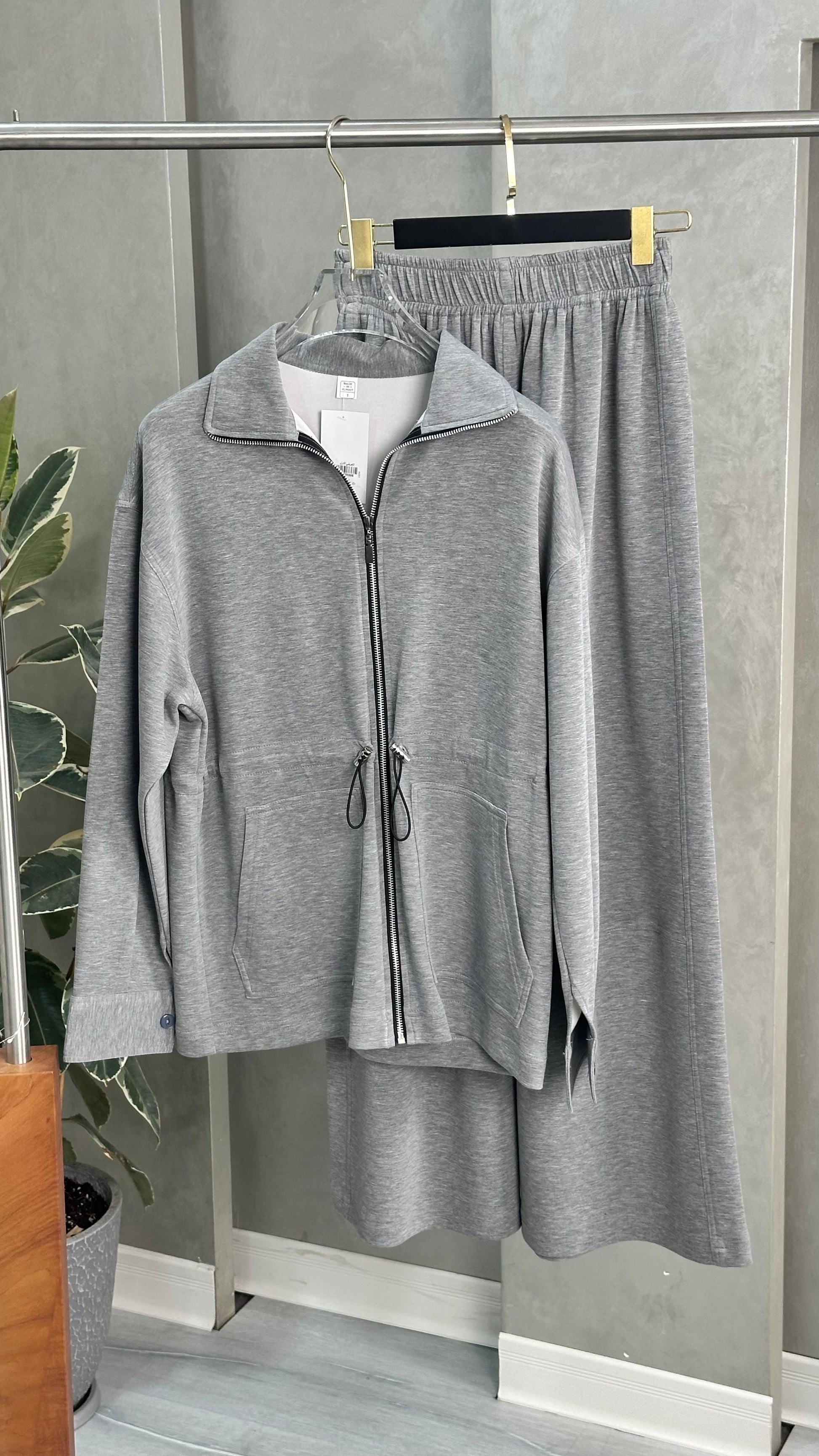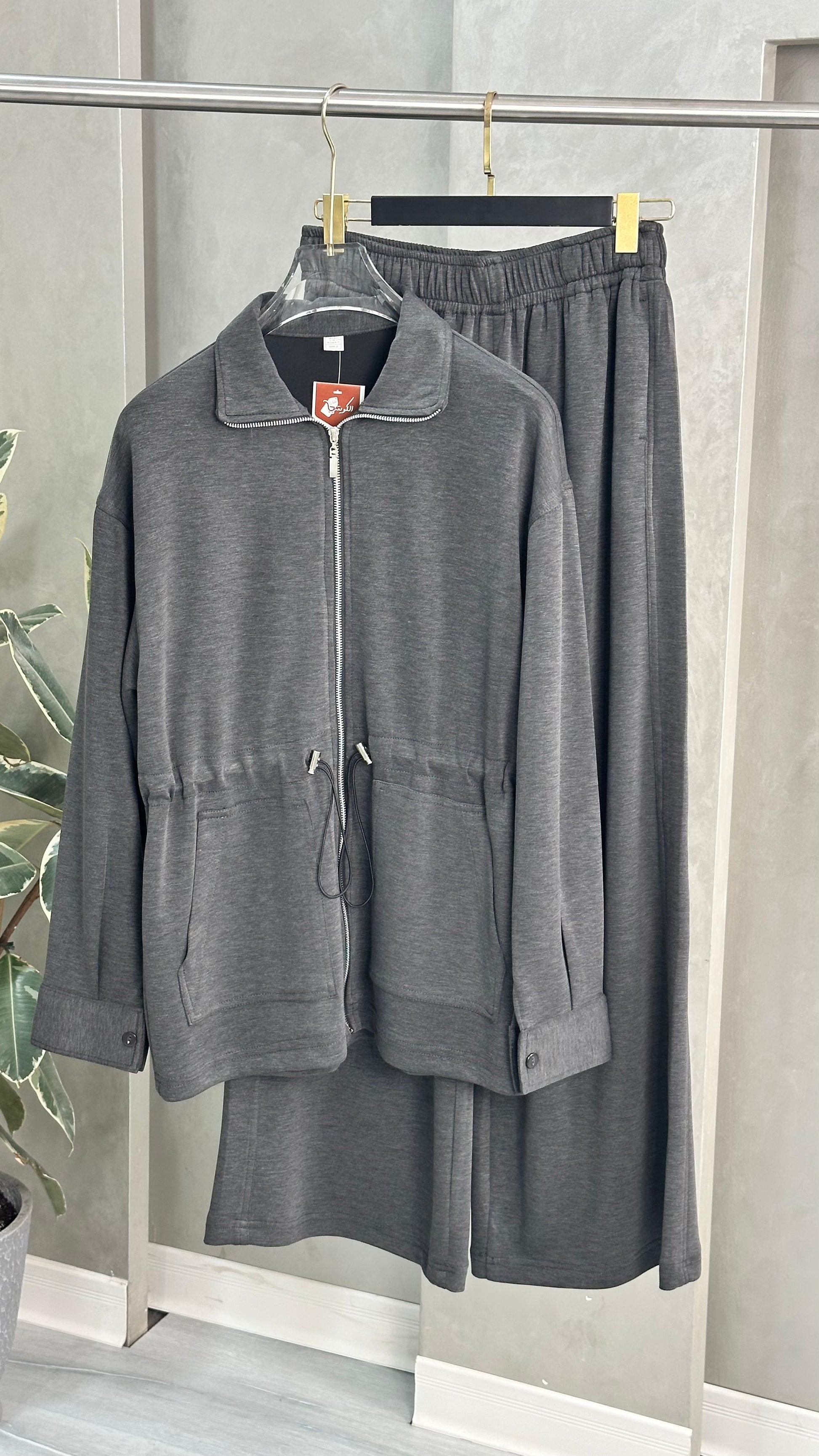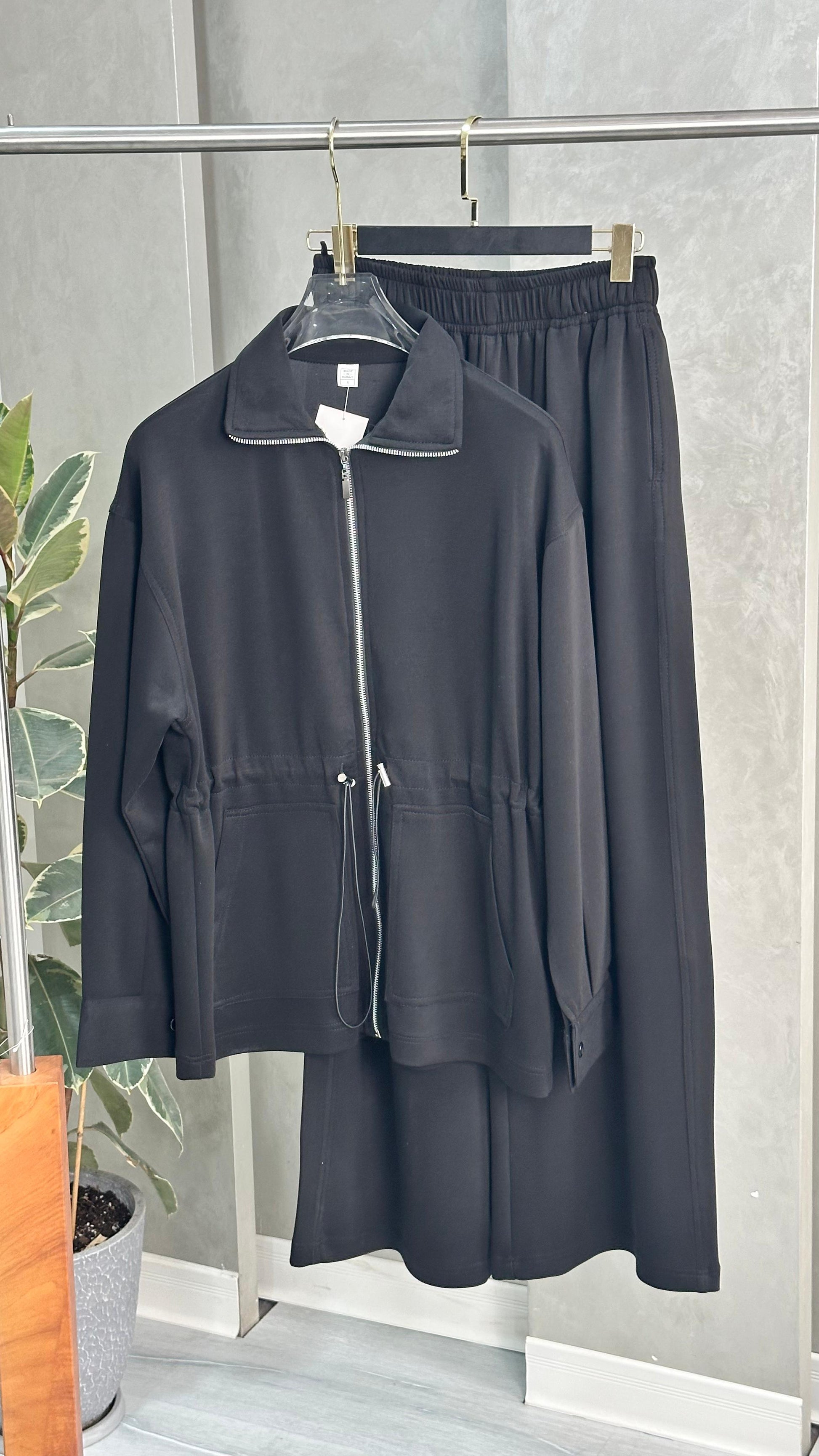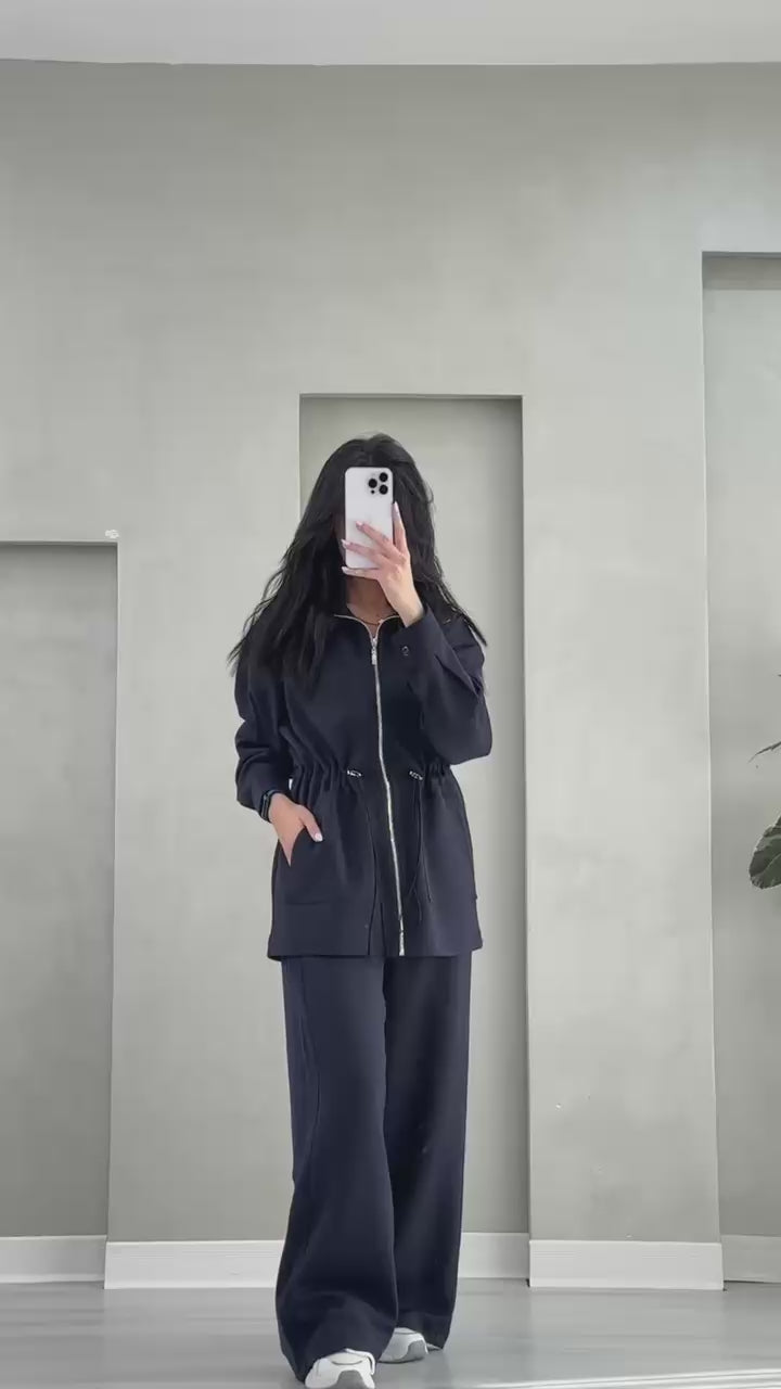 الأناقة السلسة والراحة العصرية! طقم مكون من قطعتين ببلوزة ذات تفاصيل قميصية وبنطال واسع. إطلالة عملية ومميزة تضمن لك الراحة القصوى طوال اليوم."