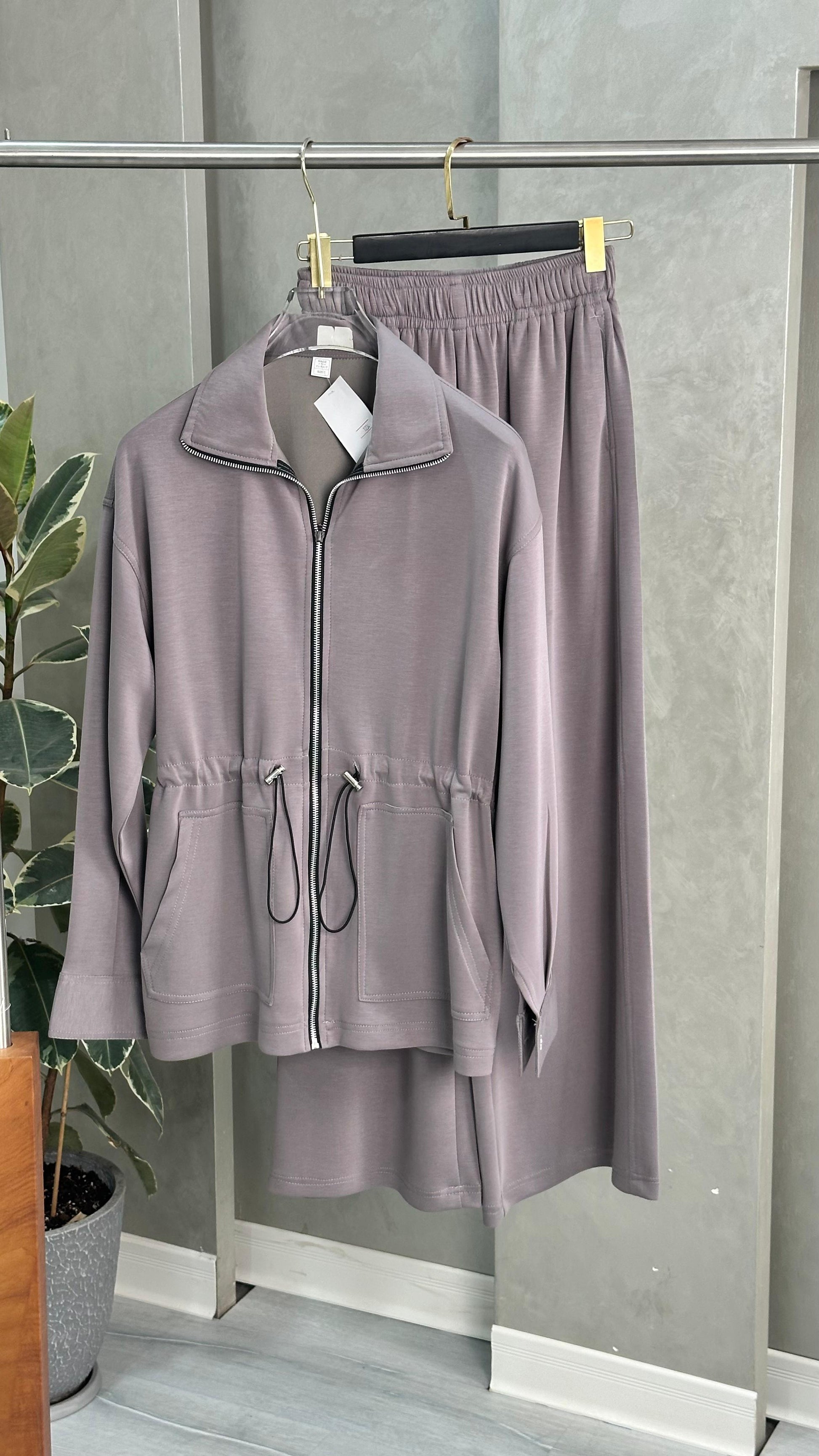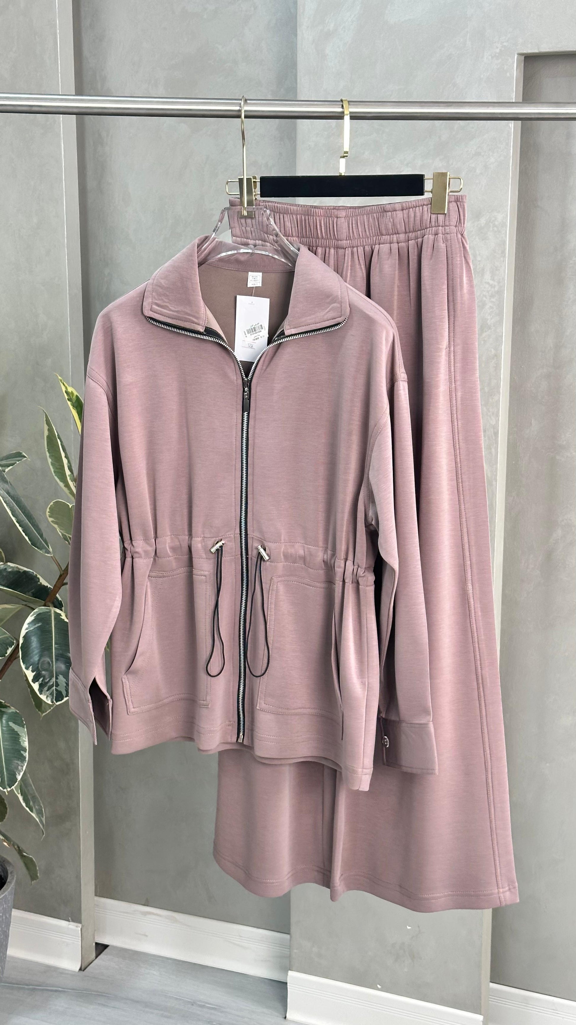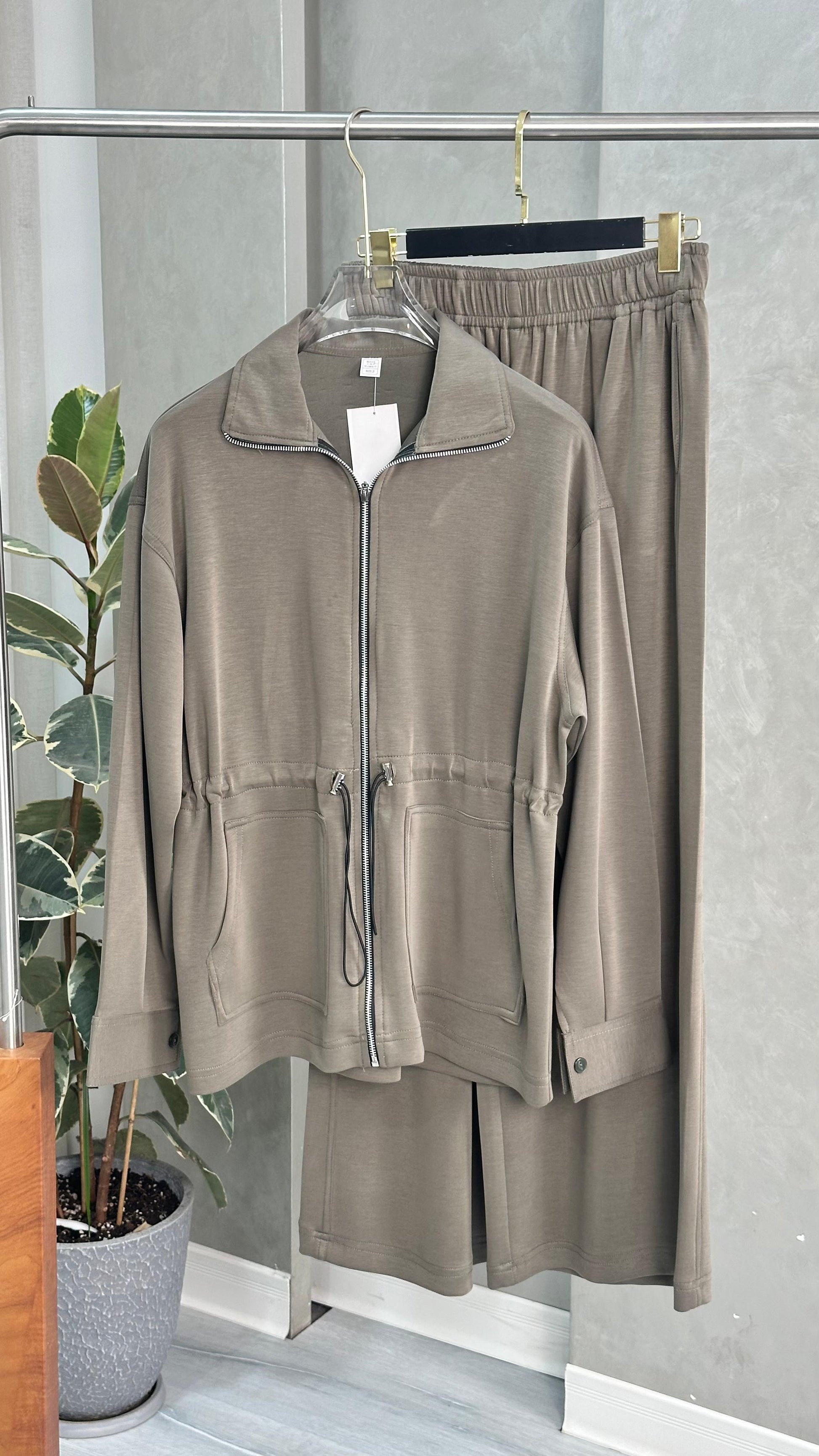 الأناقة السلسة والراحة العصرية! طقم مكون من قطعتين ببلوزة ذات تفاصيل قميصية وبنطال واسع. إطلالة عملية ومميزة تضمن لك الراحة القصوى طوال اليوم."