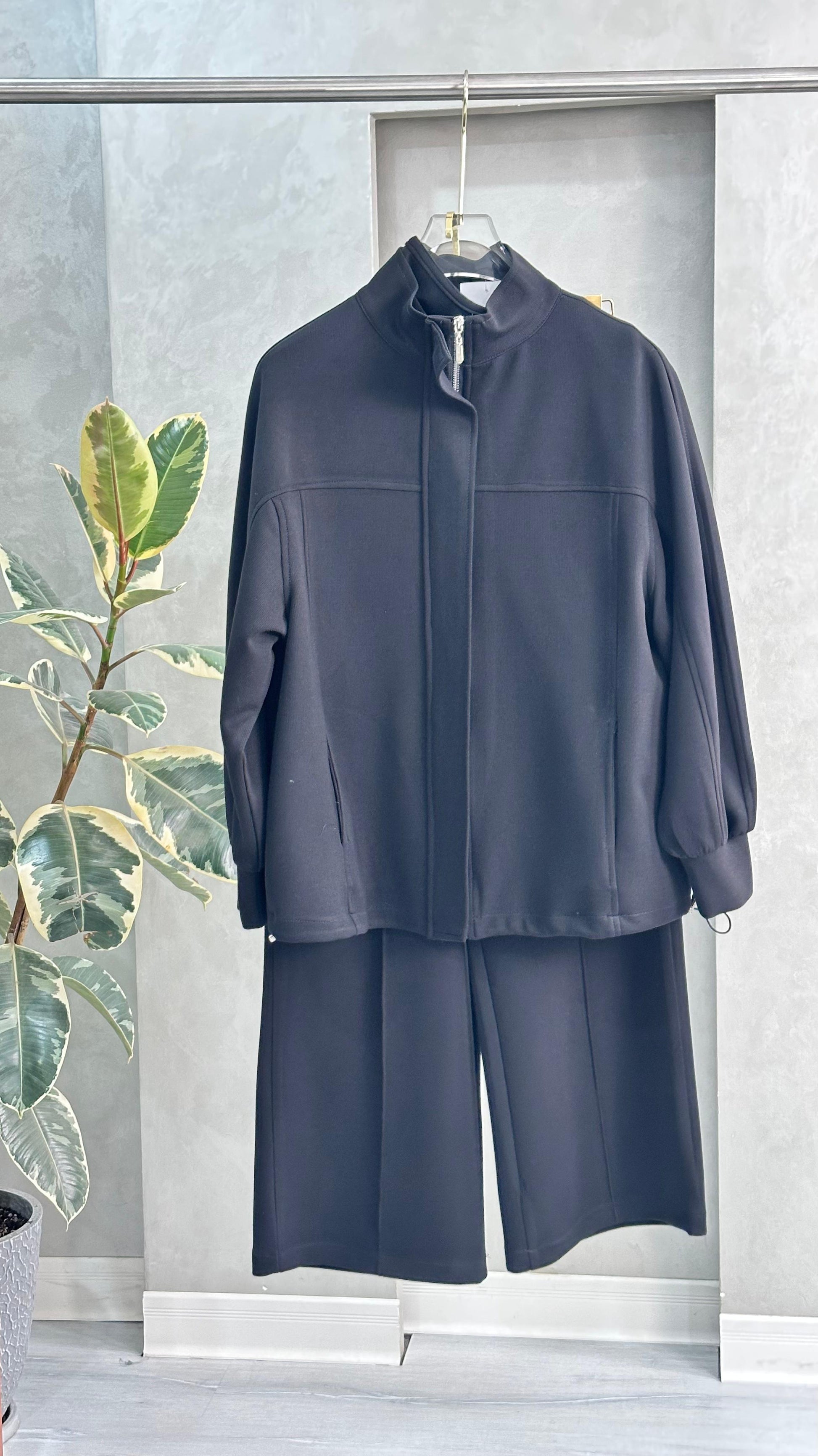 اختاري إطلالة تجمع بين الأناقة والراحة مع هذه البدلة النسائية العملية. الياقة العالية تضيف لمسة فخمة، والأزرار المخفية تمنح التصميم أناقة هادئة ومتناسقة. خامتها مرنة ومريحة على الجسم، وتصميمها مرتب يمنحك شكل أنثوي أنيق بدون عناء.