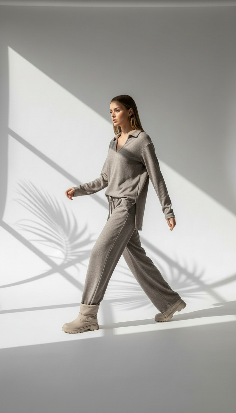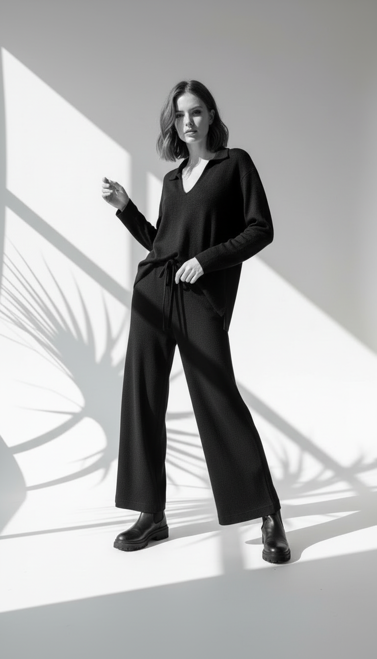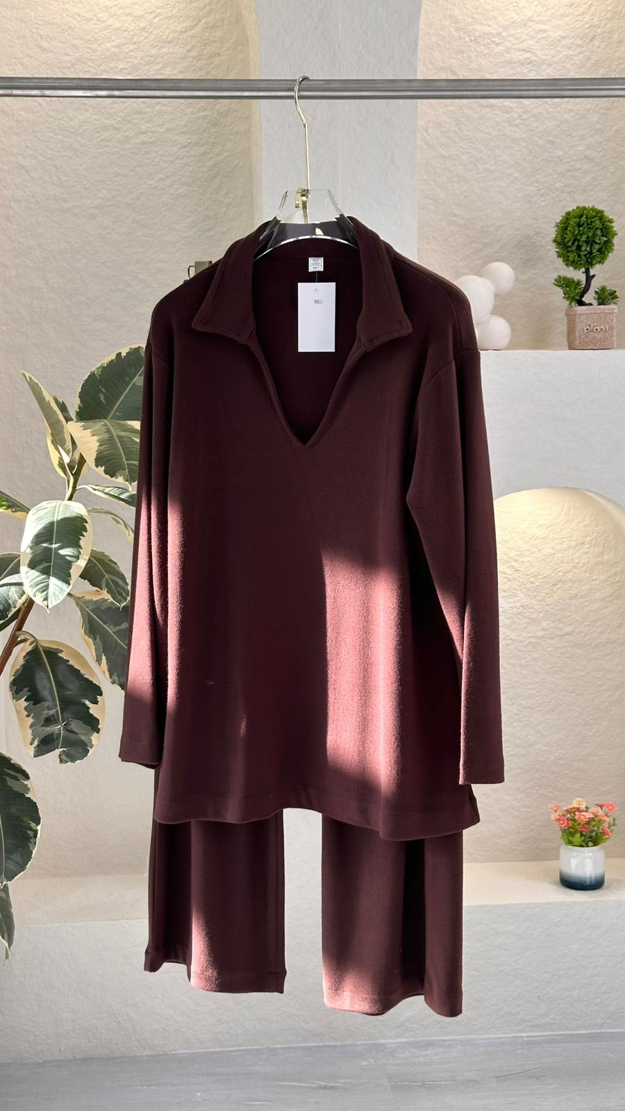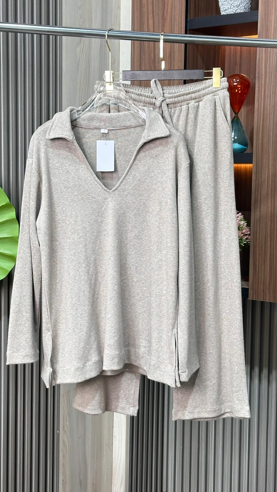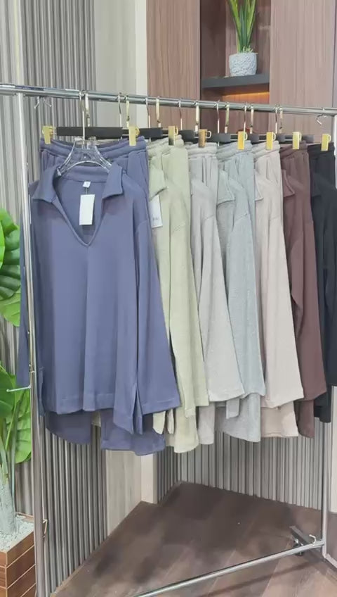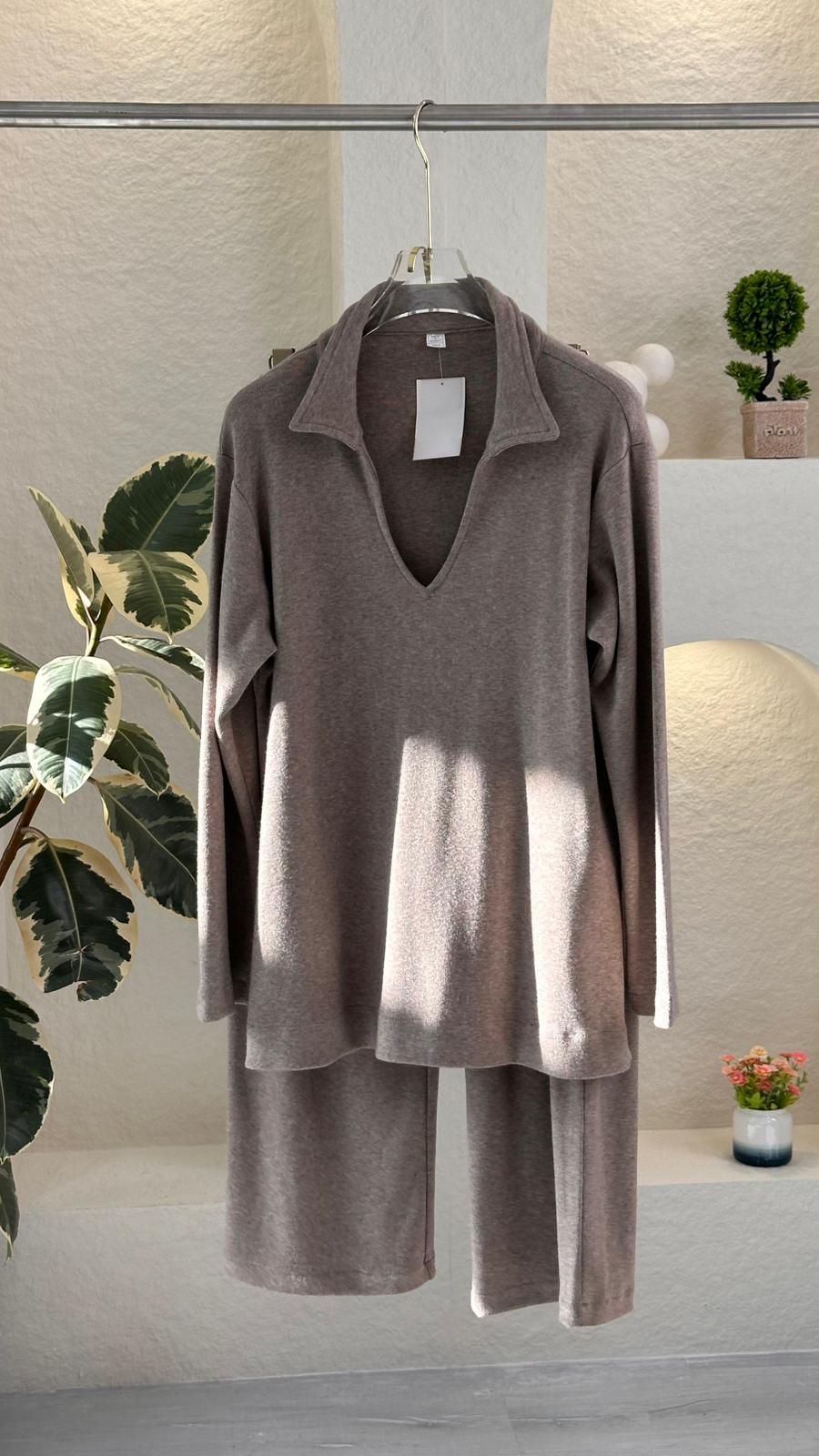 راحة لا مثيل لها تلتقي بأناقة البساطة في طقم الاسترخاء هذا المكون من قطعتين. يتميز بتصميم مريح، ونسيج ناعم يسمح بمرور الهواء، ينساب بسلاسة لراحة طوال اليوم. يتميز الجزء العلوي بلياقة أنيقة وفتحات جانبية لحركة انسيابية، بينما يضمن البنطال الواسع برباط خصر قابل للتعديل. مثالي للنزهات غير الرسمية، أو السفر، أو لحظات الراحة المنزلية - قطعة أساسية عصرية تجمع بين الأناقة والراحة.