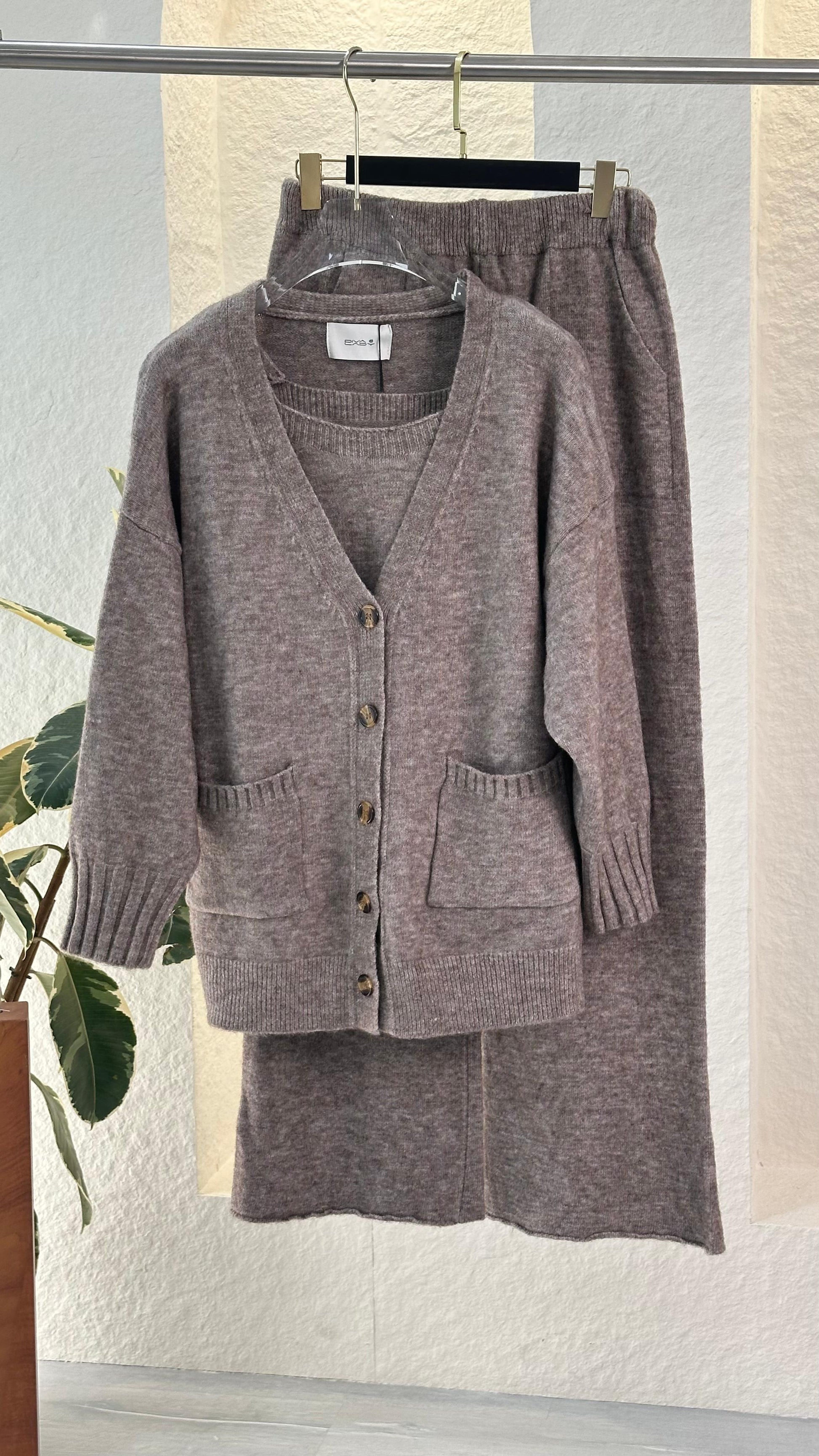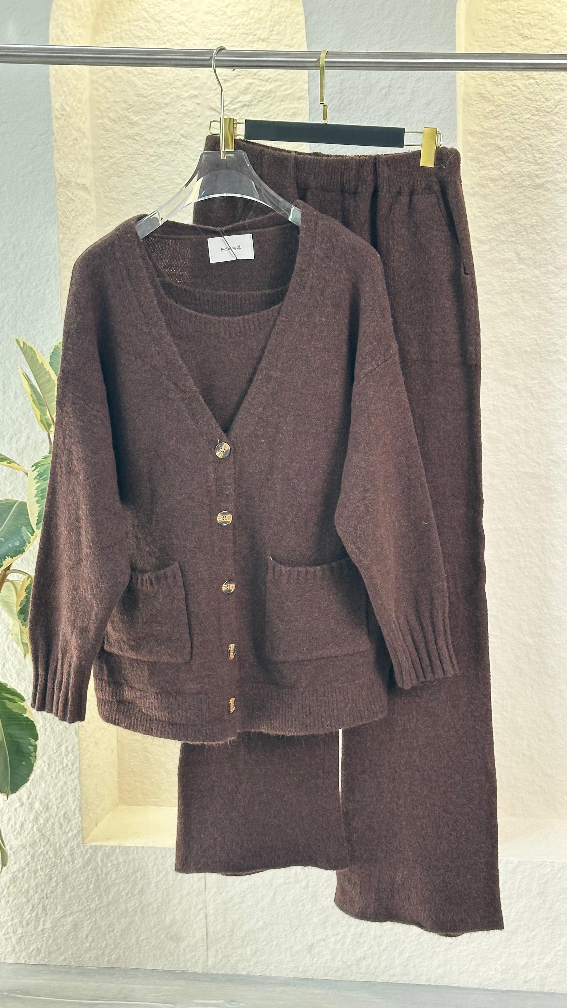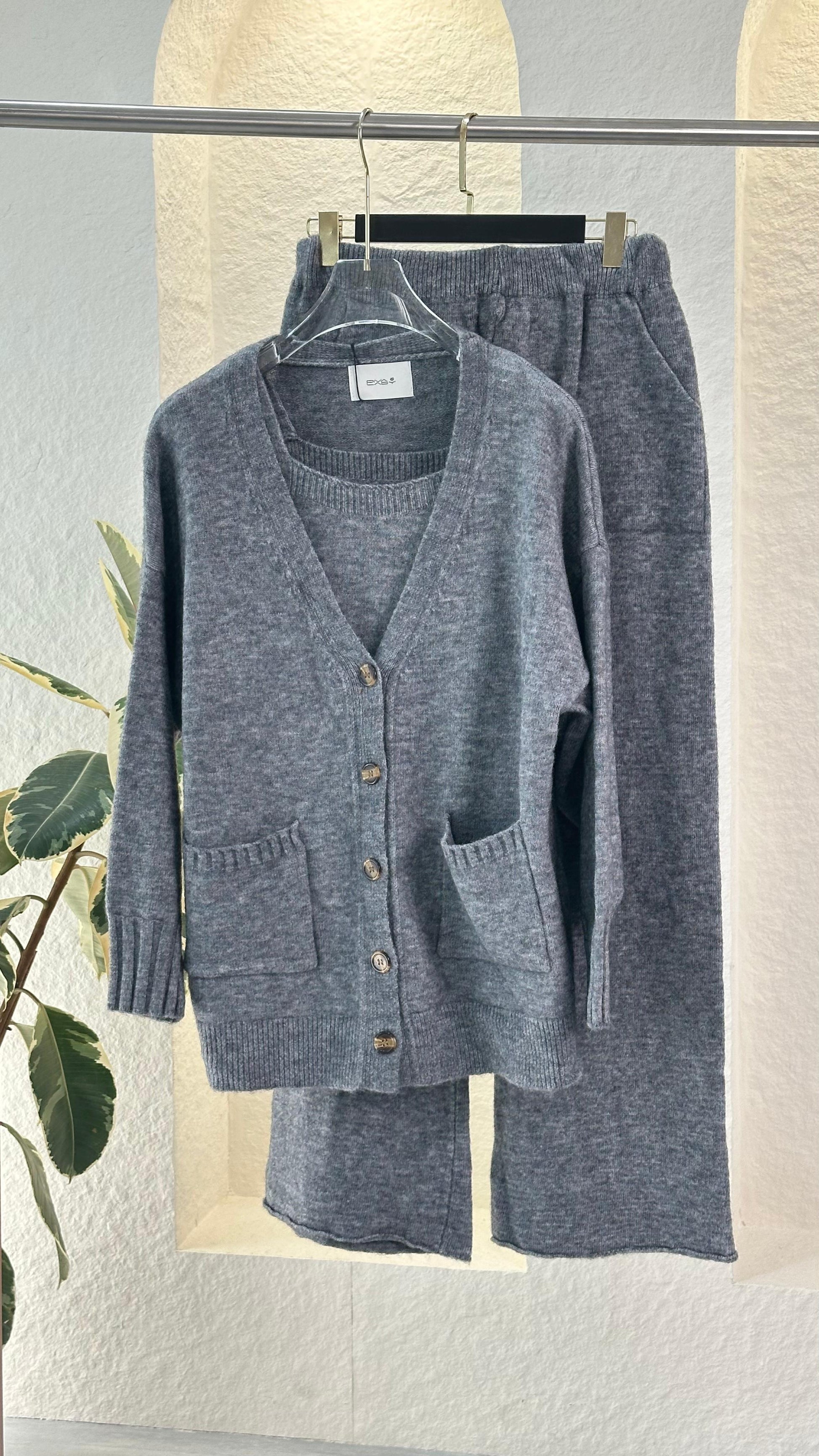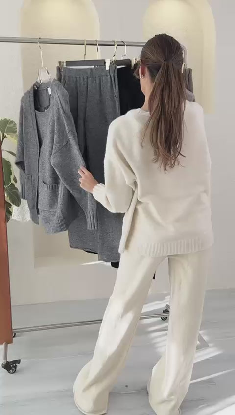 هذا الطقم المحبوك المريح المكون من قطعتين هو المزيج المثالي بين الراحة والأناقة البسيطة. يتميز بكارديجان مريح بأزرار أمامية وجيوب عملية، ويمكن تنسيقه مع بنطال ناعم واسع الساقين لإطلالة متناسقة ومريحة. نسيجه المحبوك المسامي وتصميمه البسيط يجعله مثاليًا للاسترخاء في المنزل أو الخروج بأناقة غير رسمية.