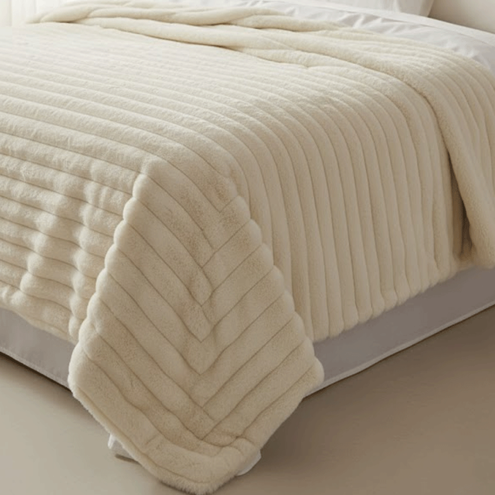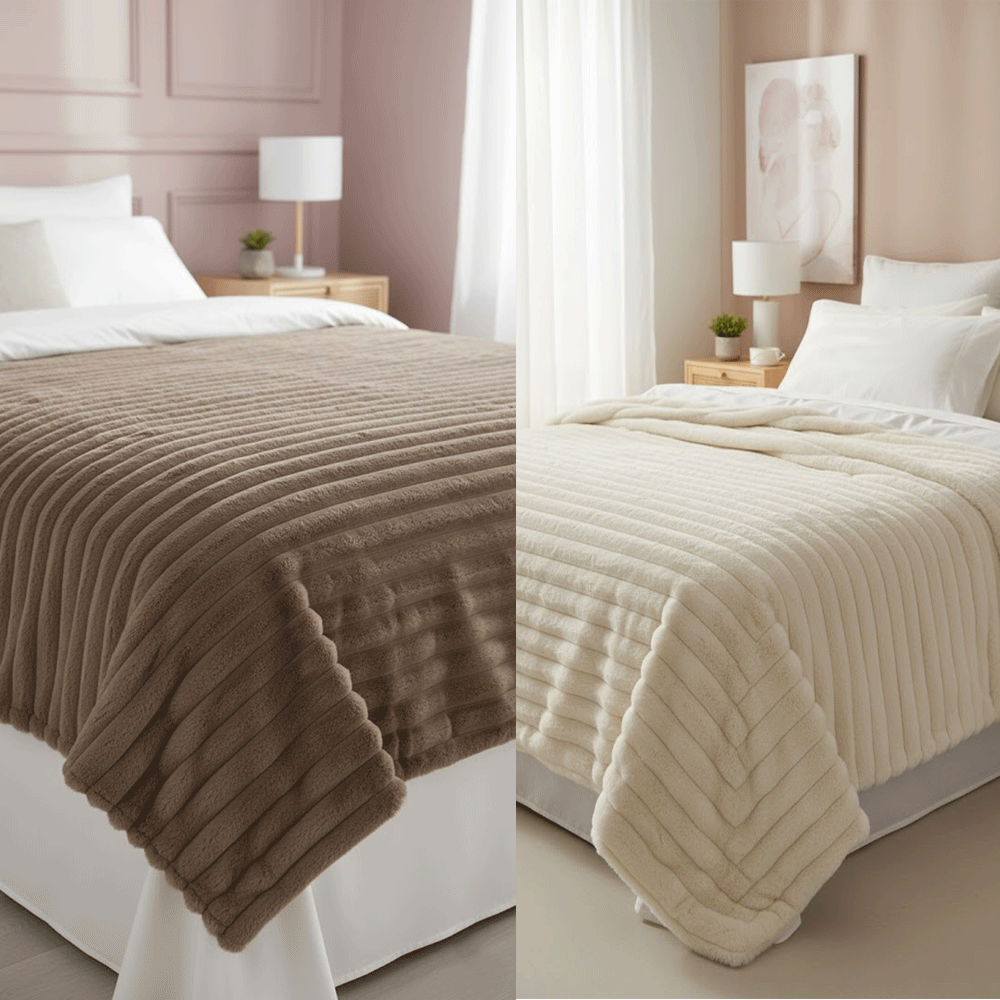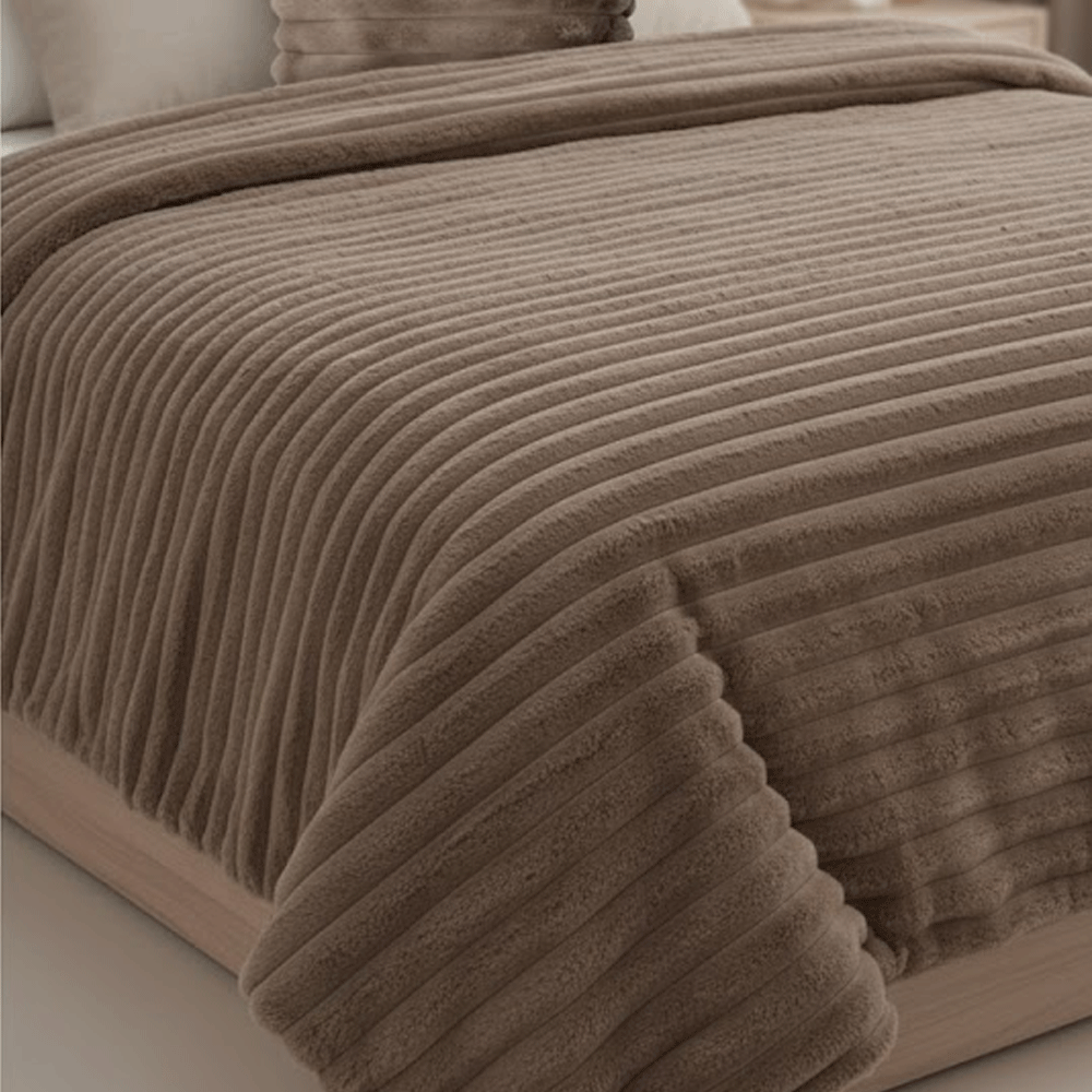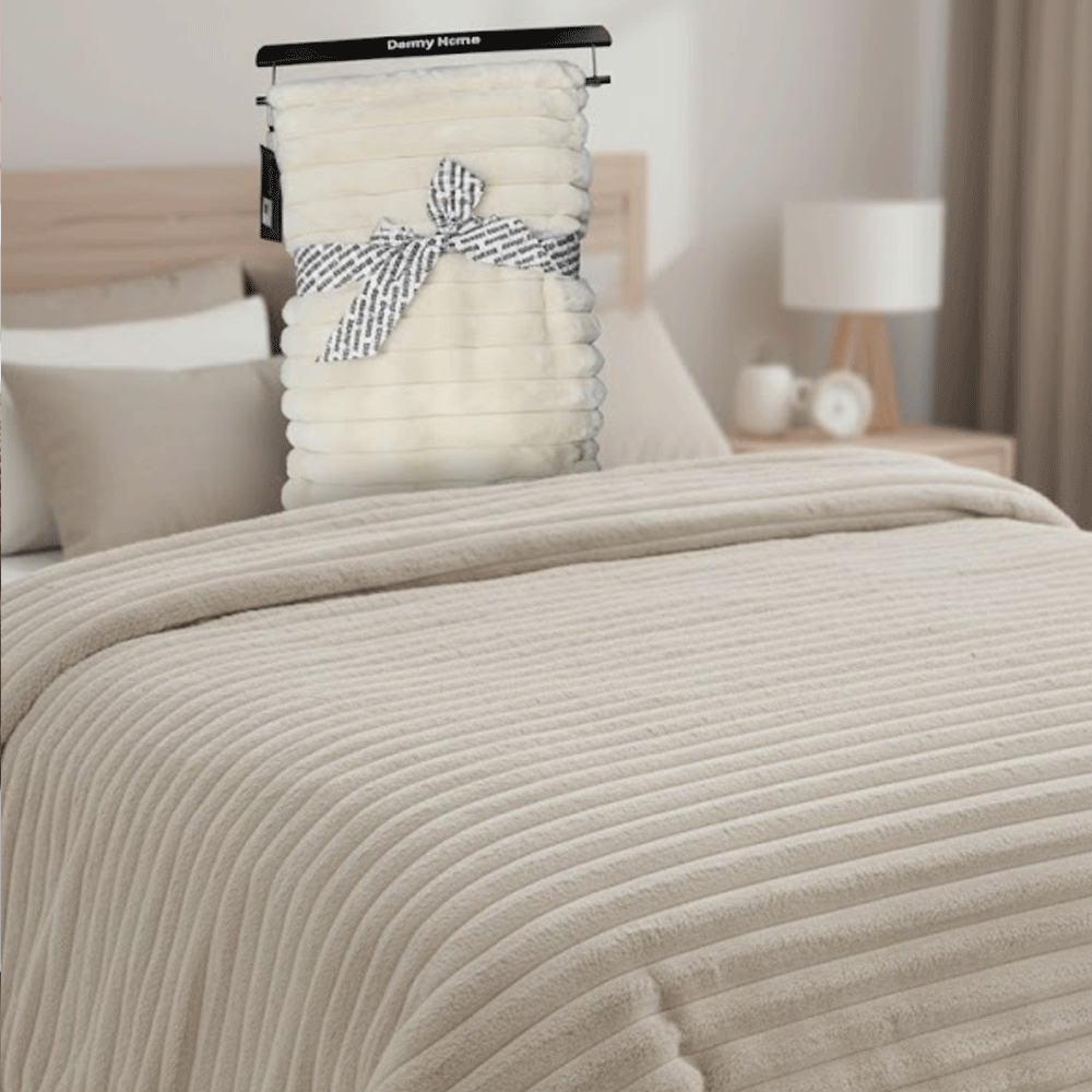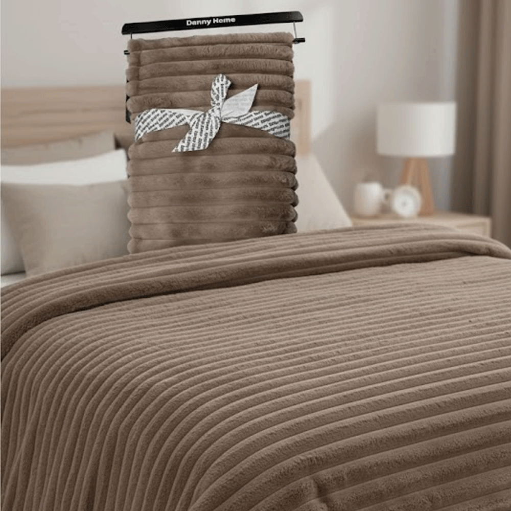 بطانية مضلعة أنيقة: تتميز هذه البطانية الصوفية السميكة بملمس مضلع أنيق يضفي لمسة من الأناقة والجاذبية على أي غرفة.