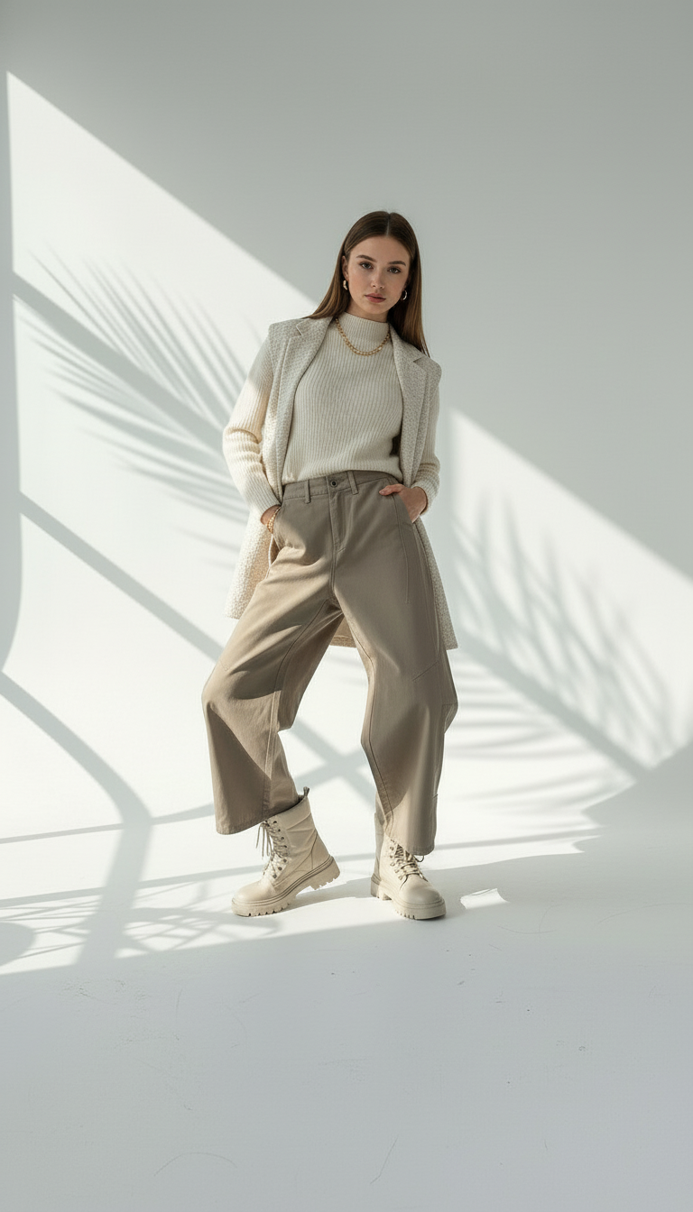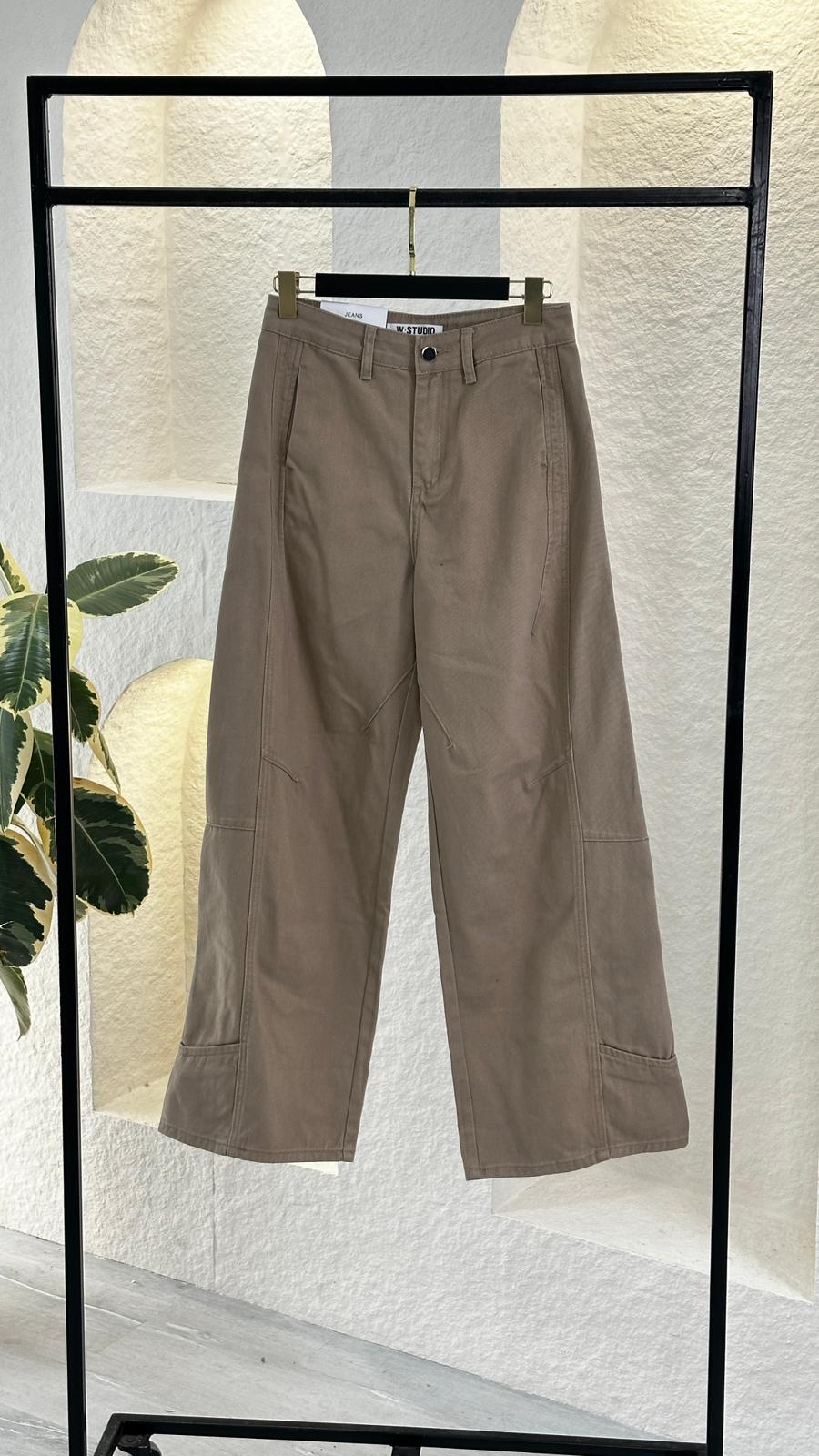 ✨ تفاصيل خياطة مميزة: يبرز تصميم البنطلون بفضل خطوط الخياطة (Seam details) التي تمتد عمودياً وأفقياً على الساقين، مما يضيف عمقاً للتصميم ويعزز من شكله الجمالي.