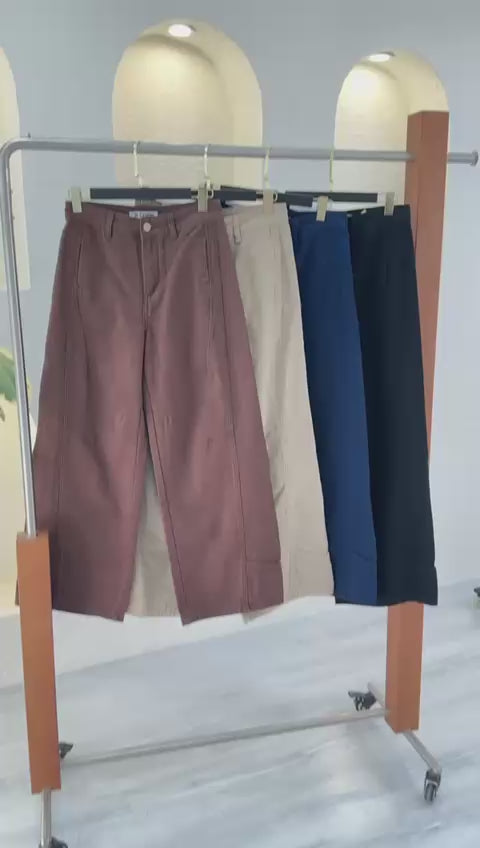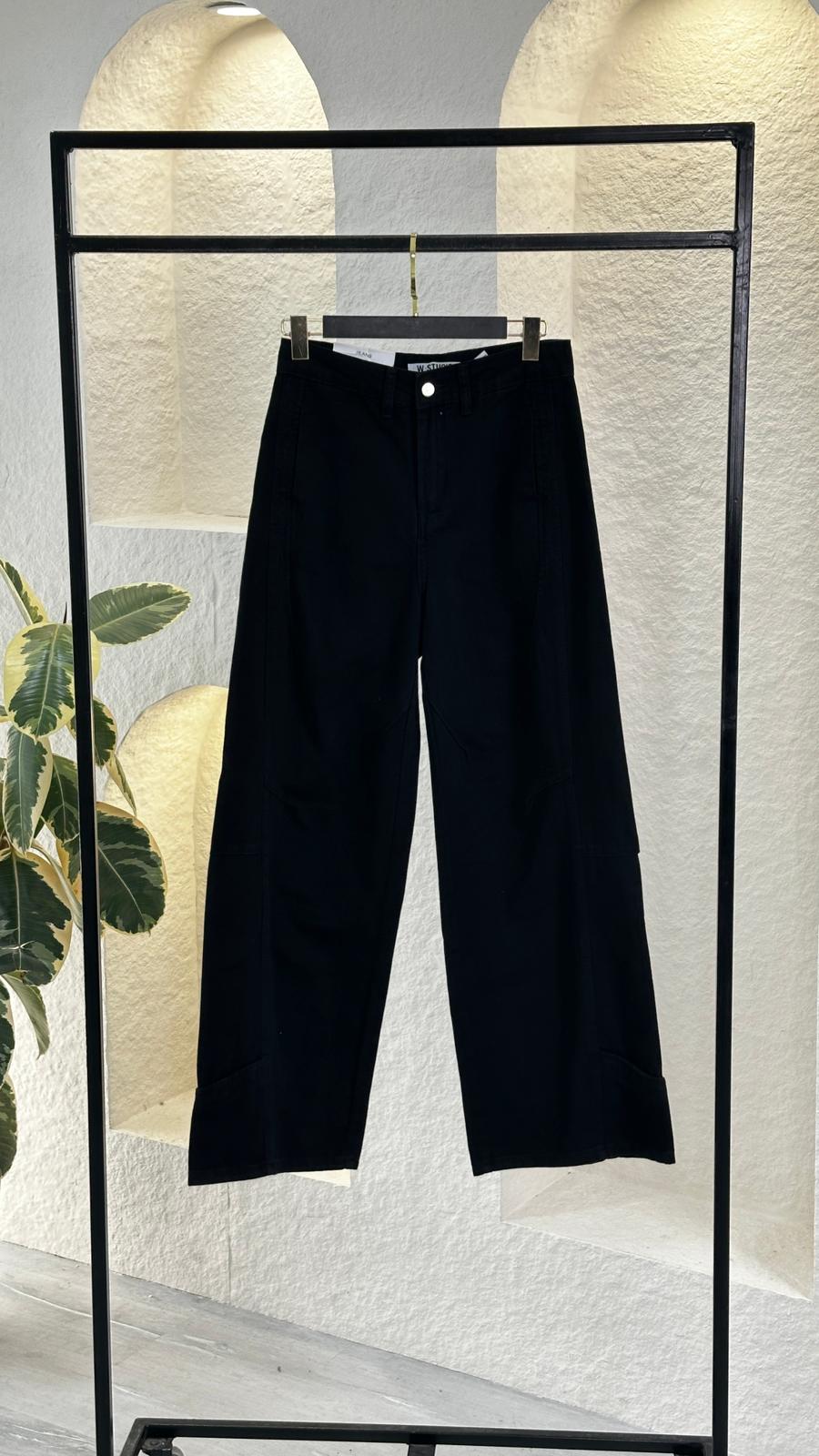 يجمع هذا البنطلون بين الراحة المطلقة والتصميم الجريء، ليصبح قطعة مفضلة لديك في الخزانة. تصميمه الواسع ولونه الغامق يجعله مثالياً لإطلالات الخريف والشتاء، ولكنه خفيف ومريح للاستخدام طوال العام.