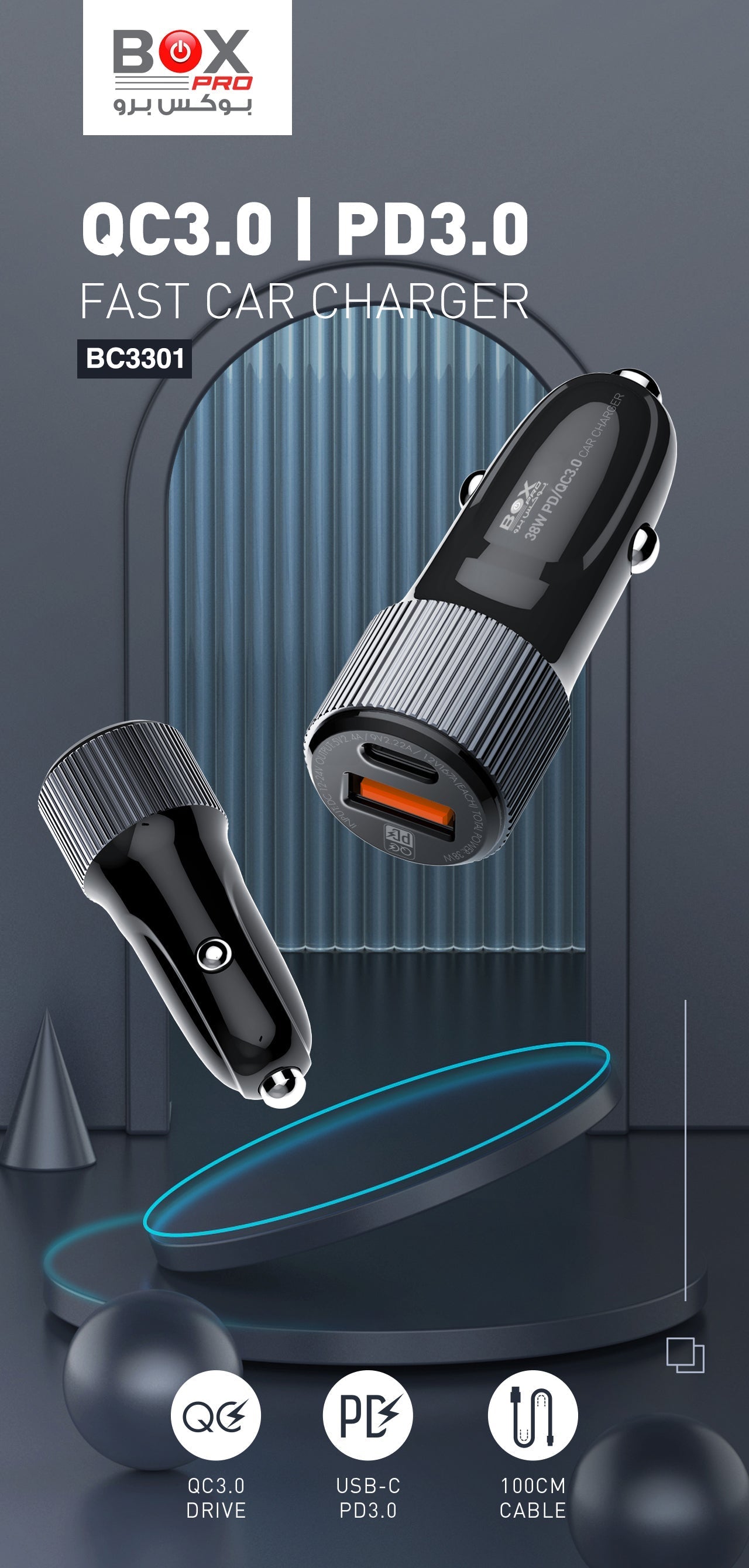 بوكس برو BC3301 شاحن سيارة سريع QC3.0 / USB-C PD 38W