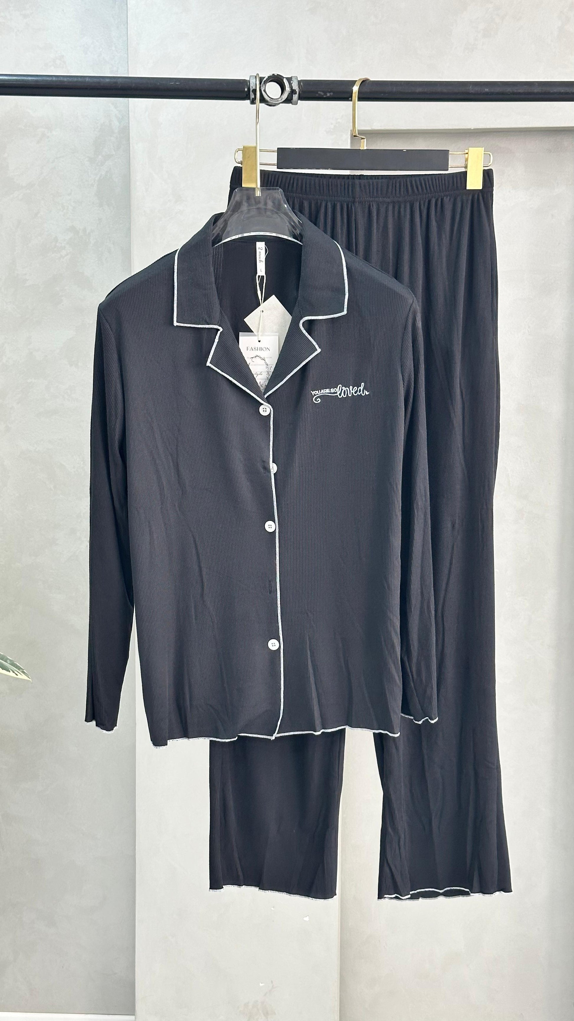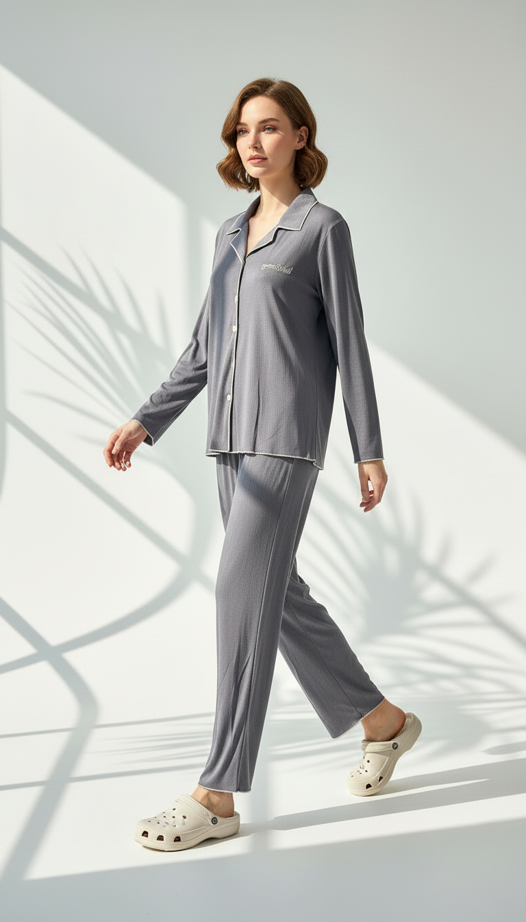 راحة فائقة بأسلوب أنيق! طقم منزلي بلمسة كلاسيكية مع تفاصيل بسيطة تبرز الياقة، مثالي للاسترخاء بمظهر مرتب وراقٍ. قطعة عملية لا غنى عنها."