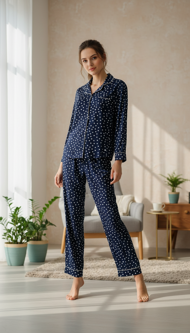 بيجامة نسائي منقطة بازرار