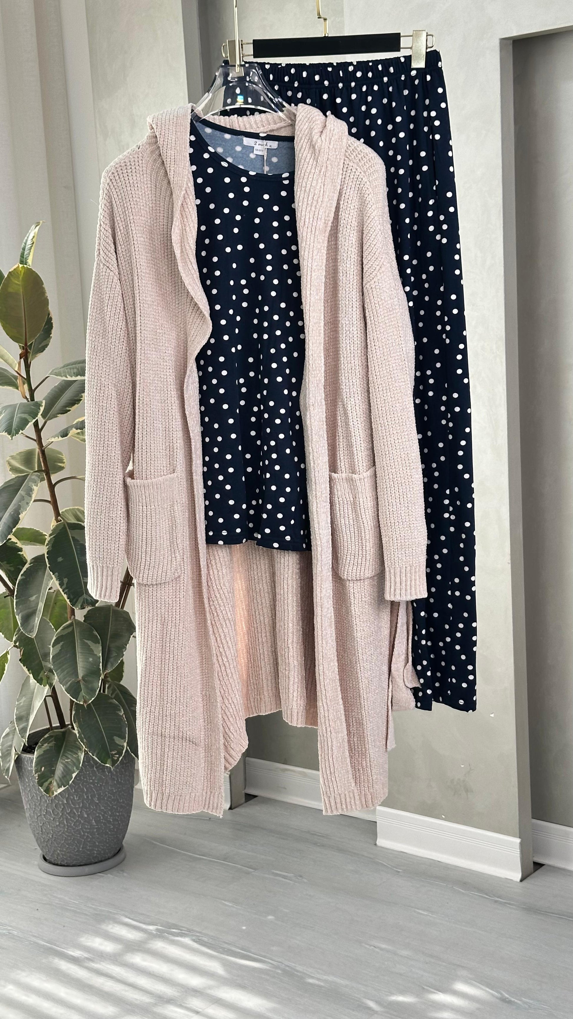 استمتعي بإطلالة مريحة وأنيقة في المنزل مع هذه البيجامة العملية، التي تأتي مع روب ديشامبر لإضفاء لمسة فاخرة وعصرية. خامتها ناعمة ومريحة على البشرة، وتصميمها يمنح حرية الحركة والاسترخاء طوال اليوم.