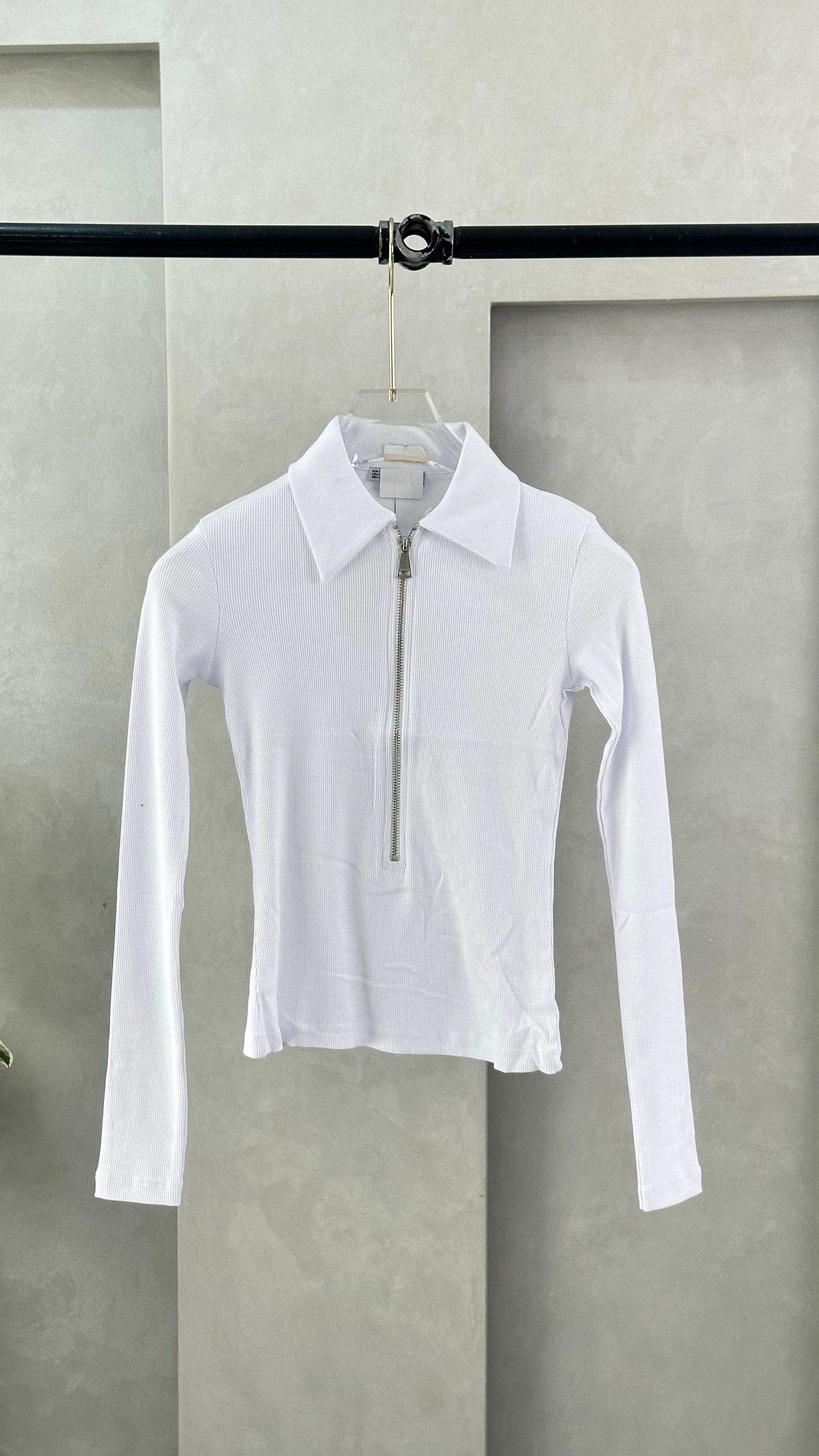 - يتوسطه سحاب رأسي يبدأ من منطقة الصدر حتى أعلى فتحة الرقبة، مما يمنحه طابعًا عصريًا ويضيف وظيفة عملية.