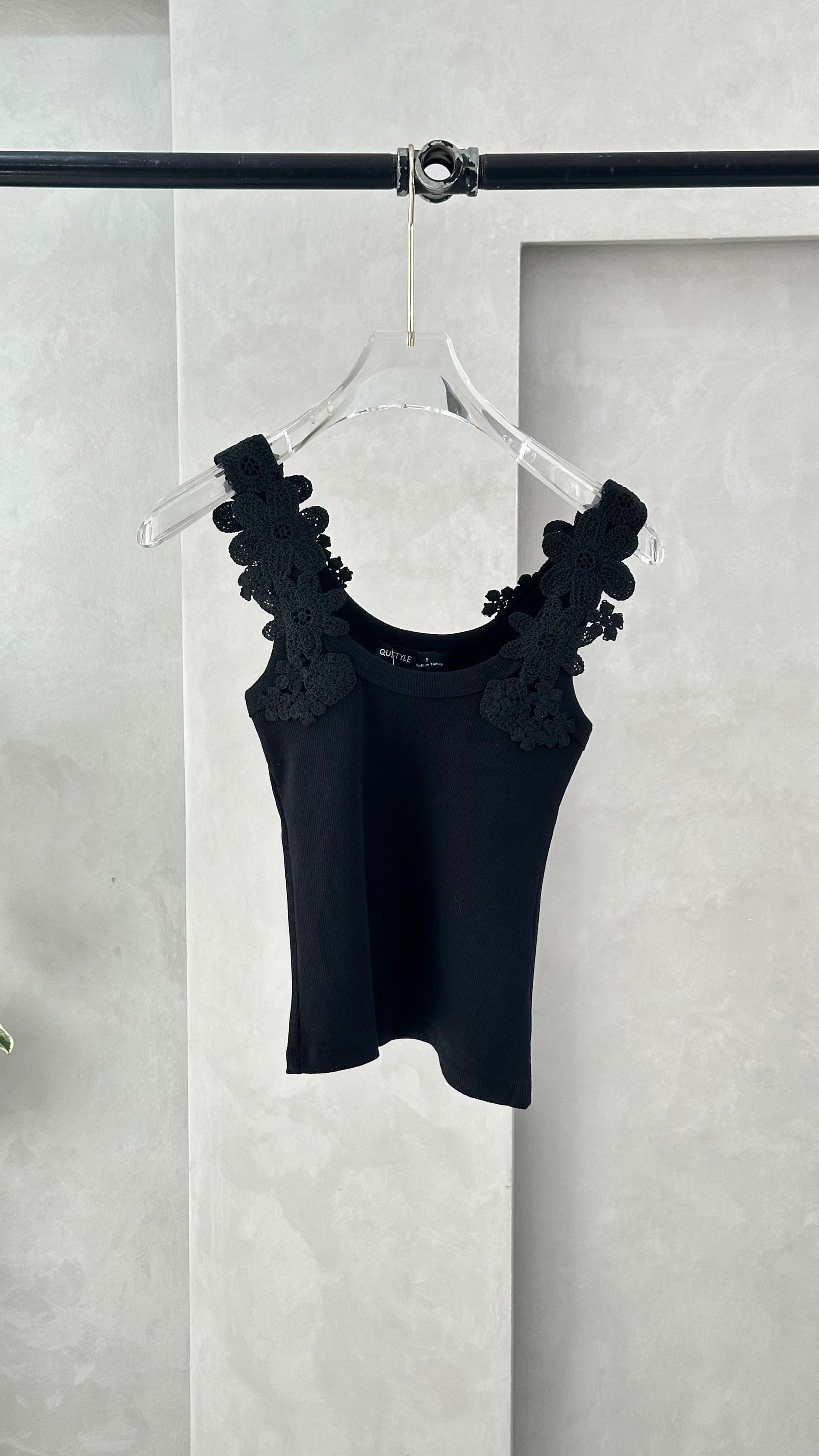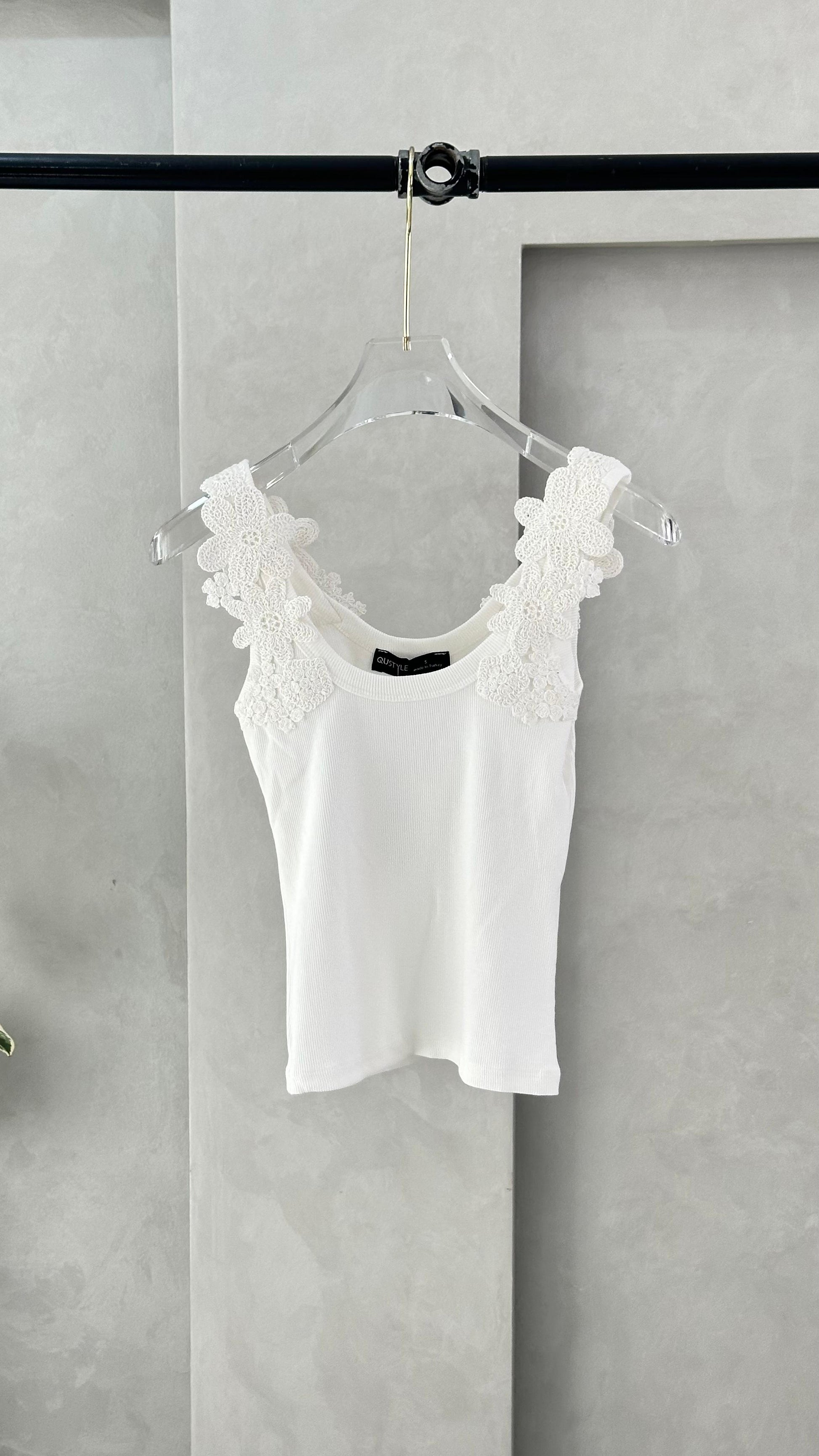 - يتميز بأشرطة كتف مزينة بدانتيل على شكل زهور، تضيف لمسة أنثوية وزخرفية.