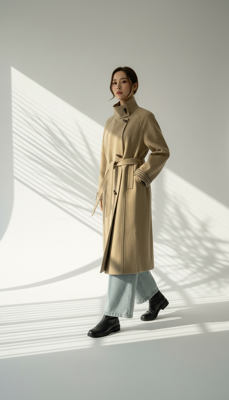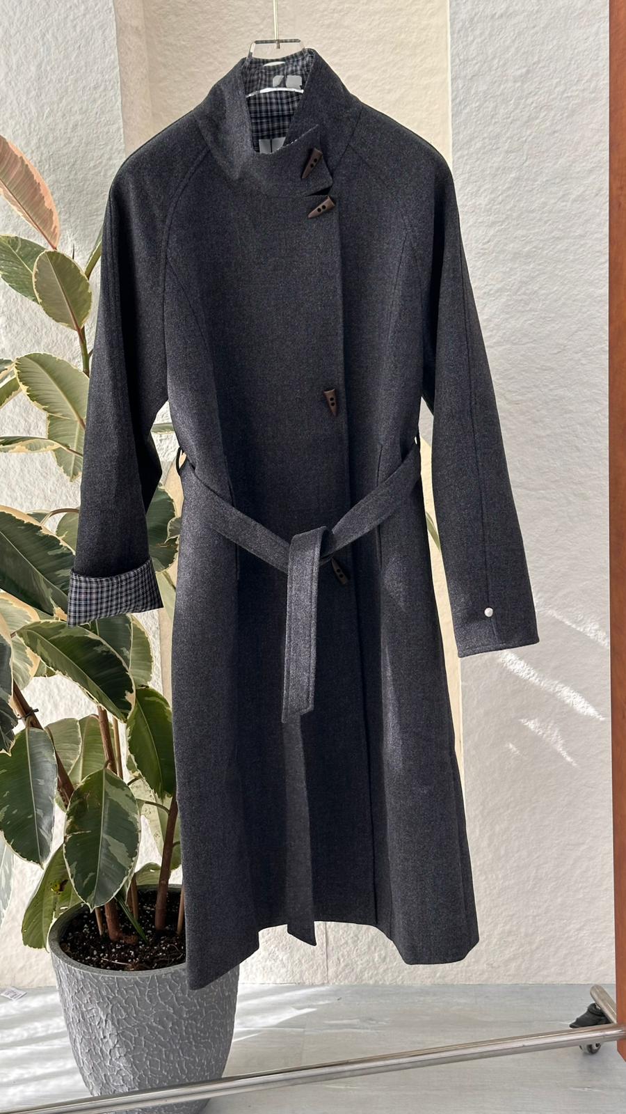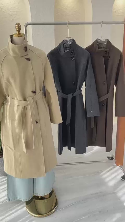 يجمع هذا المعطف غير المتماثل المزود بحزام وأزرار بين الأناقة العصرية والحرفية الخالدة. يتميز بياقة عالية وإغلاق بزر بزاوية فريدة، مما يمنحه مظهرًا أنيقًا وراقيًا. يوفر حزام الخصر القابل للتعديل ملاءمة مثالية، بينما تضفي لمسات المربعات الرقيقة على الياقة والأكمام لمسة راقية. مثالي للأجواء الانتقالية، ويرتقي هذا المعطف بإطلالاتك الرسمية وغير الرسمية بسلاسة.