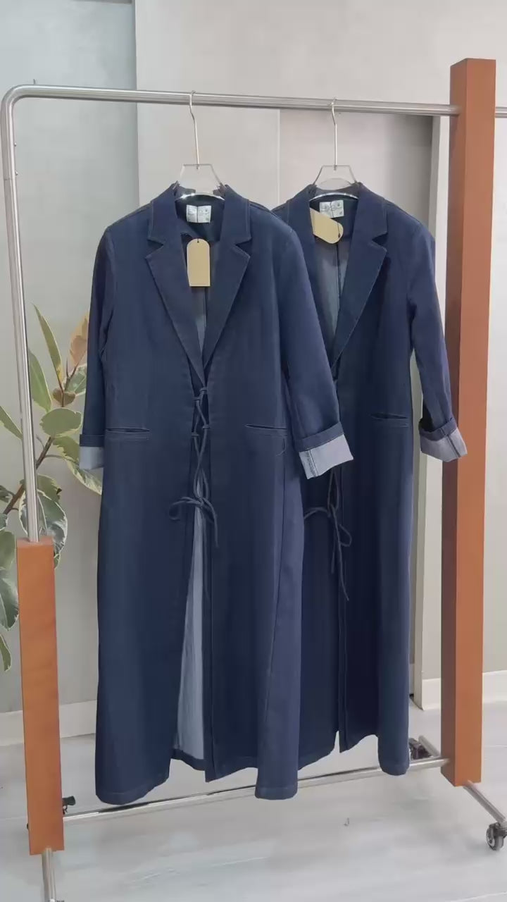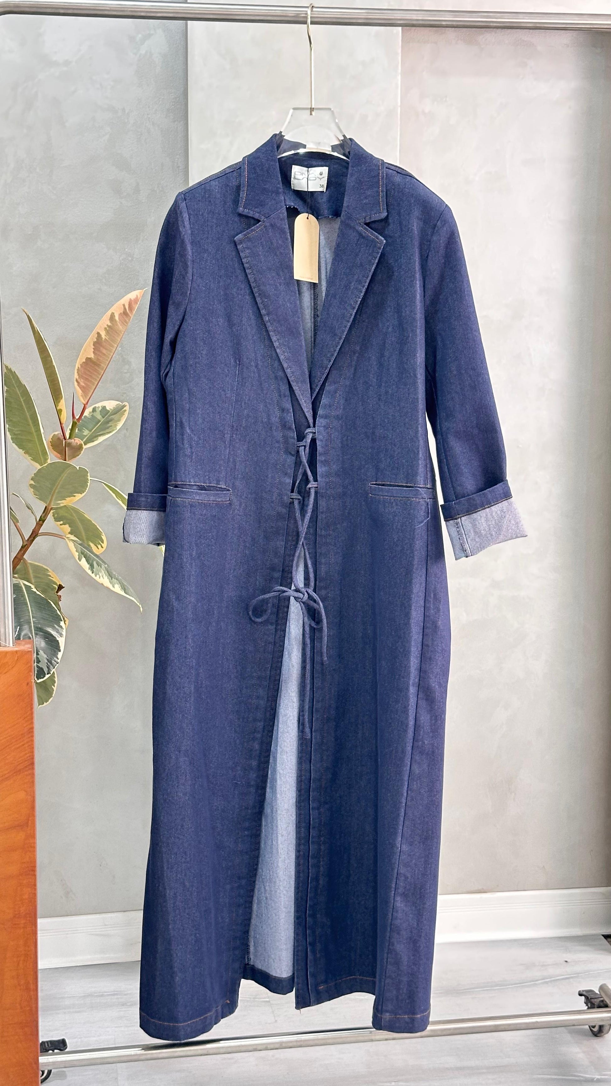 جاكيت جينز طويل بقصة مُحكمة
