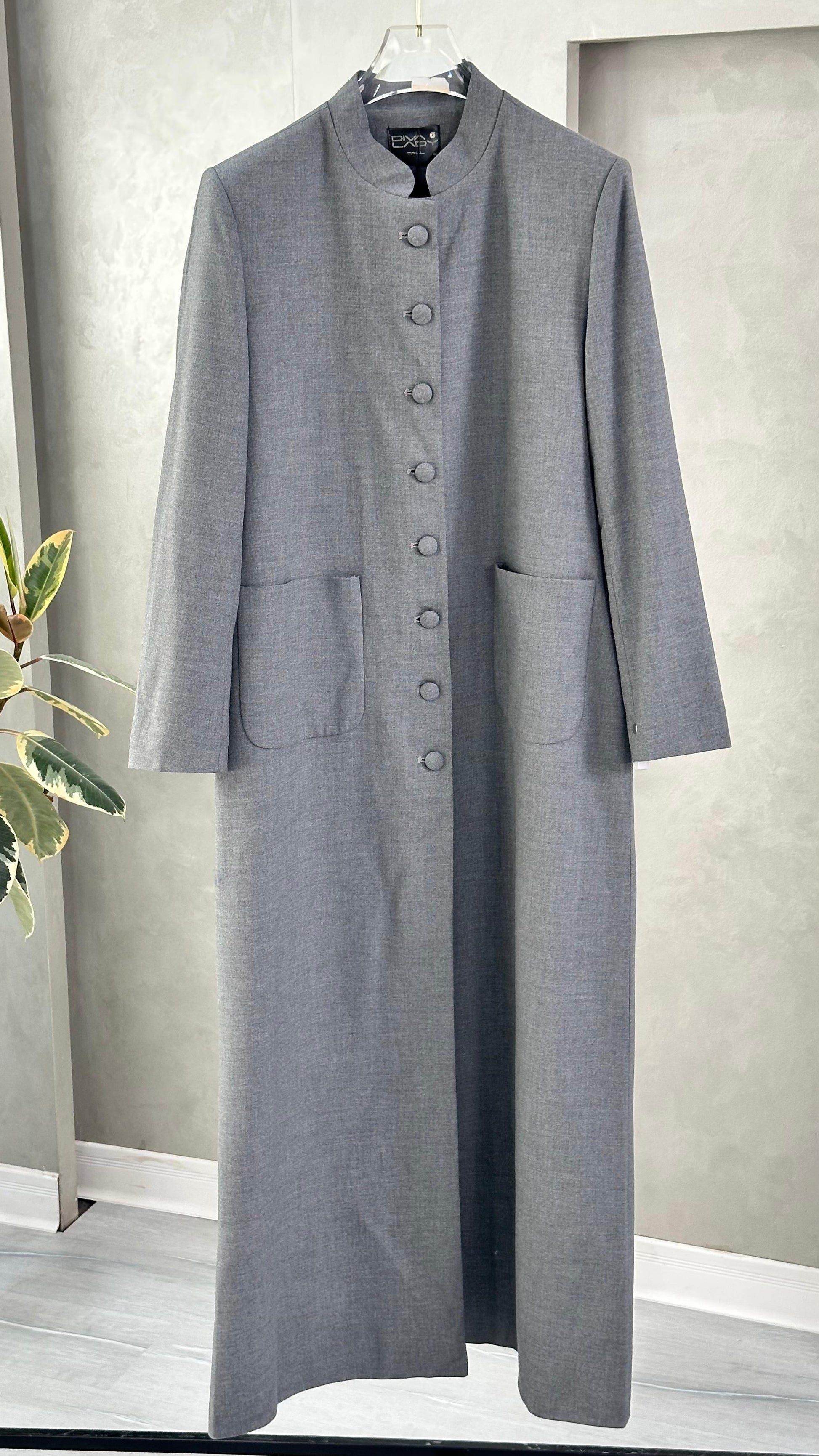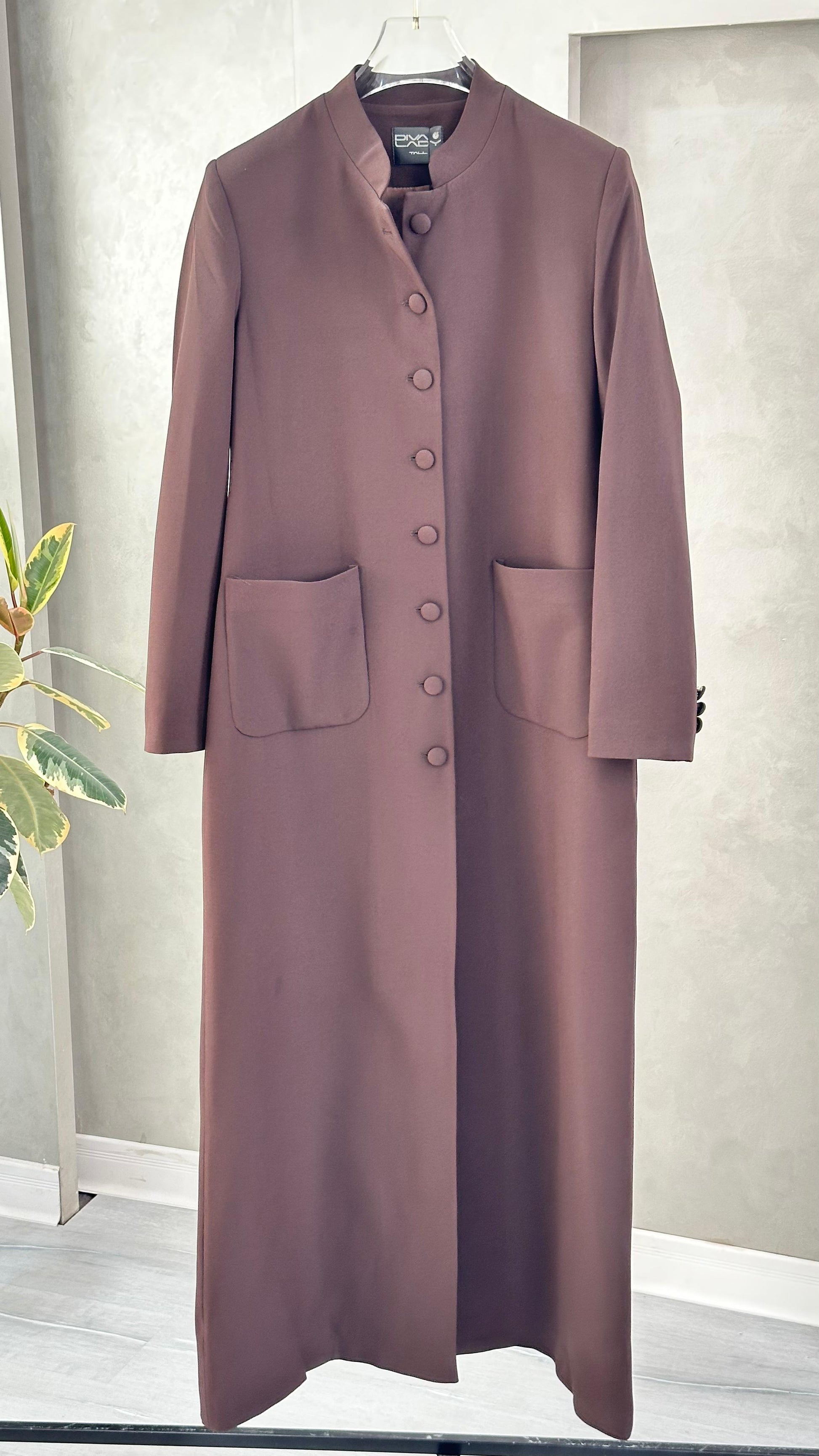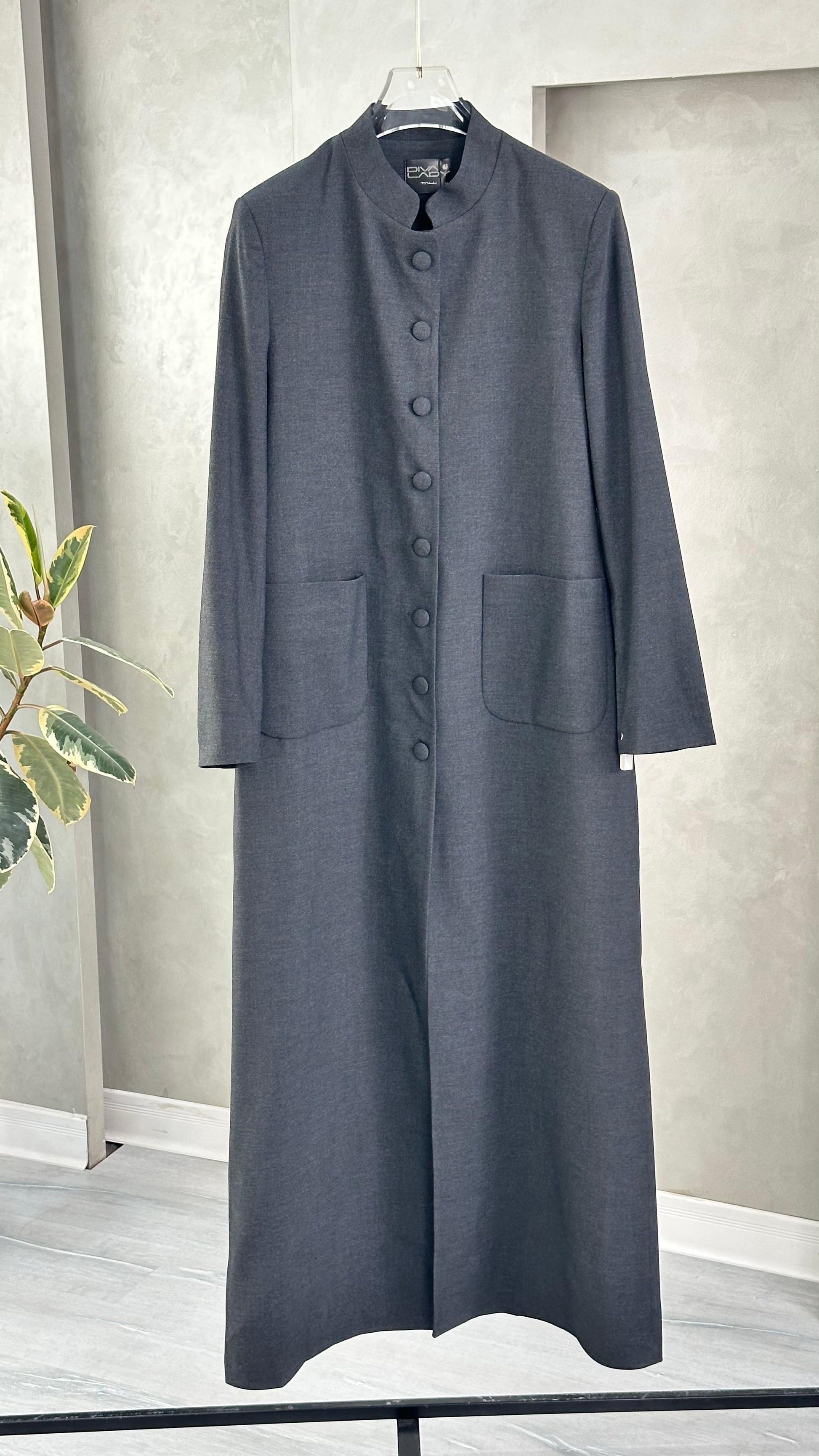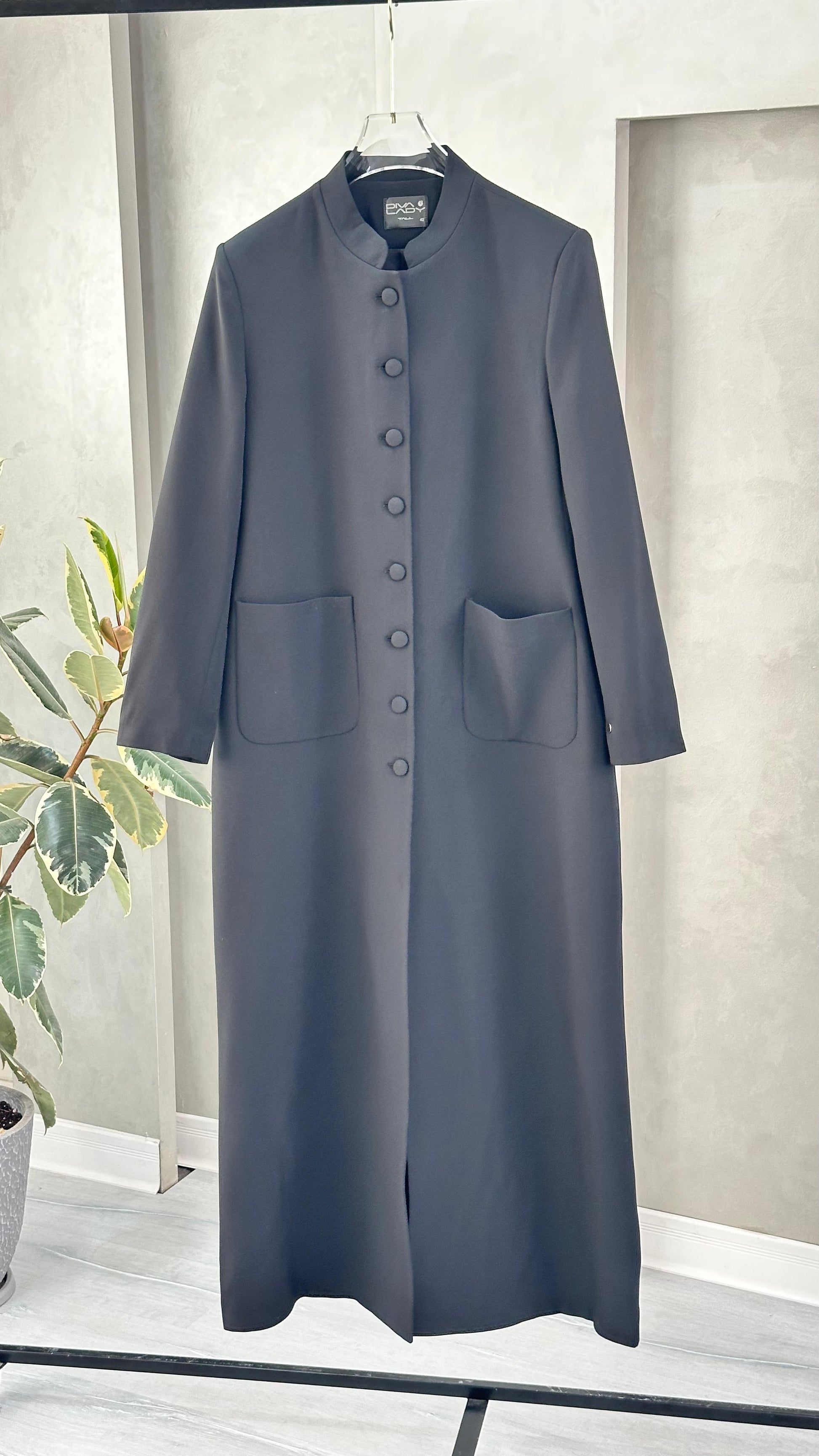القطعة عبارة عن عباية أو معطف طويل بتصميم أنيق وناعم يمتد حتى الأرض تقريبًا.