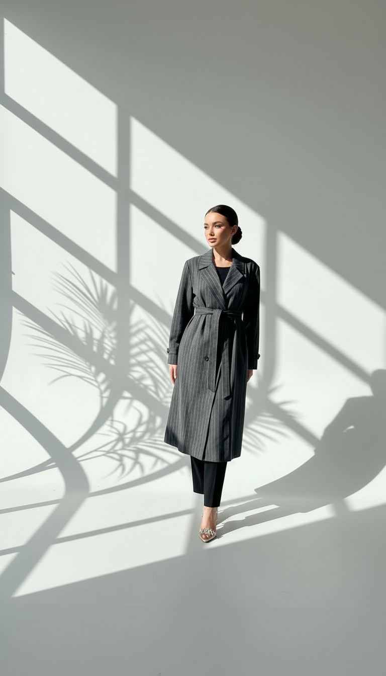 - **القصّة**: مفصّل وطويل، يمتد إلى ما بعد الركبة، يمنح مظهرًا رسميًا وأنيقًا.