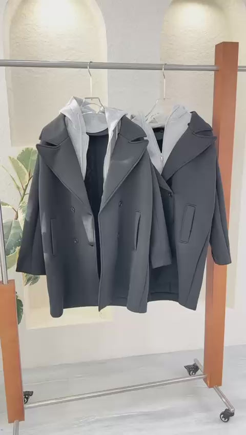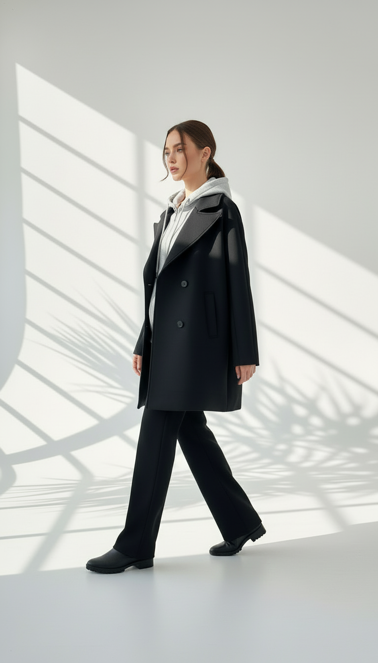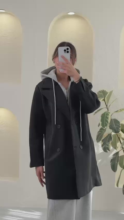 قطعة خارجية عصرية ومتعددة الاستخدامات، تجمع بين الخياطة الكلاسيكية واللمسة الرياضية المريحة. يتميز هذا المعطف بصفّين من الأزرار الأمامية، وياقة واسعة، وغطاء رأس داخلي قابل للفصل لإطلالة متعددة الطبقات، تتحول بسلاسة من الكاجوال إلى الرقي. صُمم لتوفير الراحة والعملية، ويوفر تصميمًا أنيقًا ومريحًا، مثاليًا للارتداء اليومي.