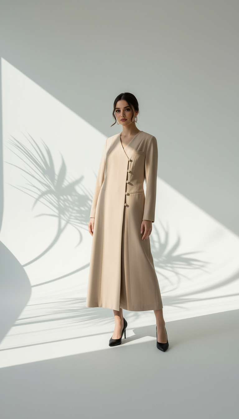 ارتقي بإطلالتك الخارجية إلى مستوى جديد من الرقي والأناقة مع هذه القطعة الأساسية. تصميمها المدروس يمنحك حضوراً واثقاً ومظهراً متكاملاً، بينما يضمن لكِ أعلى مستويات الجودة التي تدوم طويلاً. هذه القطعة هي الاستثمار الأمثل لمظهركِ العصري والواثق في جميع المناسبات.