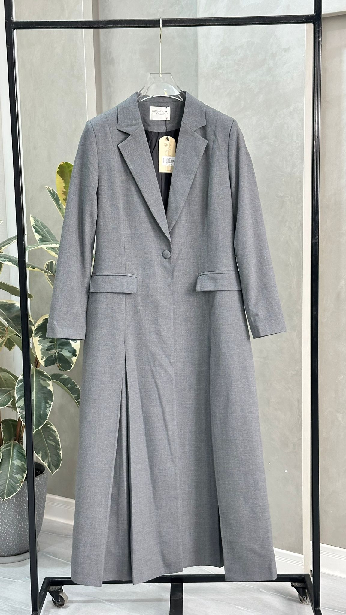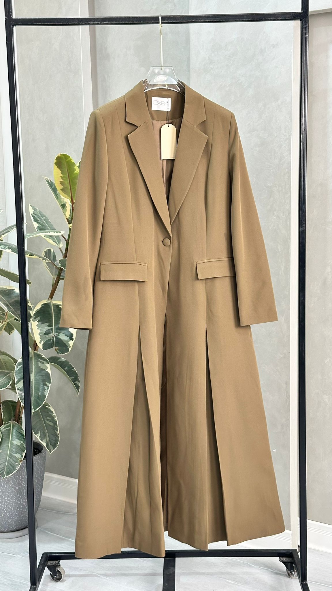 • جاكيت طويل نسبيًا بتصميم شبيه بالبلايزر، يحتوي على: