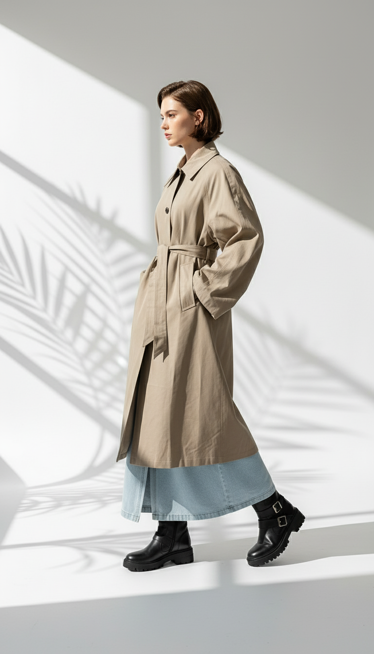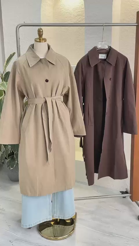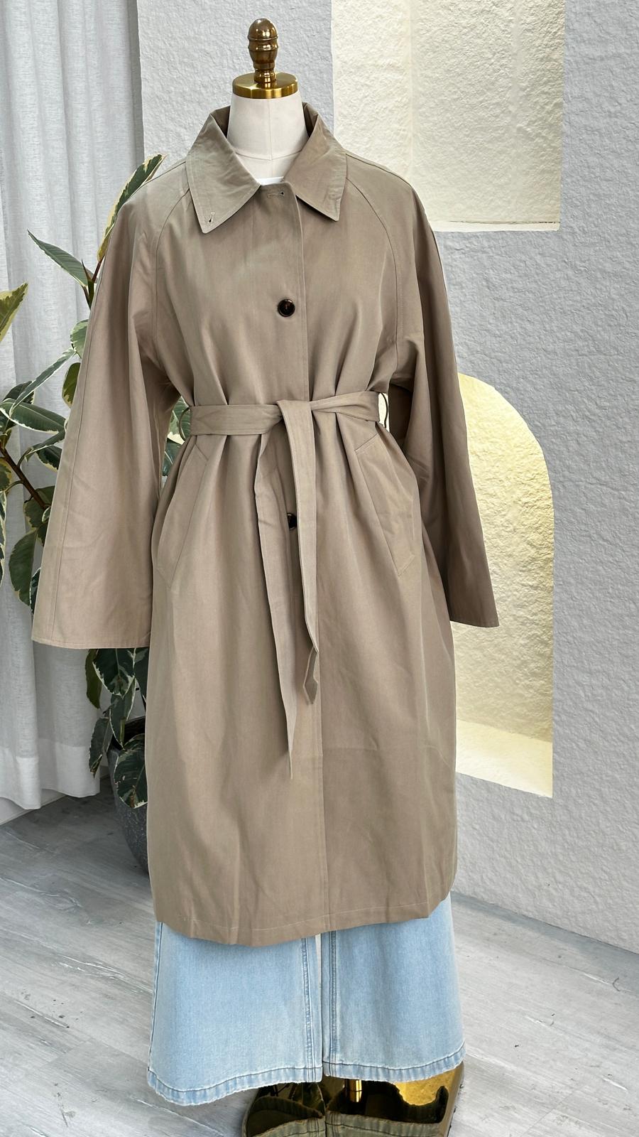 1. معطف ترنش طويل بلون بيج فاتح
