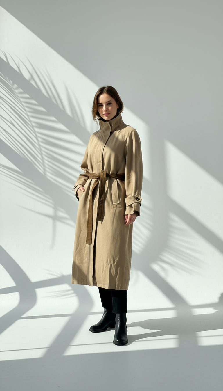 جاكيت نسائي طويل مع حزام، ذو طالع تركي