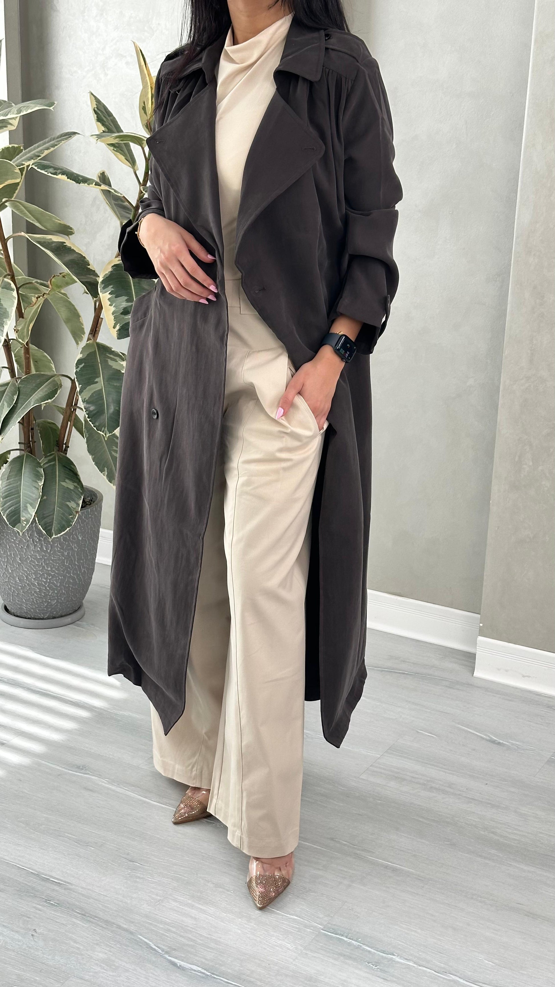 الأناقة في بساطتها! معطف بتصميم عصري وكلاسيكي في آن واحد، يمنحك إطلالة محددة ومريحة في ذات الوقت. قطعة أساسية مثالية لإضافة الرقي لمظهرك اليومي."