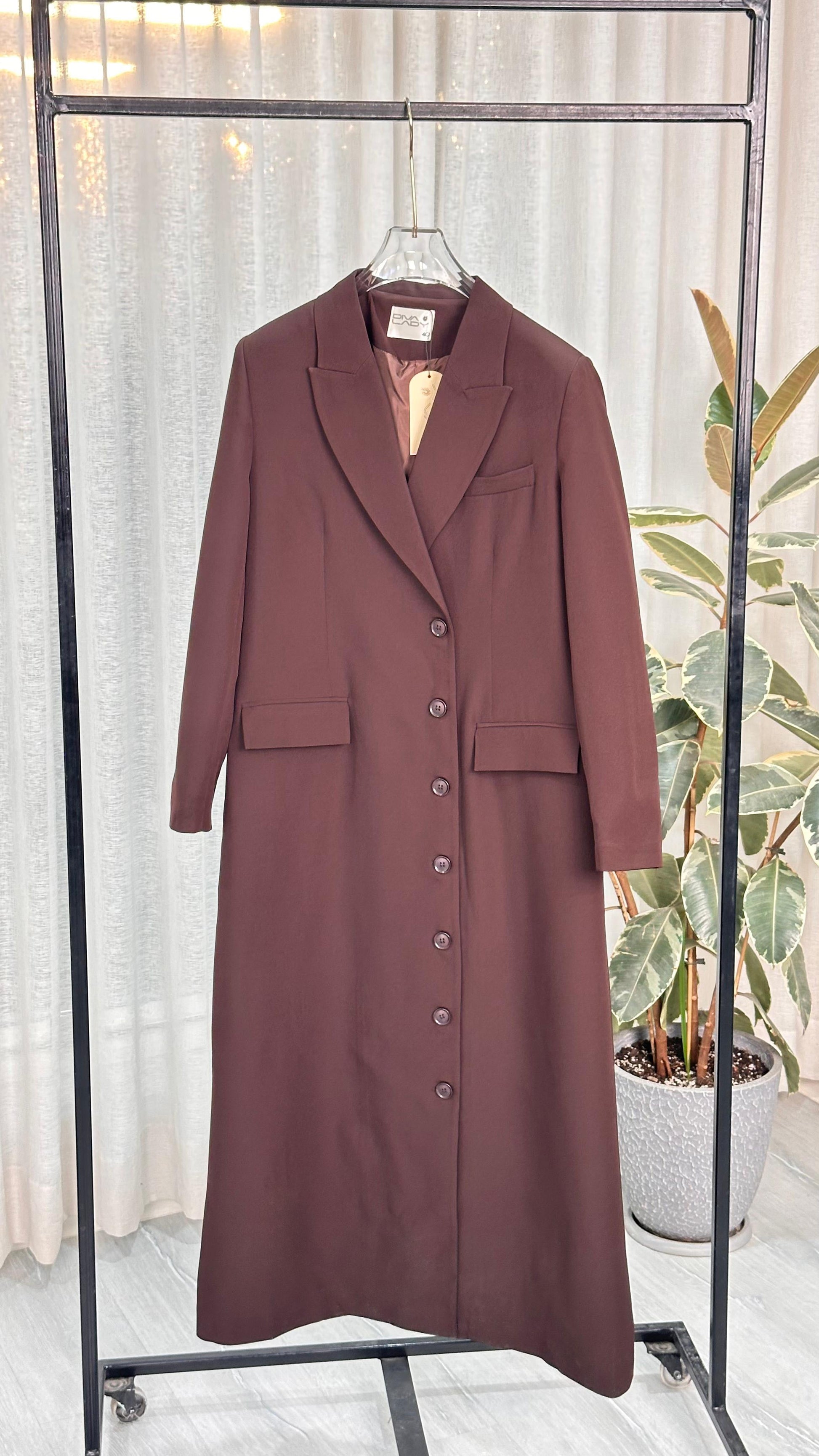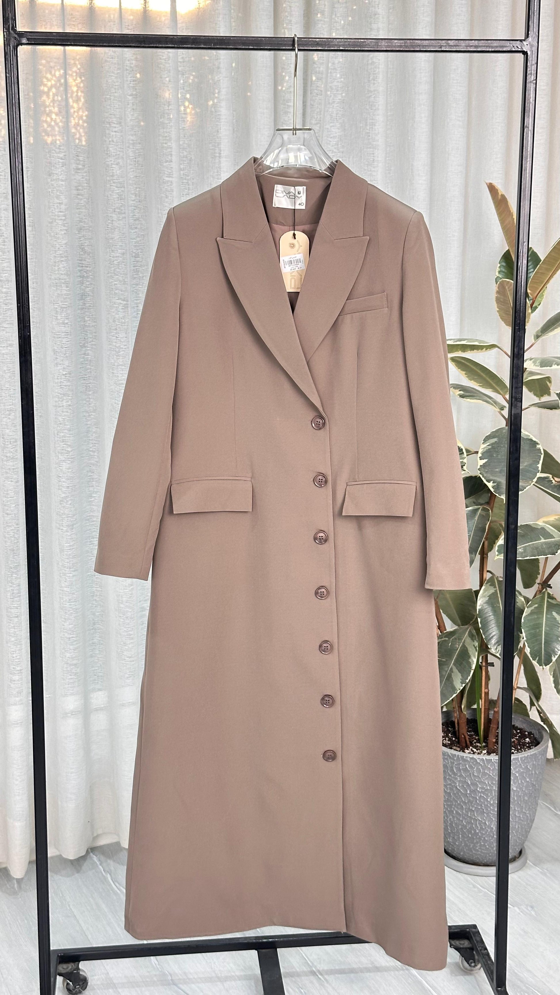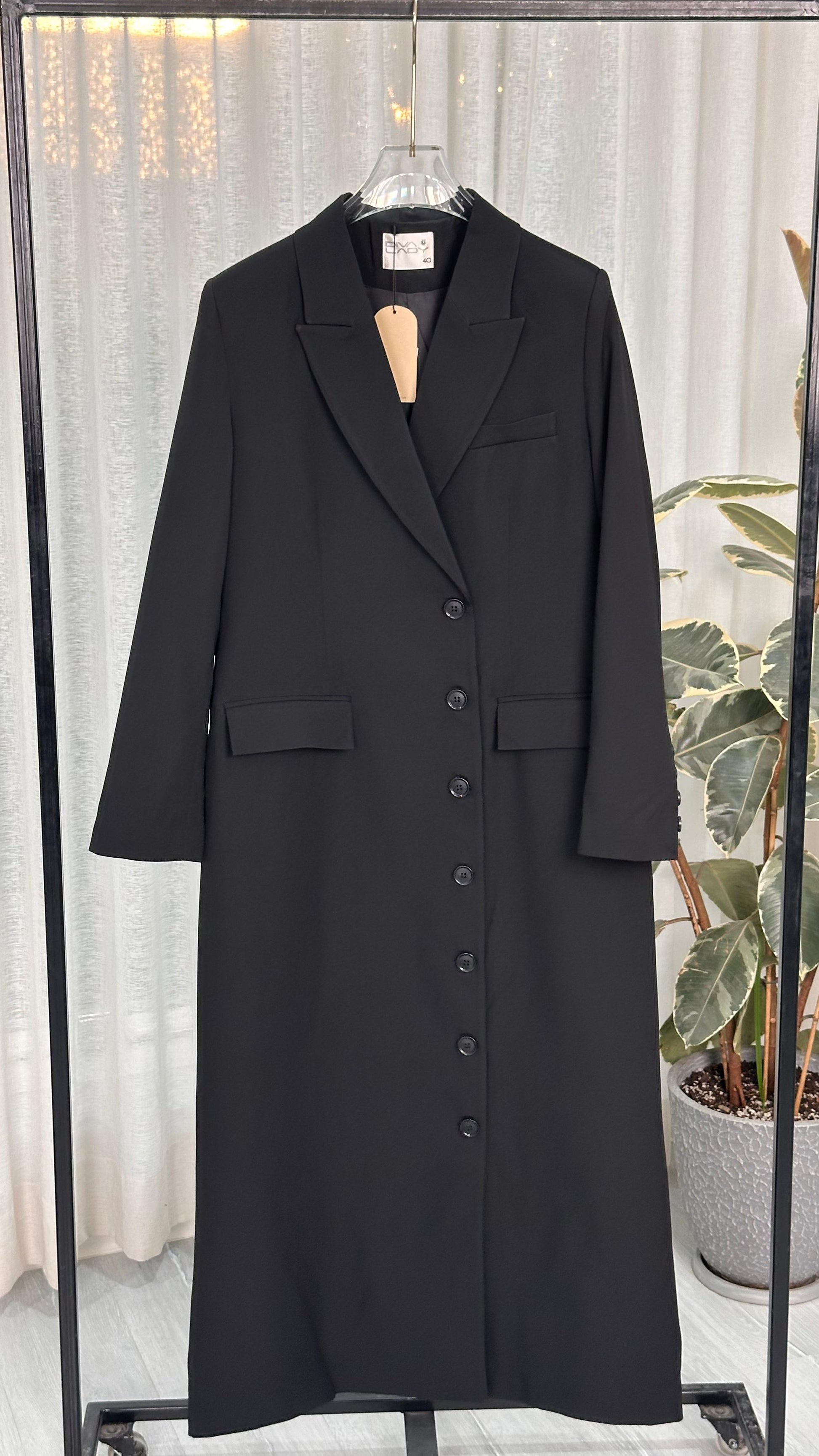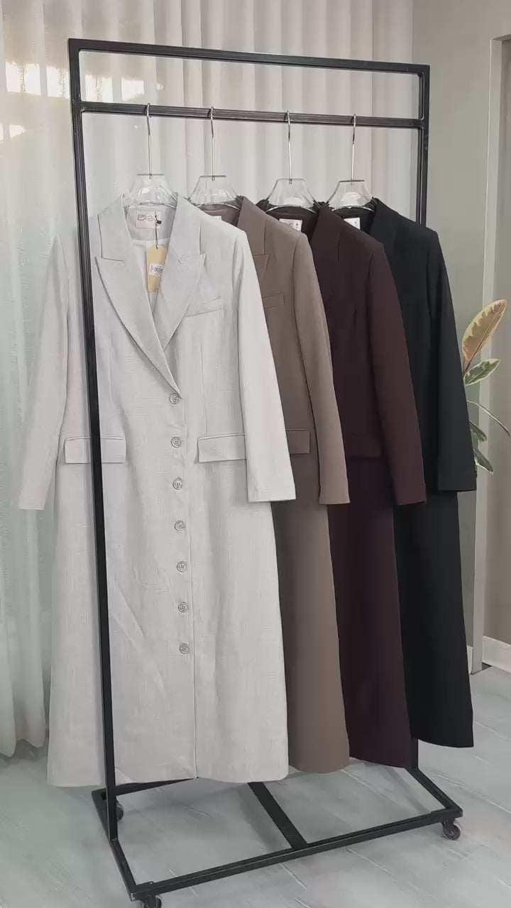 القطعة ككل تجمع بين كلاسيكية المعطف ورقيّ الفستان، مناسبة للمناسبات الراقية أو الإطلالات العملية المتألّقة.