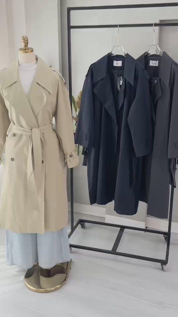 يُضفي هذا المعطف الأنيق والعصري لمسةً راقيةً على تصميمه الخالد. يتميز بصفّين من الأزرار الأمامية، وياقة واسعة، وحزام خصر، ليمنحكِ إطلالةً أنيقةً تُناسب جميع المناسبات. تُضفي الكتافات العملية على الكتفين وأزرار الأكمام لمسةً من الأناقة والطابع العسكري. مصنوع من قماش متين، ويتوفر هذا المعطف بألوان أنيقة متنوعة، ليضمن لكِ إطلالةً أنيقةً ومريحةً طوال المواسم.
