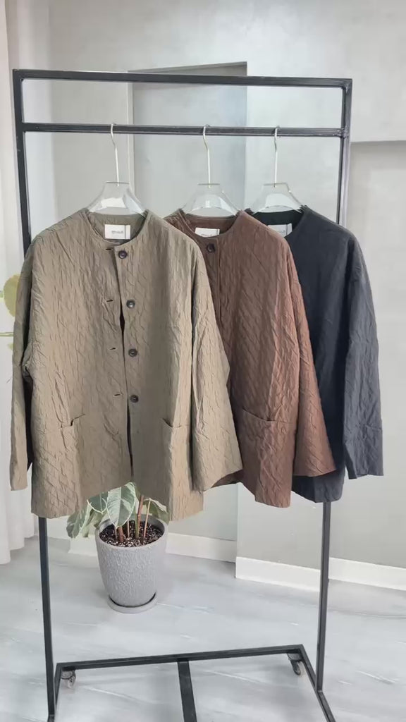حسّني خزانة ملابسك مع هذه السترة الأنيقة والمريحة والمُزينة بأزرار، والمتوفرة بثلاثة ألوان غنية: البني، والأسود، والزيتوني. مصنوعة من قماش ناعم ومُبطن، توفر هذه السترة خفيفة الوزن الراحة والأناقة للارتداء اليومي. تصميمها البسيط والأنيق يتميز بياقة دائرية وأزرار أمامية، مما يجعلها مثالية للارتداء فوق ملابسك الكاجوال. بفضل قصتها المريحة وجيوبها الجانبية العملية، تُعد هذه السترة إضافة أساسية لمجموعة ملابسك الموسمية.
