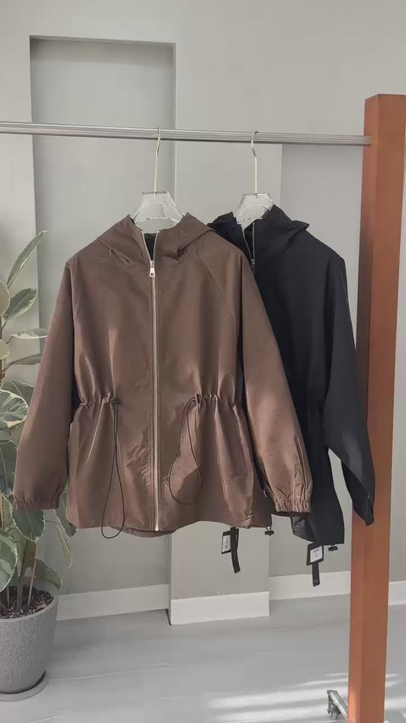 جاكيت أنيق ومتعدد الاستخدامات بغطاء رأس، مصمم لراحة وأناقة يومية. يتميز بسحاب أمامي كامل وأربطة قابلة للتعديل عند الخصر، مما يتيح لك الحصول على مقاس مخصص يناسب شكل جسمك. يضمن القماش خفيف الوزن والأكمام المرنة سهولة الحركة، بينما يضفي النسيج المنقط الرقيق لمسة من الأناقة.