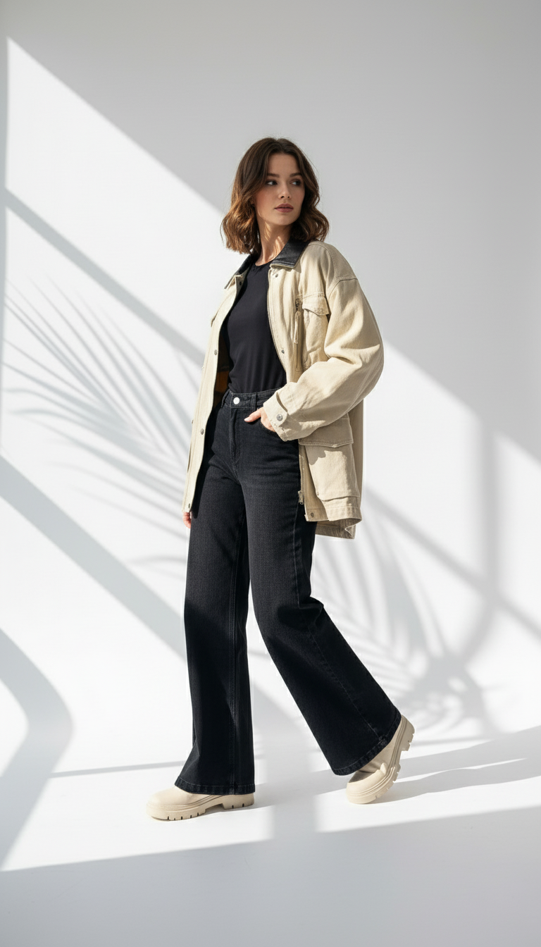 الستايل: جاكيت "بومبر" (Bomber Jacket) أو سترة قصيرة، مثالي لطلة عصرية.