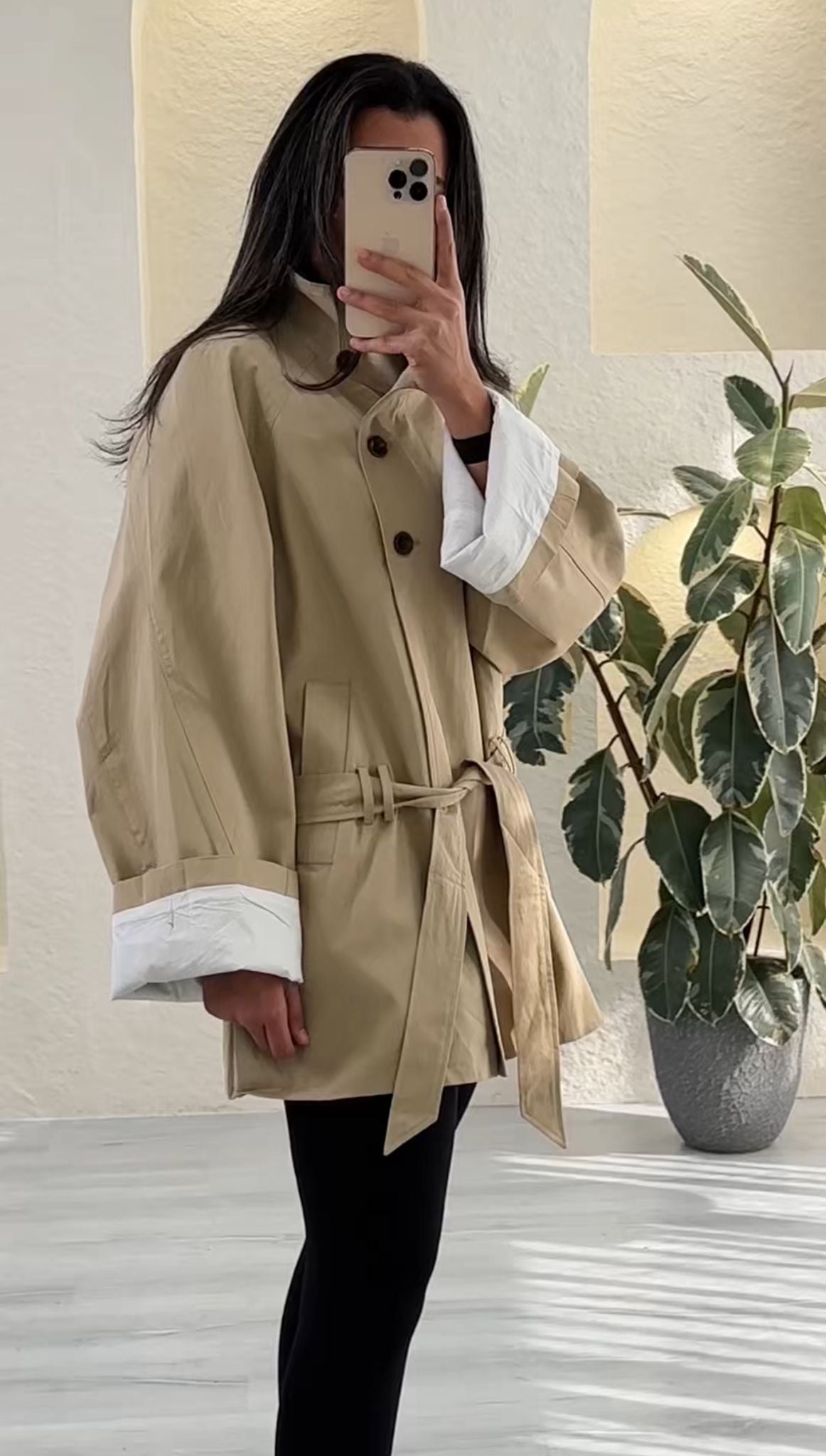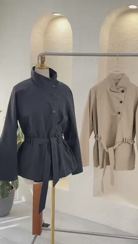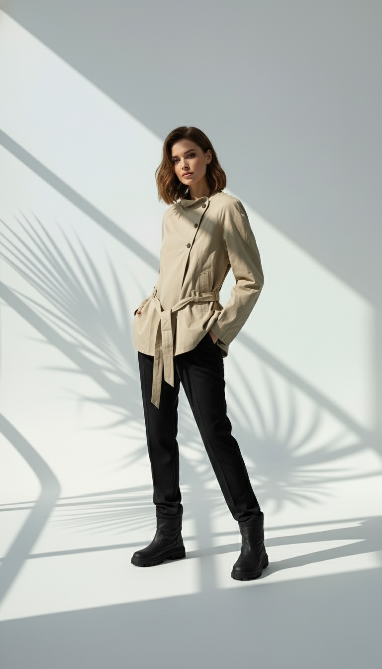 • جاكيت خفيف بقماش ناعم باللون البيج.