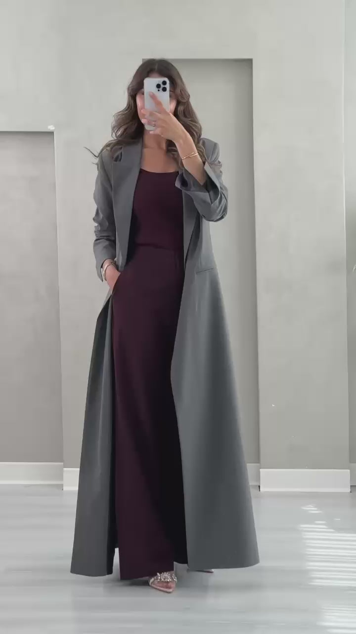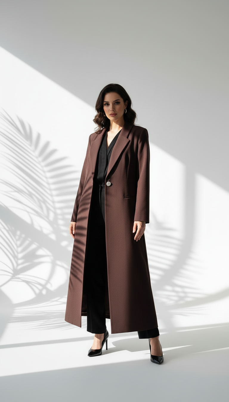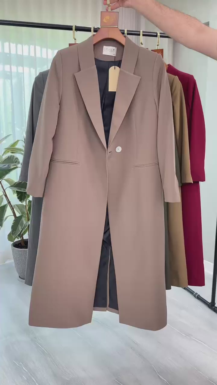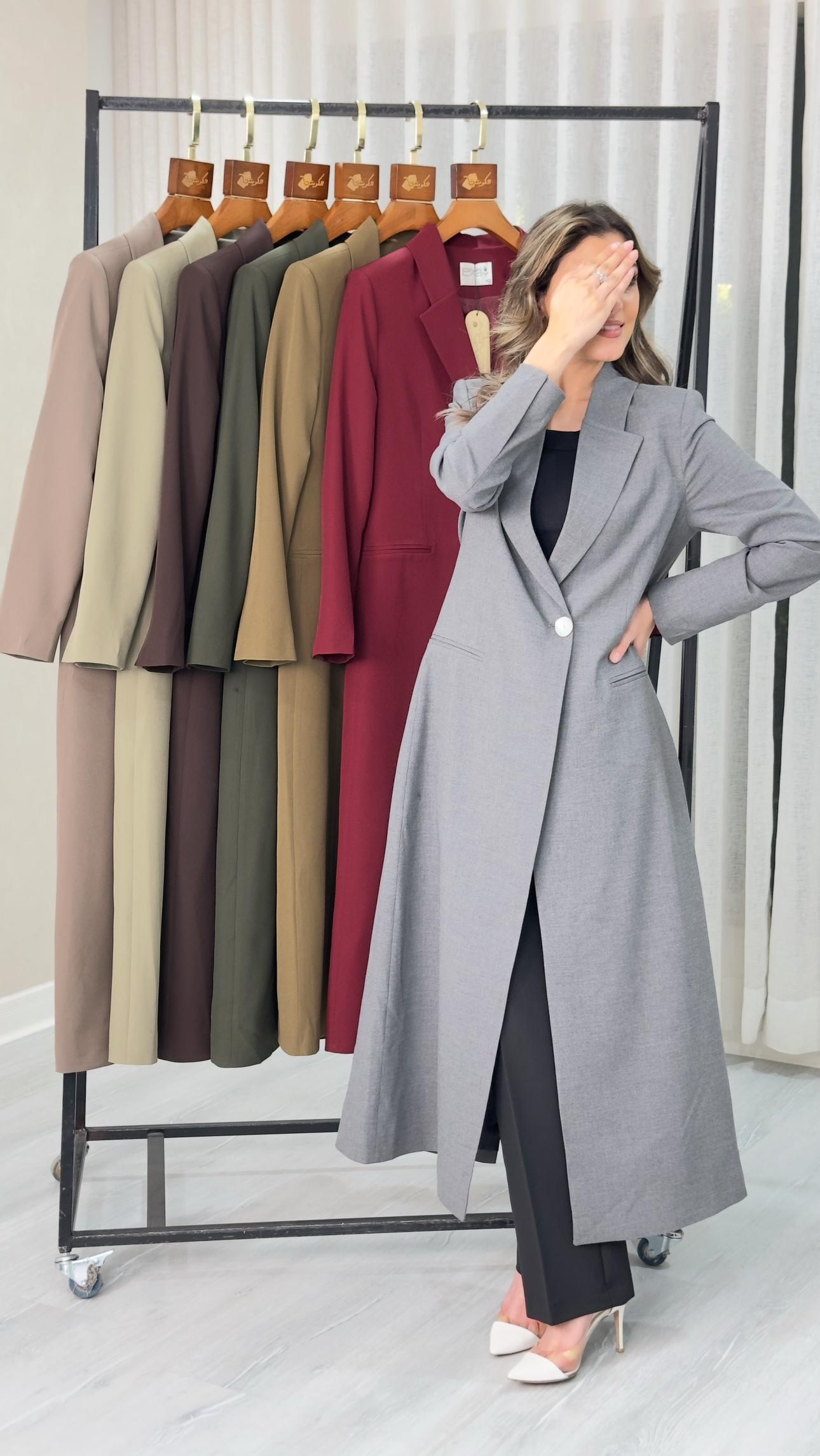 جاكيت نسائى طويل فخم وانيق يناسب جميع الاذواق والمناسبات وتتميز بتصميم فضفاض قليلاً، مما يمنحها مظهرًا رسميًا ولكن أنيقًا ومريحًا