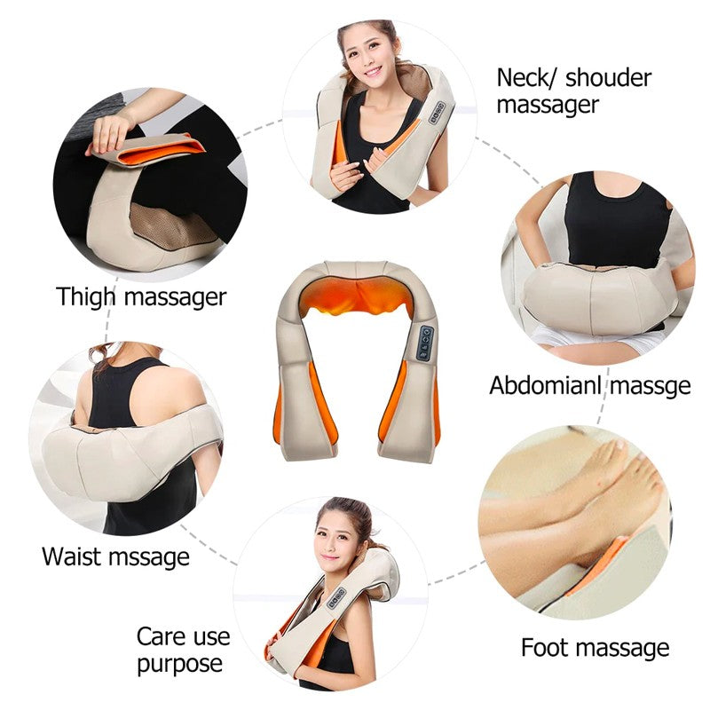 يتميز بتقنية العجن العميق التي تحاكي يد المعالج المحترف، مما يساعد على تخفيف التوتر وآلام العضلات وتشنجات الرقبة والظهر بعد يوم طويل من العمل أو القيادة.