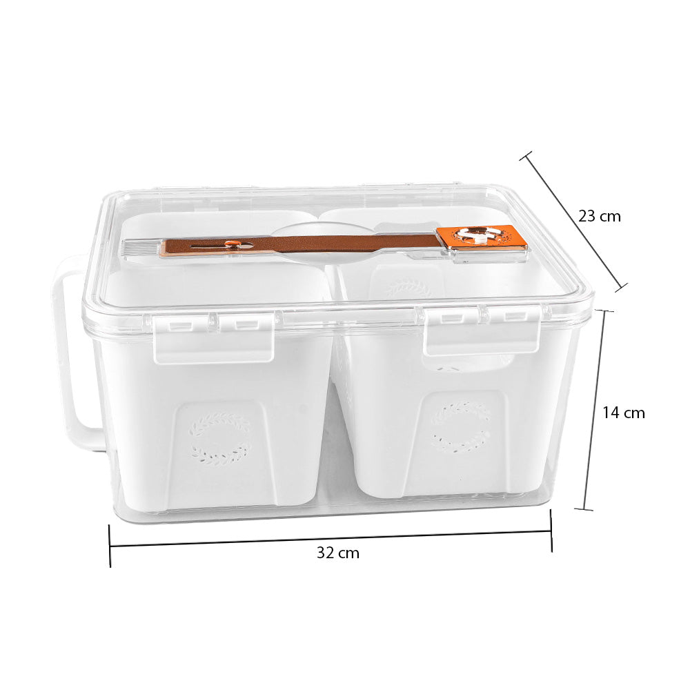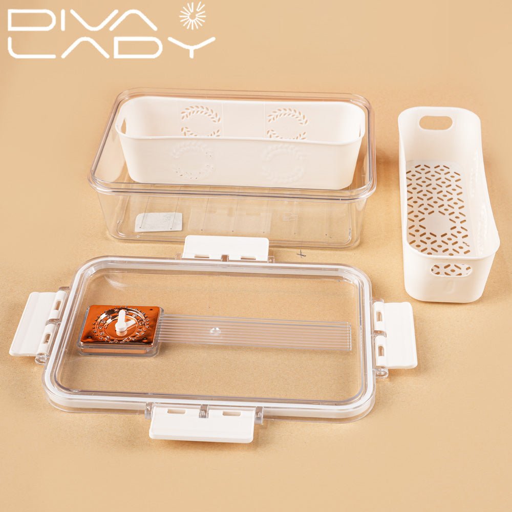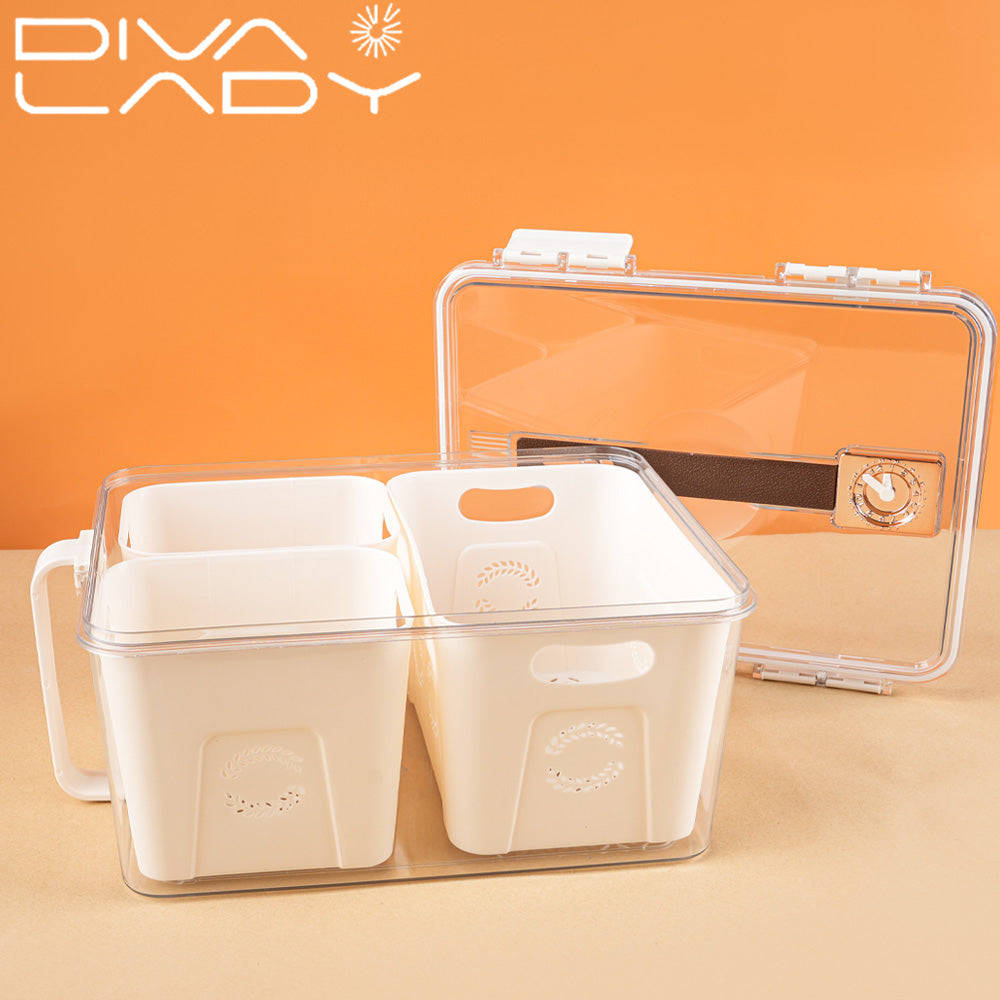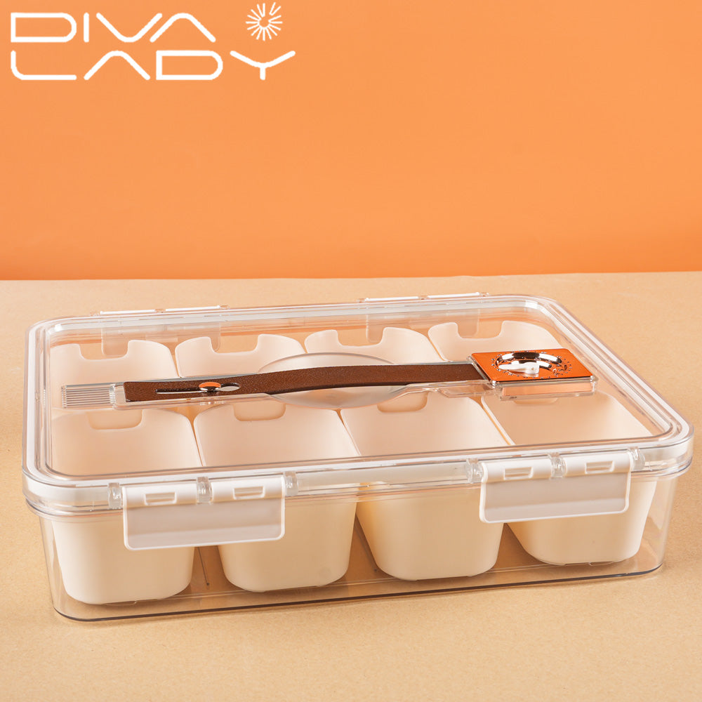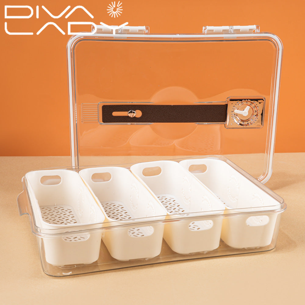 حافظه طعام مع غطاء شفاف ومقسمة إلى عدة أجزاء مما يجعلها مناسبة لتقديم مجموعة متنوعة . من الاطعمة بشكل منظم ومحكمة الغلق