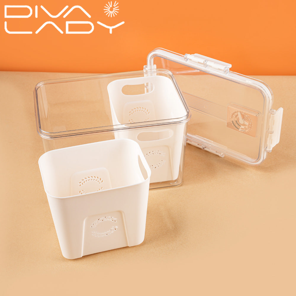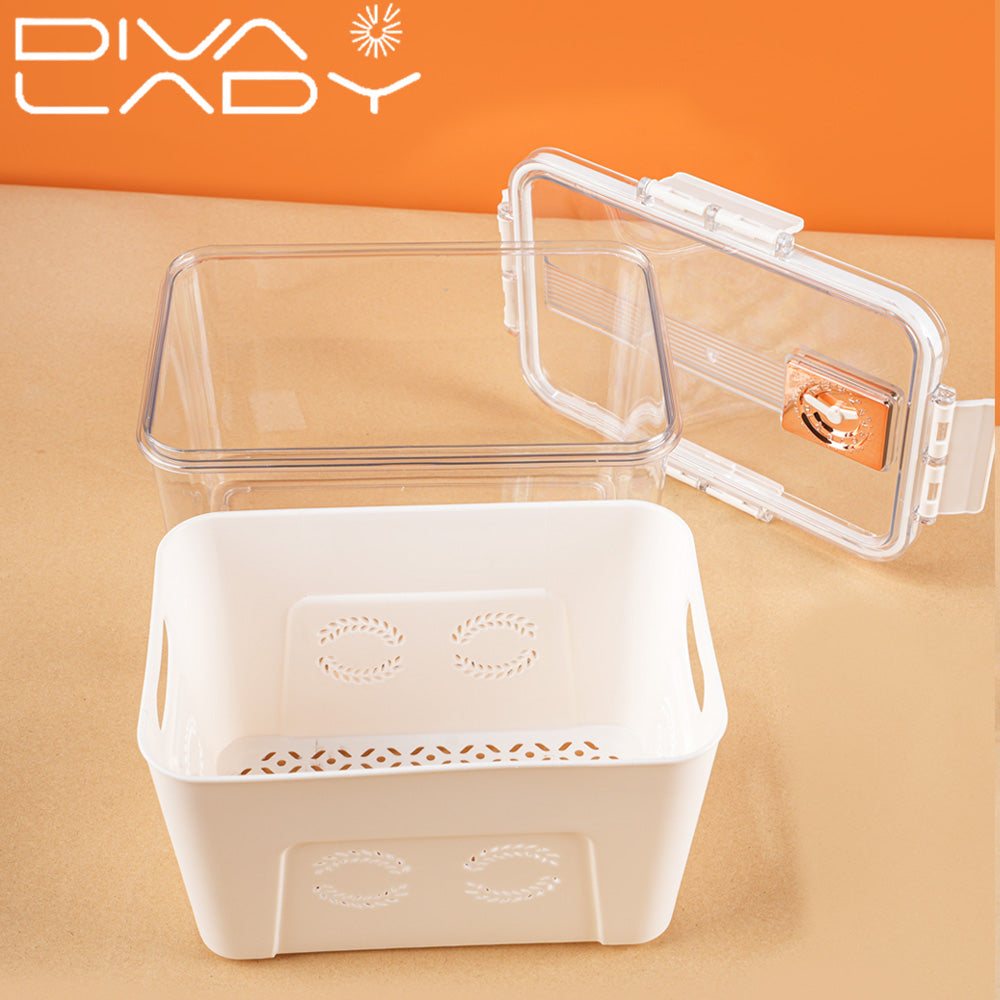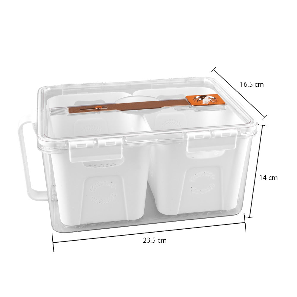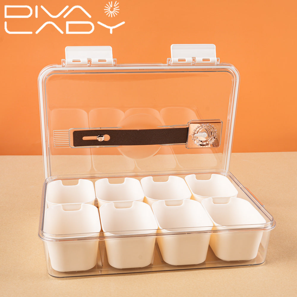 حافظه طعام مع غطاء شفاف ومقسمة إلى عدة أجزاء مما يجعلها مناسبة لتقديم مجموعة متنوعة . من الاطعمة بشكل منظم ومحكمة الغلق