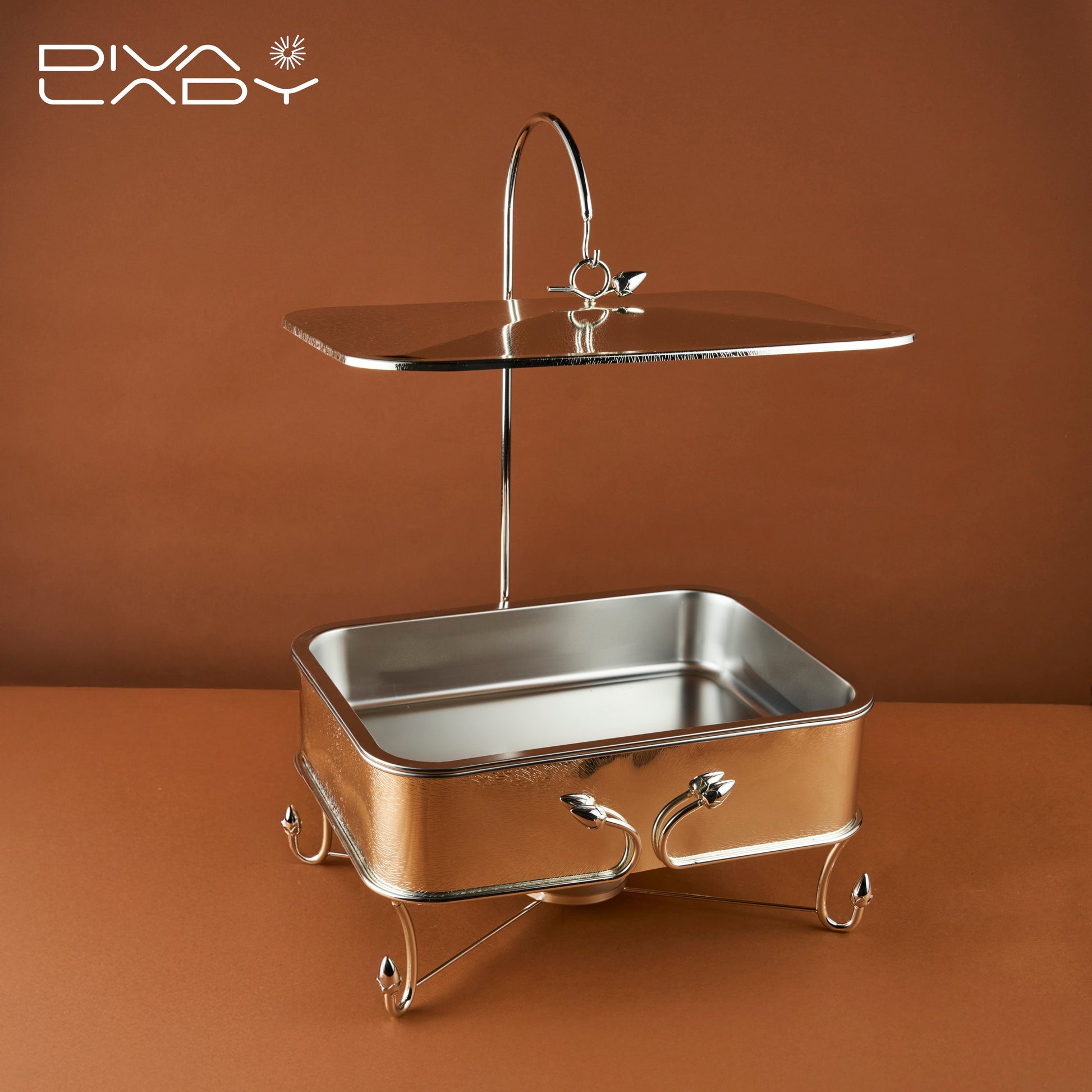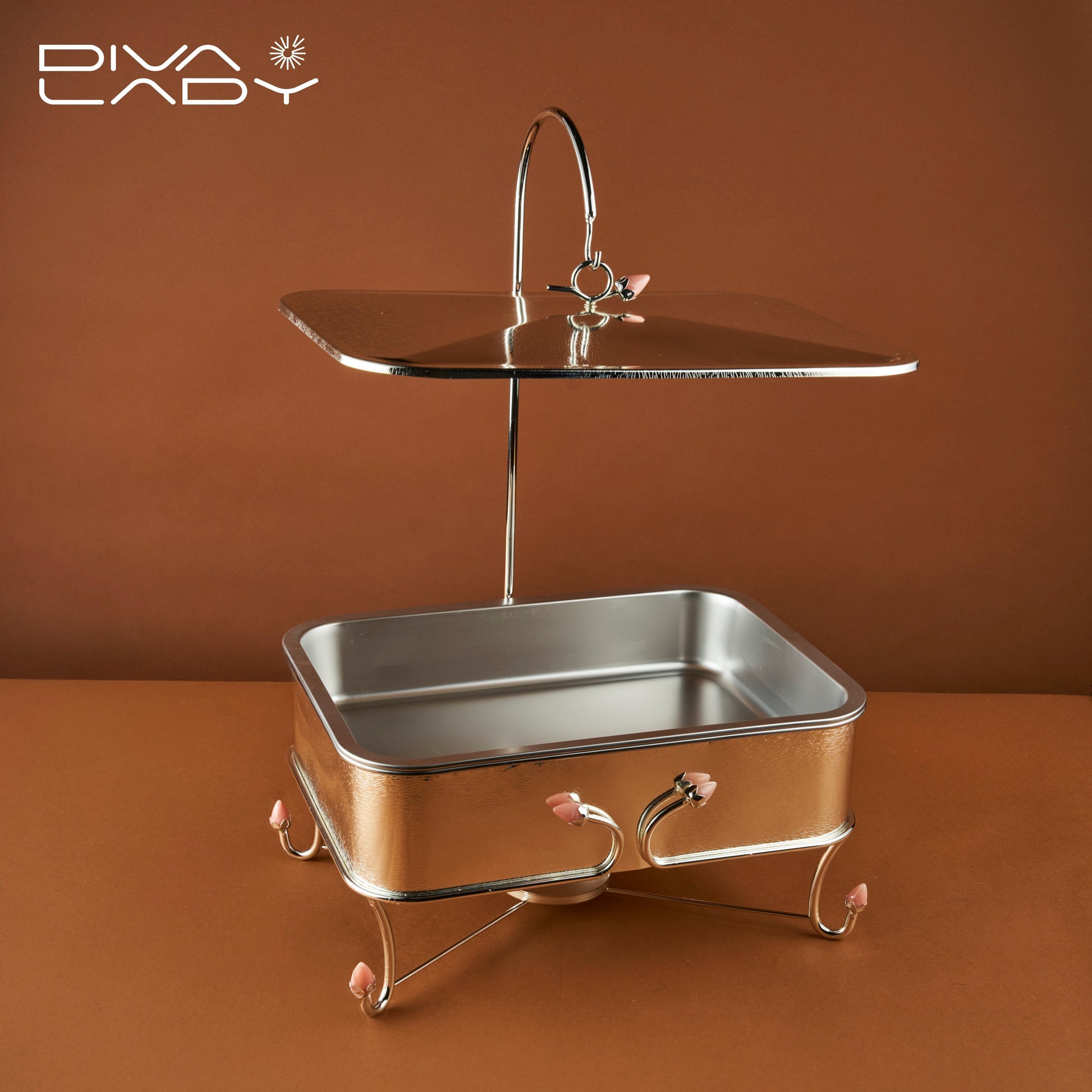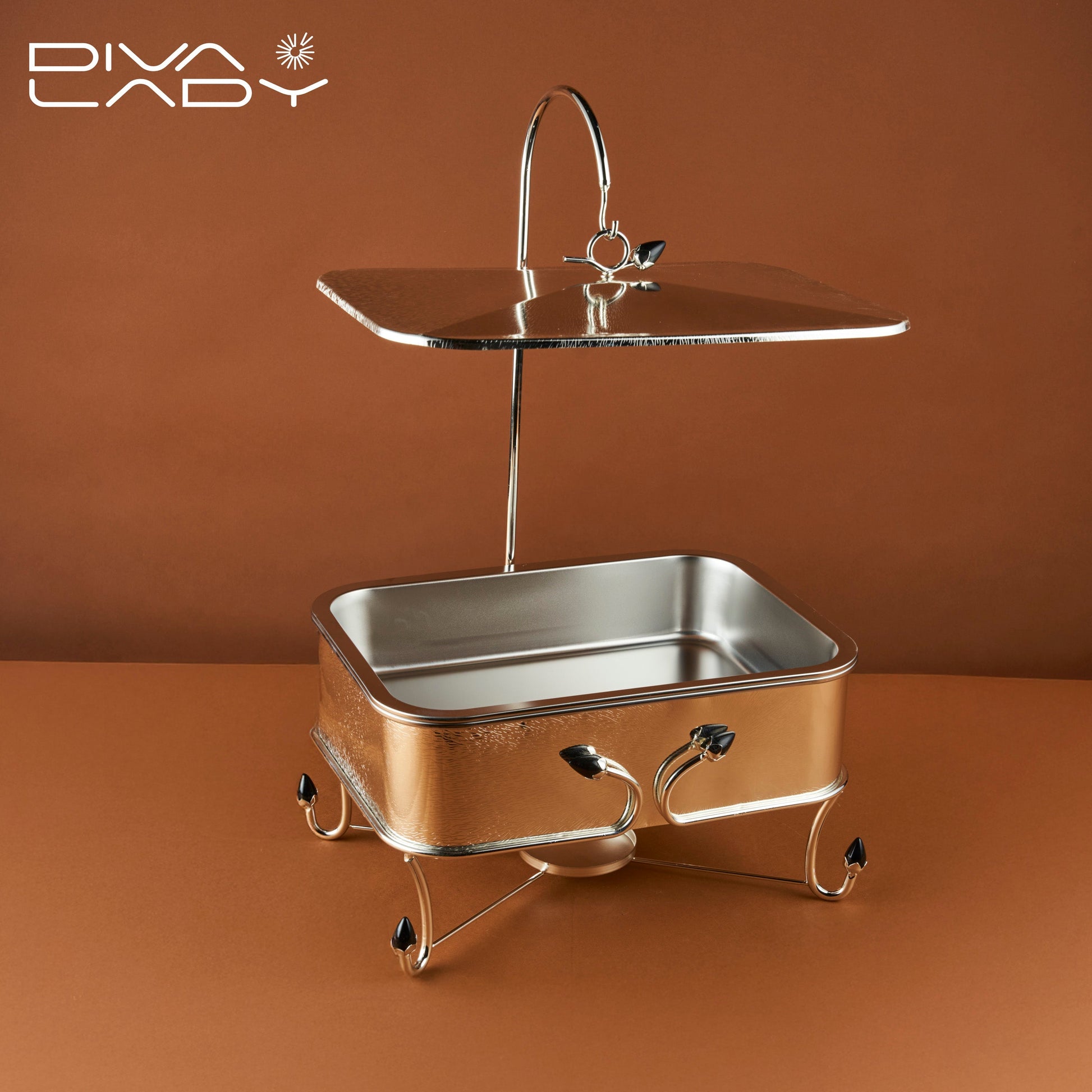 سخان إستيل عالي الجودة مع وعاء داخلي قابل للفك و الإزالة ومقبض بارد الملمس لسهولة حمل السخان و نقله مصنوع من مادة الاستانلس ستيل التي تمنع الصدأ وتتحمل الاستخدام الطويل, مع قاعدة للشمع تسمح بتسخين الطعام بشكل مستمر, يعد خياراً صحياً لتقديم الطعام في المناسبات